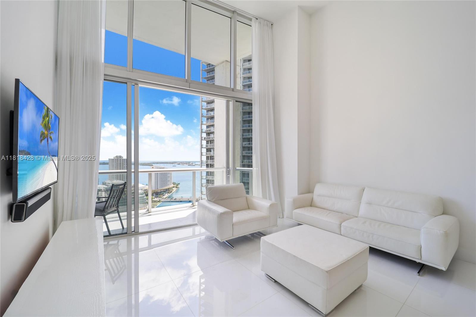 16' Ceilings! 2-Bedroom + DEN, 2-Bathroom unit in Tower 1 at Icon Brickell featuring a spacious balcony with direct-water views of Biscayne Bay and Brickell Key. 1,461 square feet of interior living space offering double-height ceilings, floor-to-ceiling impact-resistant windows, white glass floors and an open-concept kitchen with Italian cabinetry, stone countertops and SubZero/Wolf/Bosch appliances. Resort-style amenities include full-service spa & fitness center, 300-foot-long pool, swimming pool, hot tub, concierge services and 24 hour valet. Situated within easy access of Brickell City Centre and Mary Brickell Village, and just minutes from Wynwood, the Design District, and Miami Beach