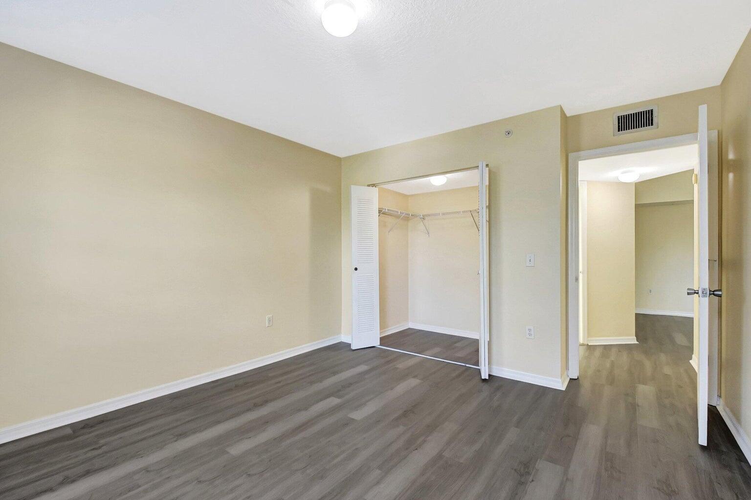 Opportunity knocks with this cozy 2-bedroom, 2-bathroom condo in the highly sought-after Emerald Isles at Laguna Lakes. Perched on the third floor, this home boasts soaring vaulted ceilings and a covered balcony perfect for enjoying Florida's sunshine and providing tons of natural light making this condo bright and airy. Equipped with hurricane storm shutters and brand-new luxury vinyl plank flooring throughout, the unit offers both peace of mind and stylish comfort. The open concept kitchen features ample counter space, seamlessly flowing into a spacious, light-filled living area. The primary suite is generously sized with a walk-in closet and a private en suite bathroom, while the second bedroom also offers plenty of space and a large closet. Additional perks include a full-size