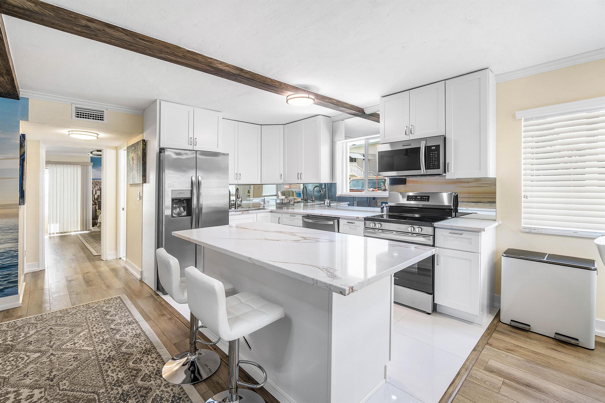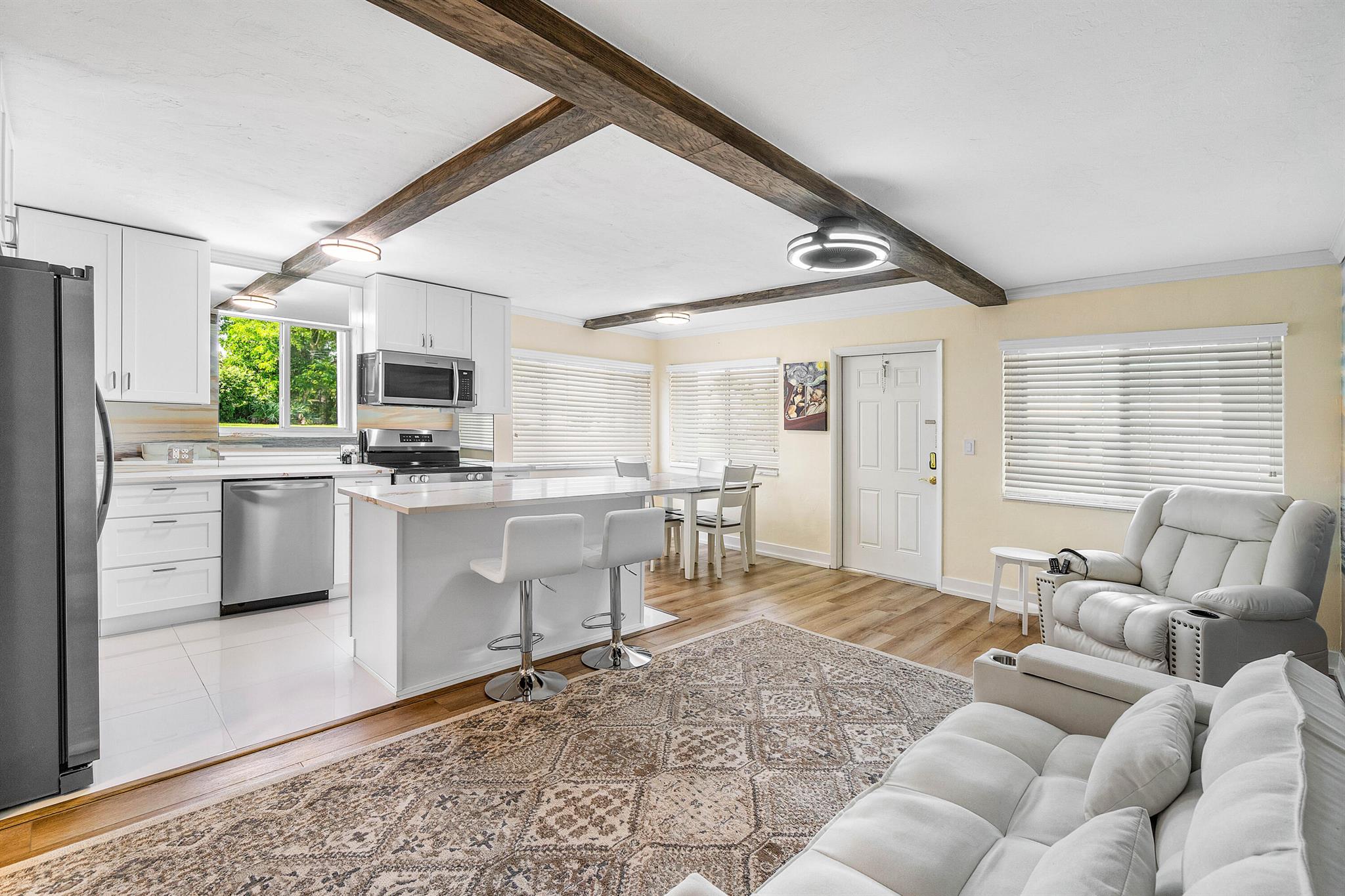 COMPLETELY RENNOVATED! OWNER FINANCING AVAILABLE! Low HOA only $367! 55+ Light and bright 1st floor: NO STAIRS! Park right next to your front door! Open concept Living area, huge bedroom w/spacious closets, crown molding, new kitchen & appliances, quartz counters & table-top, big island-extra storage. Year-round comfy enclosed patio. NEW ROOF-2024. NEW TANKLESS WATER HEATER-2024 NEW-A/C-2020. ACCORDIAN HURRICANE SHUTTERS on all windows. Laundry and mailbox just steps away. WALK across the street to HEATED POOL, John Prince Park & Lake Osborne w/walking-biking trails, boating! CLUBHOUSE with activities to suit your lifestyle. Shuffleboard, Billiards & Social Gatherings. 2.9mi to beach, 8.2mi to PBI Airport, 1.3mi to I-95. Renting after 1 yr ok Association requires 650+ credit score