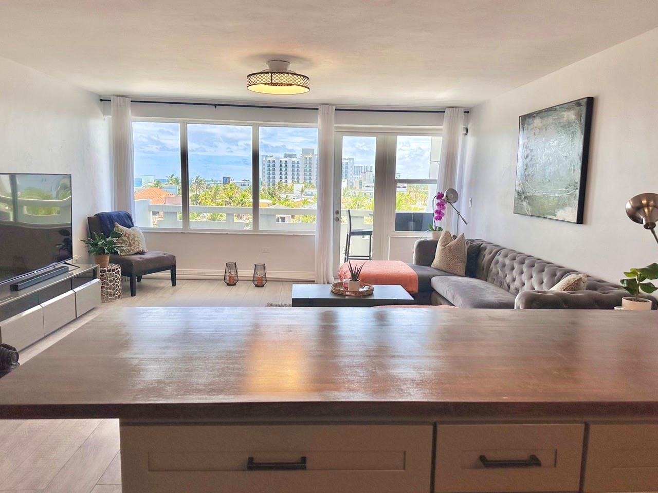 Ready to live on Hollywood Beach? Beautifully renovated 2 bed/2 bath unit now available in one of the most iconic towers on central beach. With direct access to Hollywood's famed Broadwalk, you're just steps away from all the beachfront fun. The classically updated kitchen is open to the main living area offering lovely views through impact rated windows and doors. Wide plank, wood-look tile flooring creates a coastal modern feel. No popcorn ceilings here and the A/C is brand spanking new. And FYI..the seller has the permit to add a washer and dryer in this unit. Hollywood Towers residents enjoy 24 hr. security, an elevated beachfront pool deck, a fitness room with ocean views/saunas and an impressive lobby with social spaces. All assessments paid! You'll love living here.