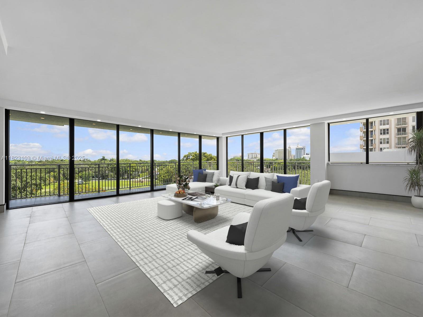 Bathed in light and wrapped in breathtaking views, this elegant 3,200 sq ft apt. is a sanctuary in the sky. Floor-to-ceiling windows frame a stunning panorama; the wraparound balcony invites moments of serenity. Thoughtfully designed with expansive sleeping quarters, generous walk-in closets, and an open concept living, offering both comfort and flexibility. Easily accommodate a third bedroom if desired. The luxurious principal bath features a his-and-her layout, adding to the home’s refined appeal. Nestled in the exclusive Gables Bath building across the Granada Golf Course, privacy is paramount with only 12 full-floor units. Just blocks from vibrant shops and dining blending city energy with tranquil beauty. The bldg. has all recertifications, assessments paid & fully funded reserves.