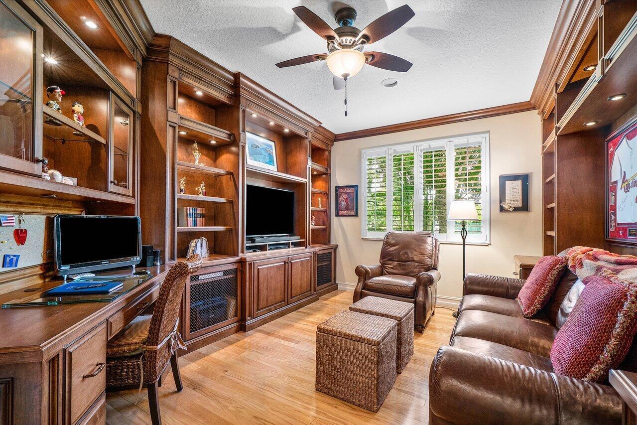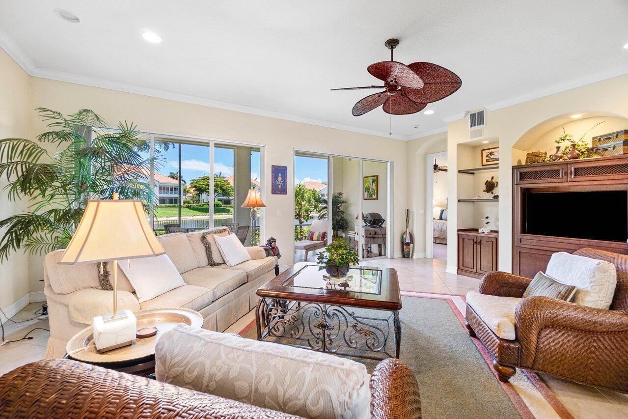 Experience the ultimate in luxury and privacy in this beautifully maintained 1st-floor end unit in the exclusive Palm Bay Club at BallenIsles Country Club. Any membership category is available - choose your preferred Full Golf, Sports or Racquets.This spacious residence features 3 bedrooms with the 3rd bedroom is currently configured as a beautifully built-in office. Enjoy breathtaking lakefront views framed by elegant iron fencing, all from the comfort of your own private oasis. This coach home has been thoughtfully updated with a new roof (2024), AC (2020), water heater (2021), patio screening, fresh exterior paint, and new landscaping -- ensuring a move-in-ready experience and peace of mind.