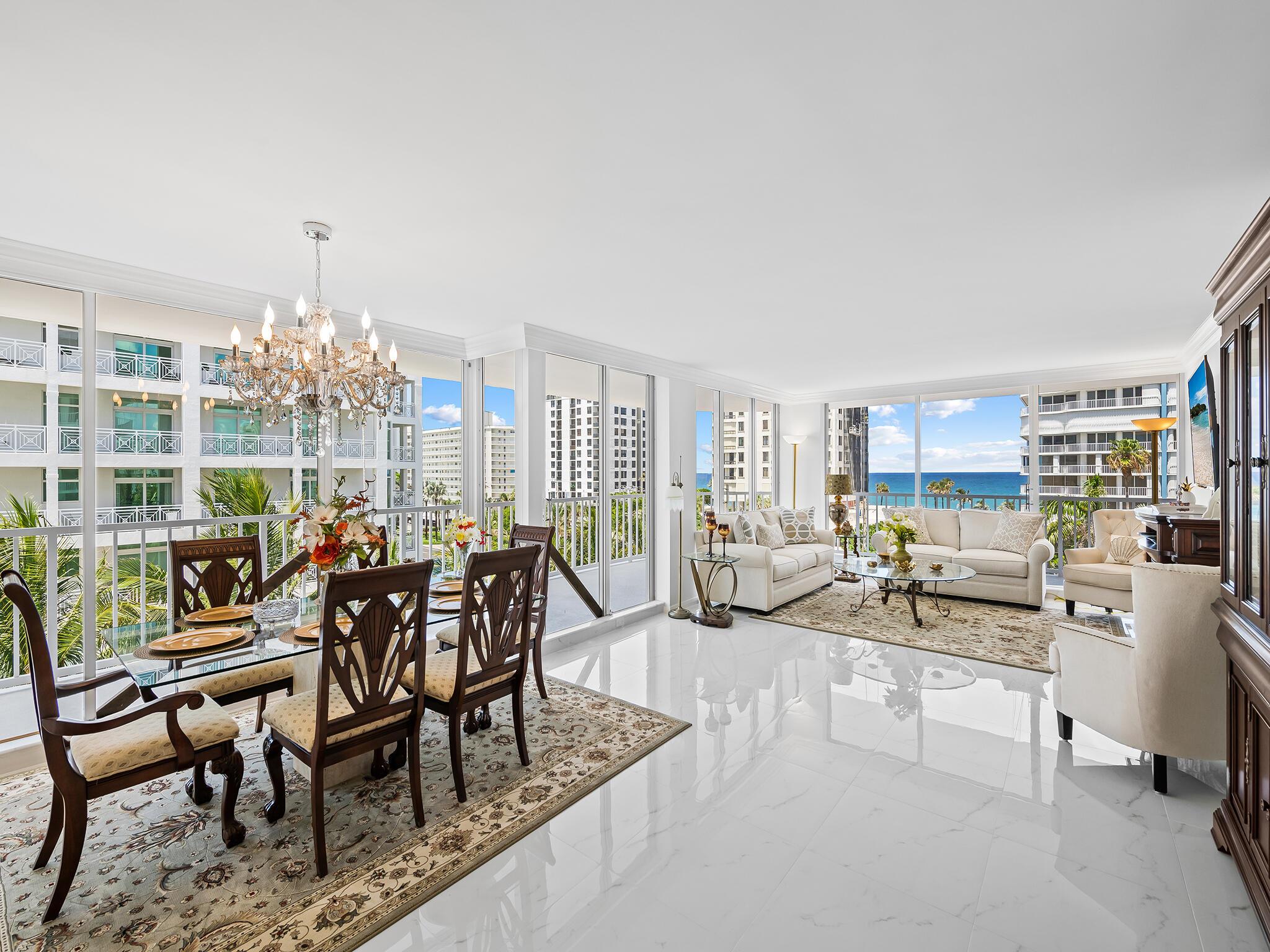 This Building is completing a beautiful exterior restoration! Beautiful wrap around balconies and striking ocean and Intracoastal views await! Make this generously proportioned, full 3 bedroom 3 bathroom residence your new coastal retreat! Floor to ceiling glass and newly installed shutters around the entire home. Enjoy Beach/Ocean access, beach storage & restroom, security, fitness, pool, hot tub,BBQ, garage parking. Located on the elegant, upscale barrier island of Highland Beach, and perfectly situated between the vibrant, happening Delray Beach and prestigious Boca Raton. Enjoy the best of nearby shopping and dining, while living in gem of a city on the Florida coast! Over $200,000 of recent improvements PAID for this unit, newly added shutters