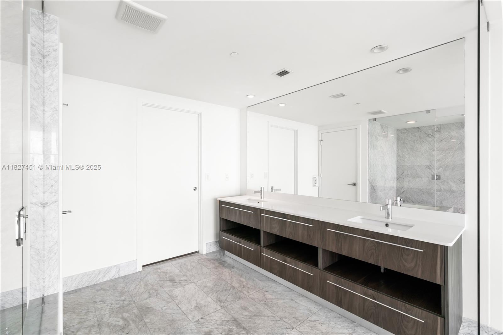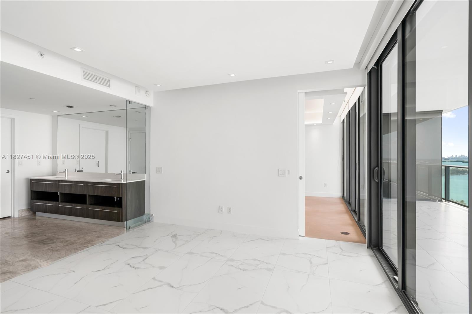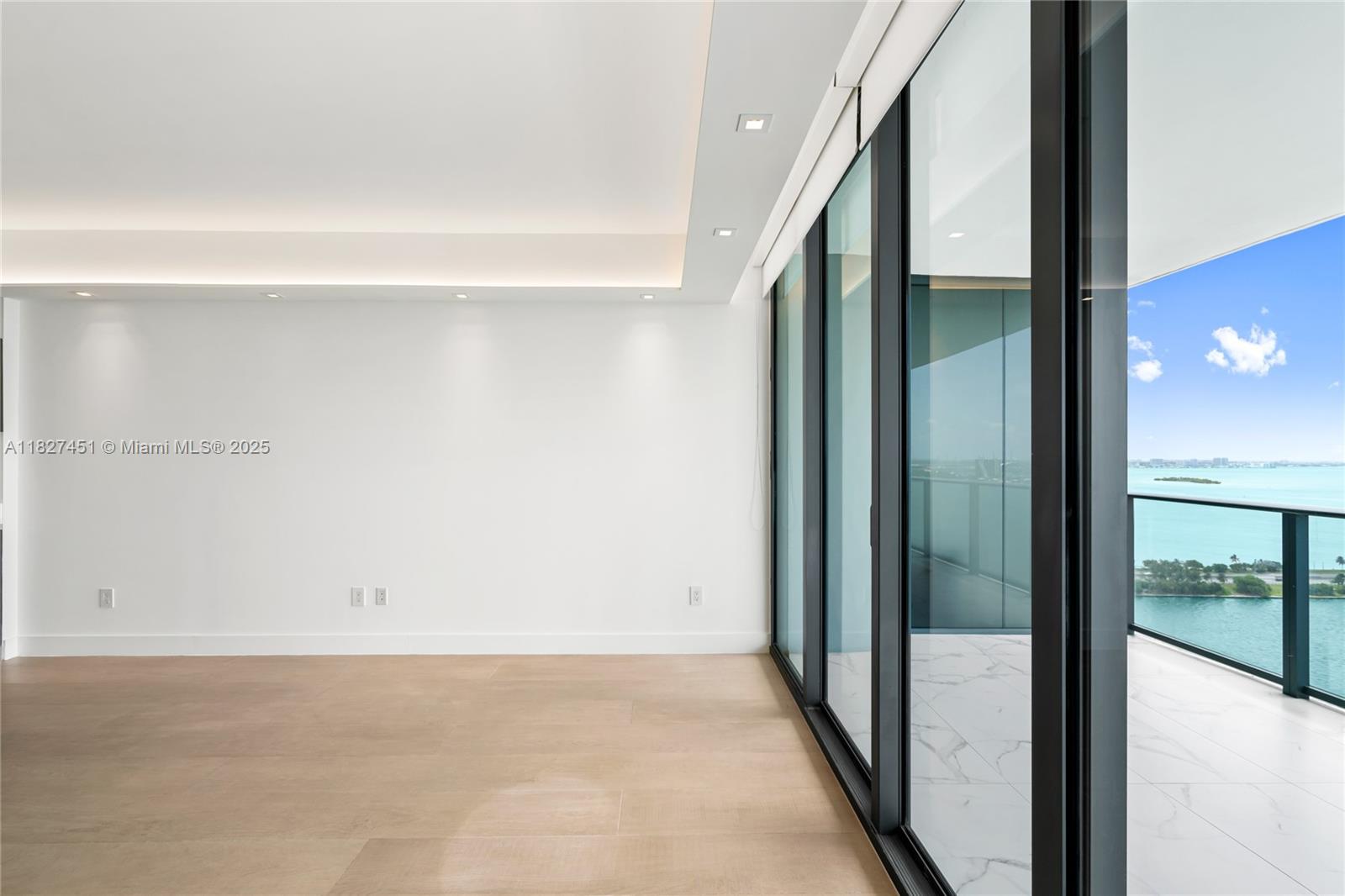 Come live in this One Paraiso 2 bed / 2 bath residence with private foyer and stunning views of the Biscayne Bay. Unit features an open kitchen design with moveable island, upgraded lighting throughout, built out closets, blinds and a very expansive terrace, perfect for entertaining. Five star amenities including a full service spa, 2 pools, cabanas, fitness center, tennis courts, movie theatre, game room, party room, bay access to Amara, 24 hr security and valet. Unit is vacant and easy to show, please text listing agent or use showing time.