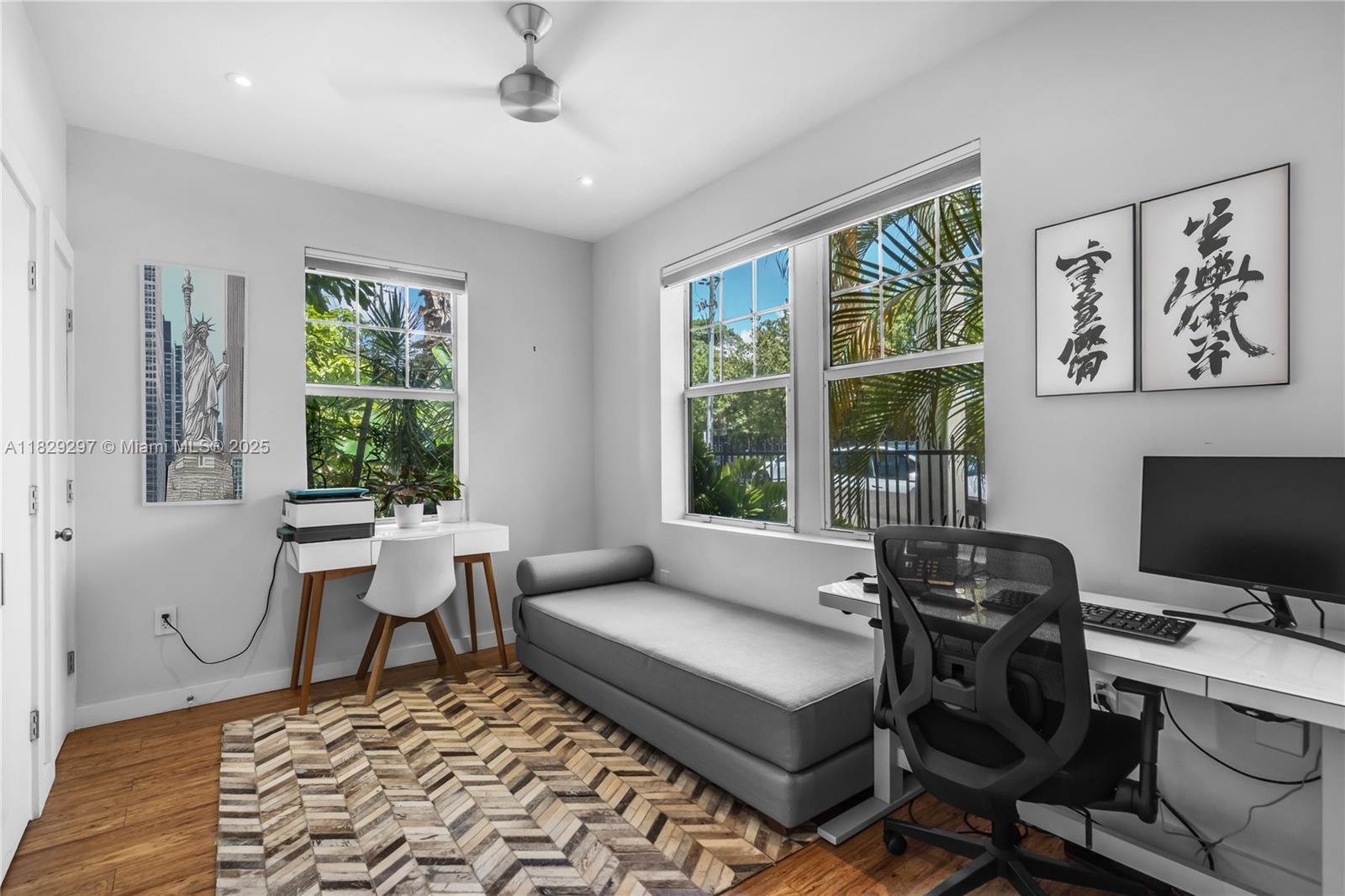 Rarely available gem in the heart of South Beach! This spacious 2-bed, 2-bath corner unit is located in a boutique 4-unit 1930 Mediterranean Revival building designed by Schoeppl & Skinner. Thoughtfully remodeled, it feels more like a private home—complete with a detached garage & EV charger. The unit features wood floors throughout, a modern kitchen w/ quartz countertops, S/S appliances including a dishwasher, subway tile backsplash, & washer/dryer. Both bedrooms have sleek en-suite baths, & the layout offers a separate dining area & a bright living space with three exposures. Enjoy lush views perfect for relaxing. Next to Flamingo Park with Tennis, Pickleball, Basketball & Dog Park. Walk to the beach, top restaurants, shops, & nightlife. Pet friendly & can be sold furnished. 40 Year Recertifications Done, Property has Reserves, and No Current Special Assessments