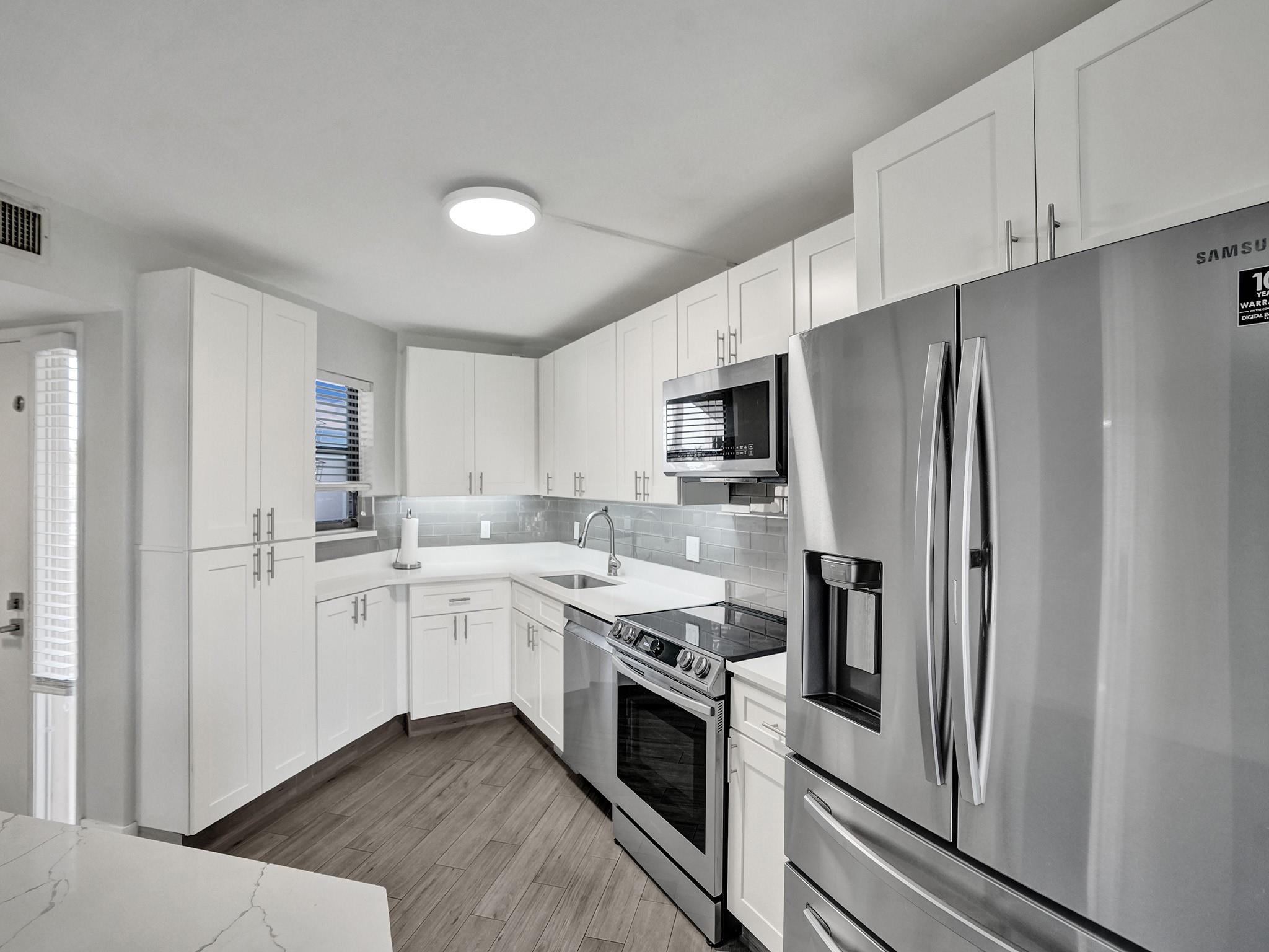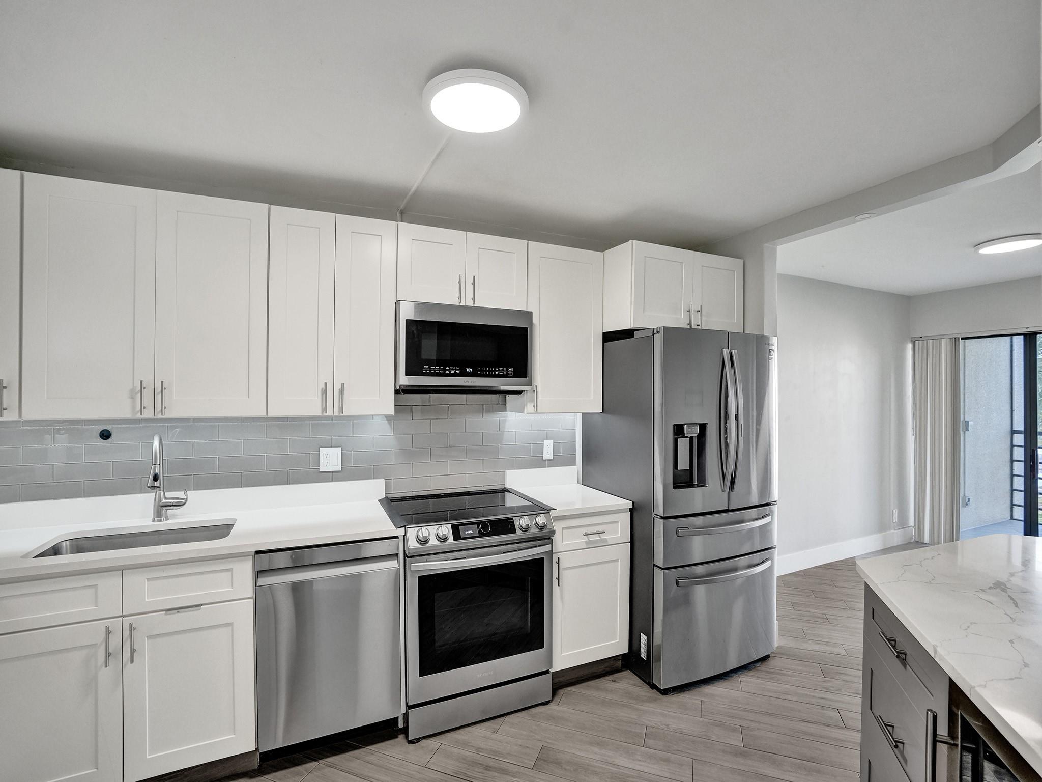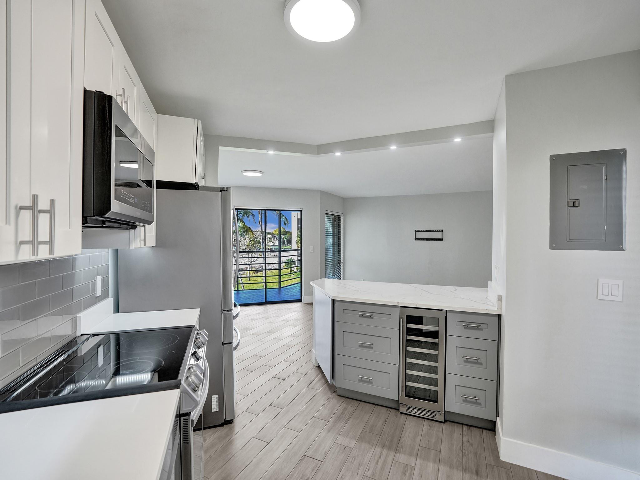 Welcome to this stunning remodeled 2 bedroom 2 bath unit located in this amazing 24 hours manned gated community Camino Real Village in Boca Raton. This community is close to top A rated schools, highways, restaurants. Newly renovated kitchen includes Samsung Appliances, Wine Cooler, Newer stackable washer and dryer. A/C and Heater was replaced in 2021, new floors, This unit offers oversized screened balcony, community has 4 heated pools, tennis courts, sauna and pickle ball courts. Unit has one-car garage, 1 assigned parking spot, and other guest parking. Beach is 5.5 miles away, Boca Town Center Mall is 3 miles away.