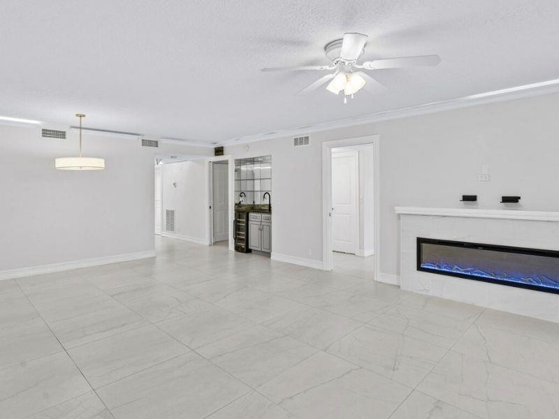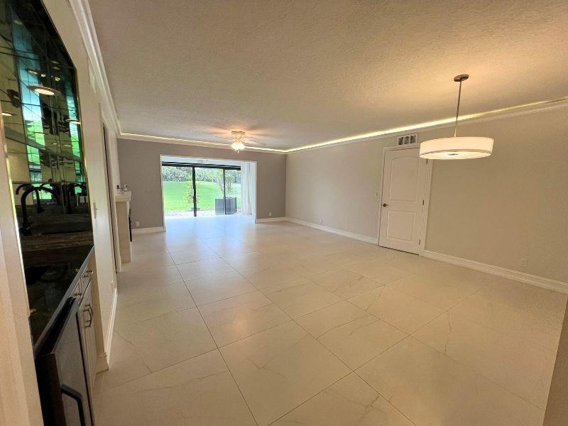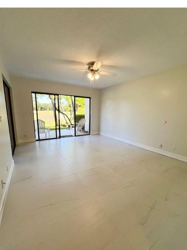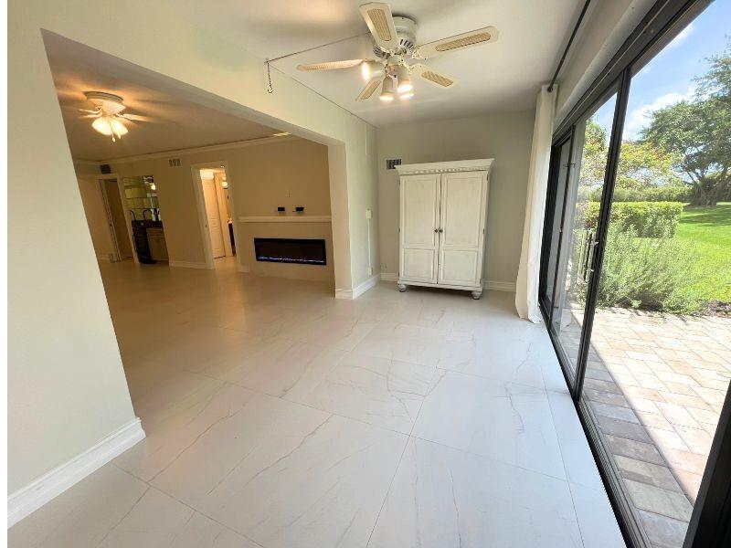 Fully Renovated Luxury Villa-Style Condo with Forever Views, $200K+ in Upgrades Stop searching. This is the one. This rare 2BR/2BA ground-floor end unit in The Fountains Country Club (no membership required) has been completely transformed with over $200K in high-end renovations. Located in a peaceful, gated enclave of just 24 residences, it offers the privacy and feel of a single-family villa with the ease of condo living. Step inside to an open, sun-filled layout with 36” porcelain tile floors, cove lighting, custom doors, refined moldings, upgraded fixtures, and added storage. The spa-inspired primary suite features a solid-stone soaking tub and walk-in shower, creating a tranquil retreat.