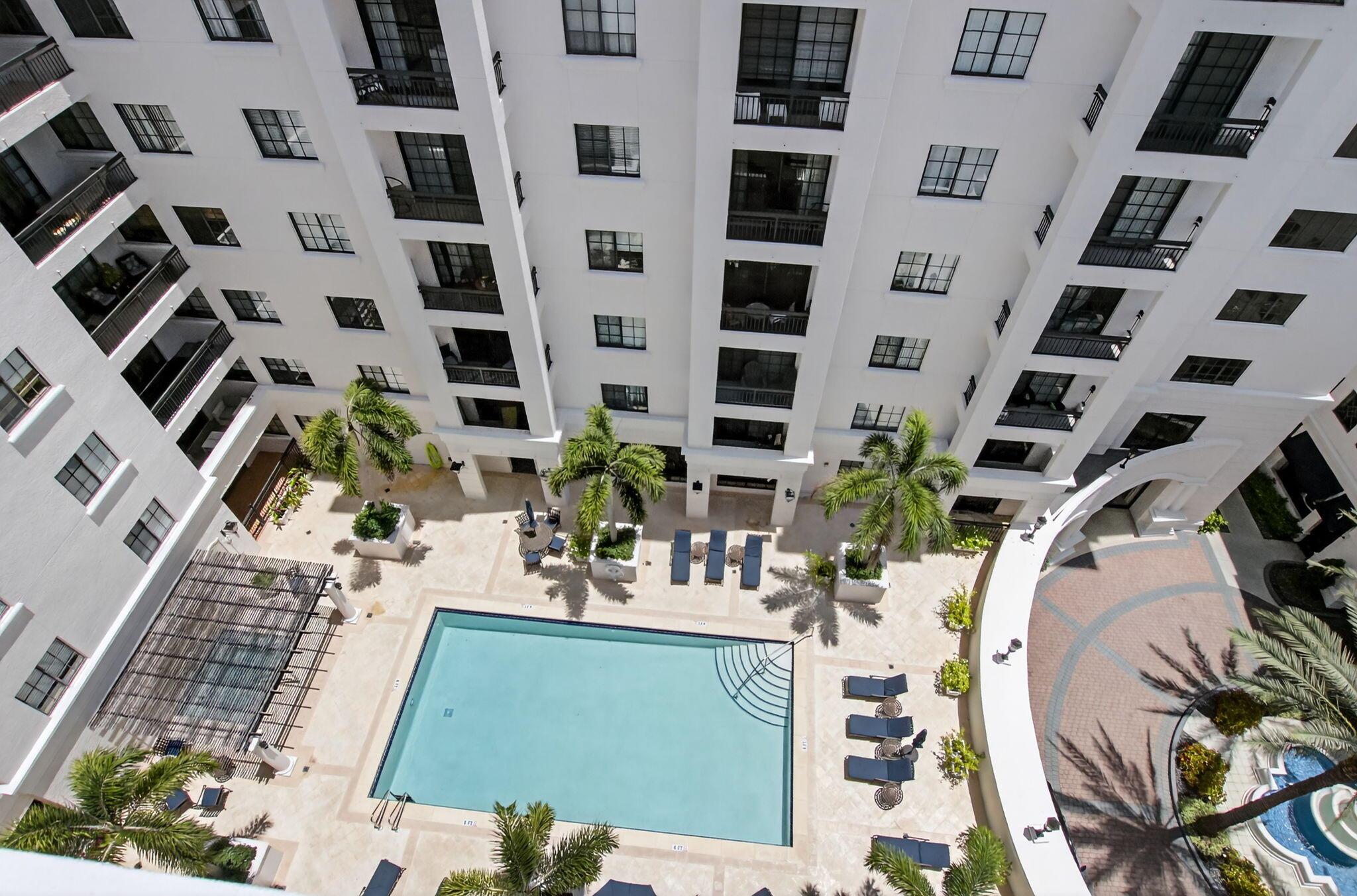 Welcome to luxurious living in the heart of downtown Boca Raton! This penthouse level one bedroom condo offers serene pool views and features soaring 10.5 ft ceilings and elegant arched windows. The unbeatable downtown location is just steps from Royal Palm Plaza, Mizner Park, the amphitheater, the beach, Brightline train station and tons of restaurants and shops! Truly the best of city living at the beach! This top floor condo has a southern exposure that fills the space with natural light along with a covered balcony overlooking the courtyard pool. This condo also features hurricane impact windows, brand new 2025 A/C, new (or like new) appliances and hot water heater. Boca Grand is a full-service luxury building offering secure garage parking, valet, concierge, resort-style pool & spa,