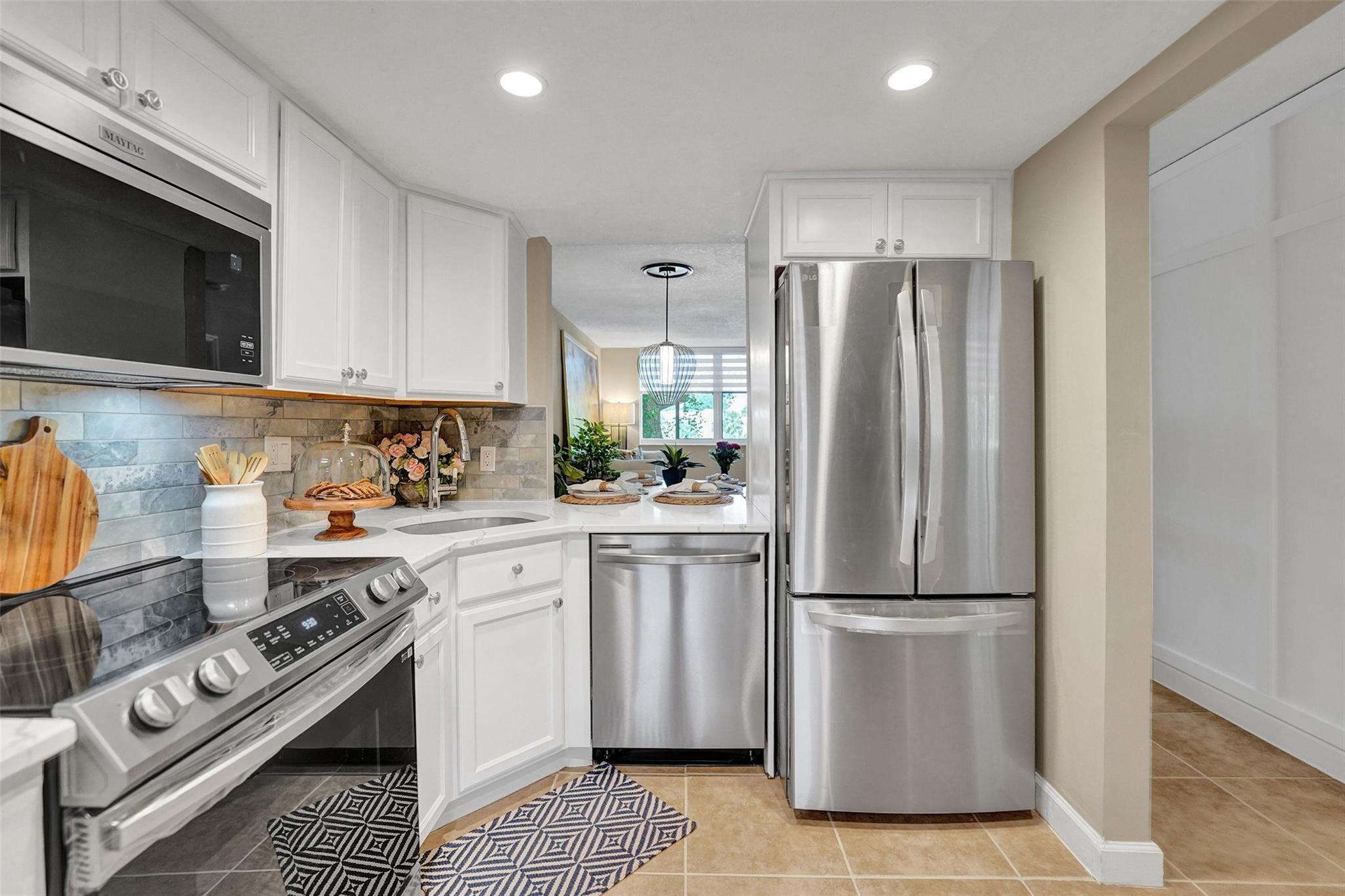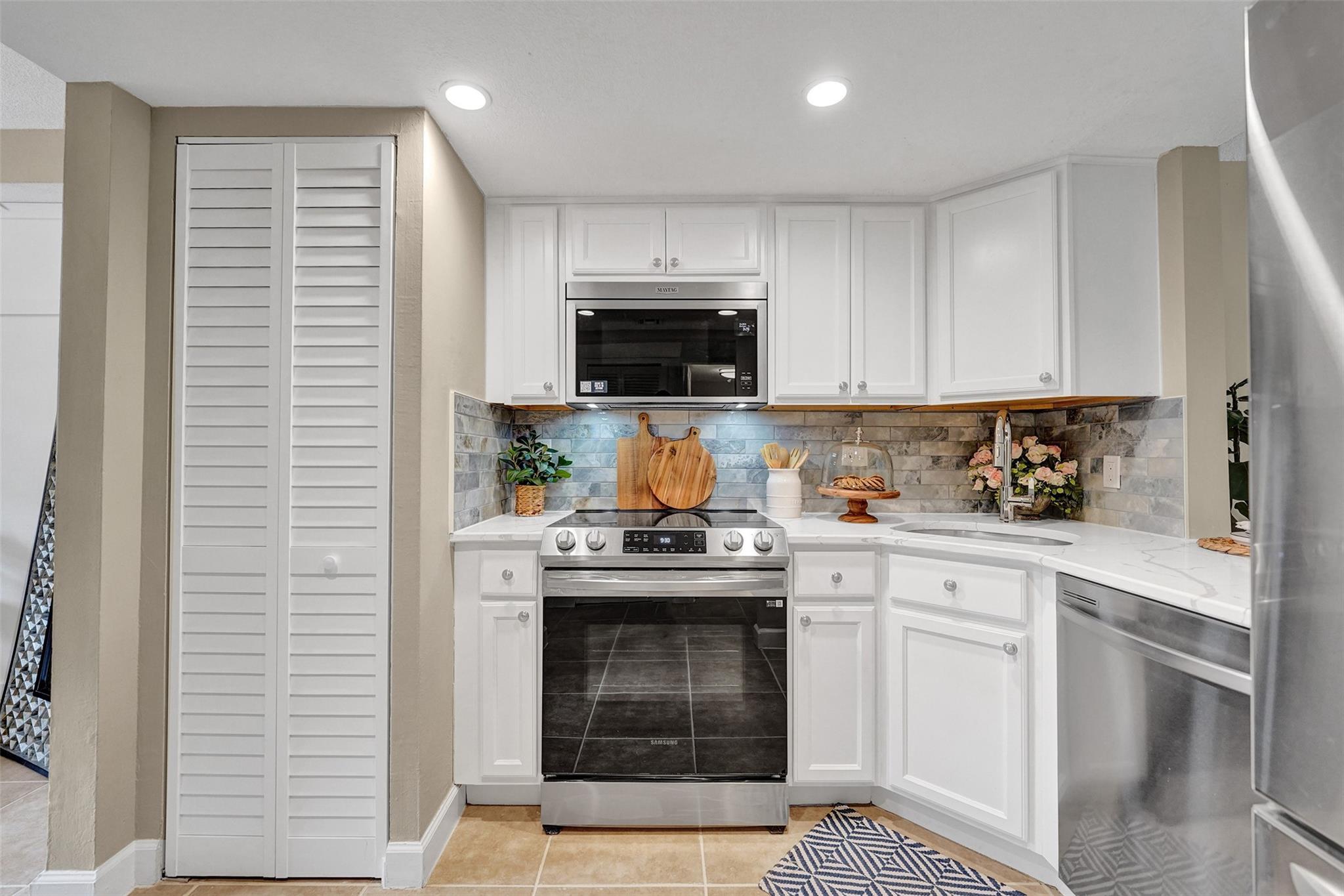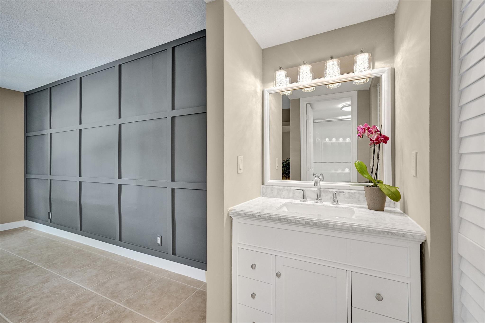 Welcome to this beautifully completely updated, move-in-ready condo featuring 2 spacious bedrooms, 2 modern bathrooms, plus BONUS den—perfect as a home office or even a 3rd bedroom. The interior showcases custom wood accent walls that add warmth and character throughout. Enjoy a fully renovated kitchen with beautiful white cabinetry, Quartz counter tops and brand-new stainless steel appliances, along with totally updated bathrooms featuring stylish finishes. Full IMPACT WINDOWS and a newer A/C (2020) provide comfort and peace of mind all year long. Private storage unit included. Located in a well-maintained pet-friendly community with large pool and spa has a low HOA of just $352/month. Centrally situated near shops, dining. **NO RENTALS ALLOWED**