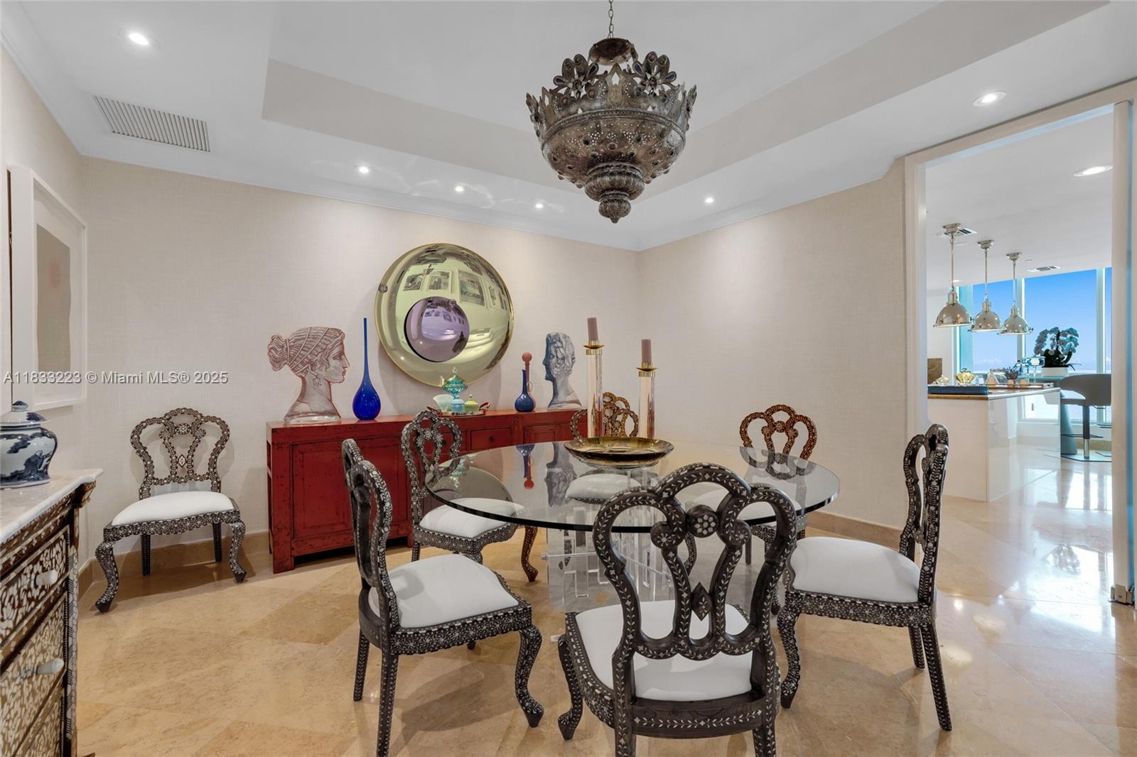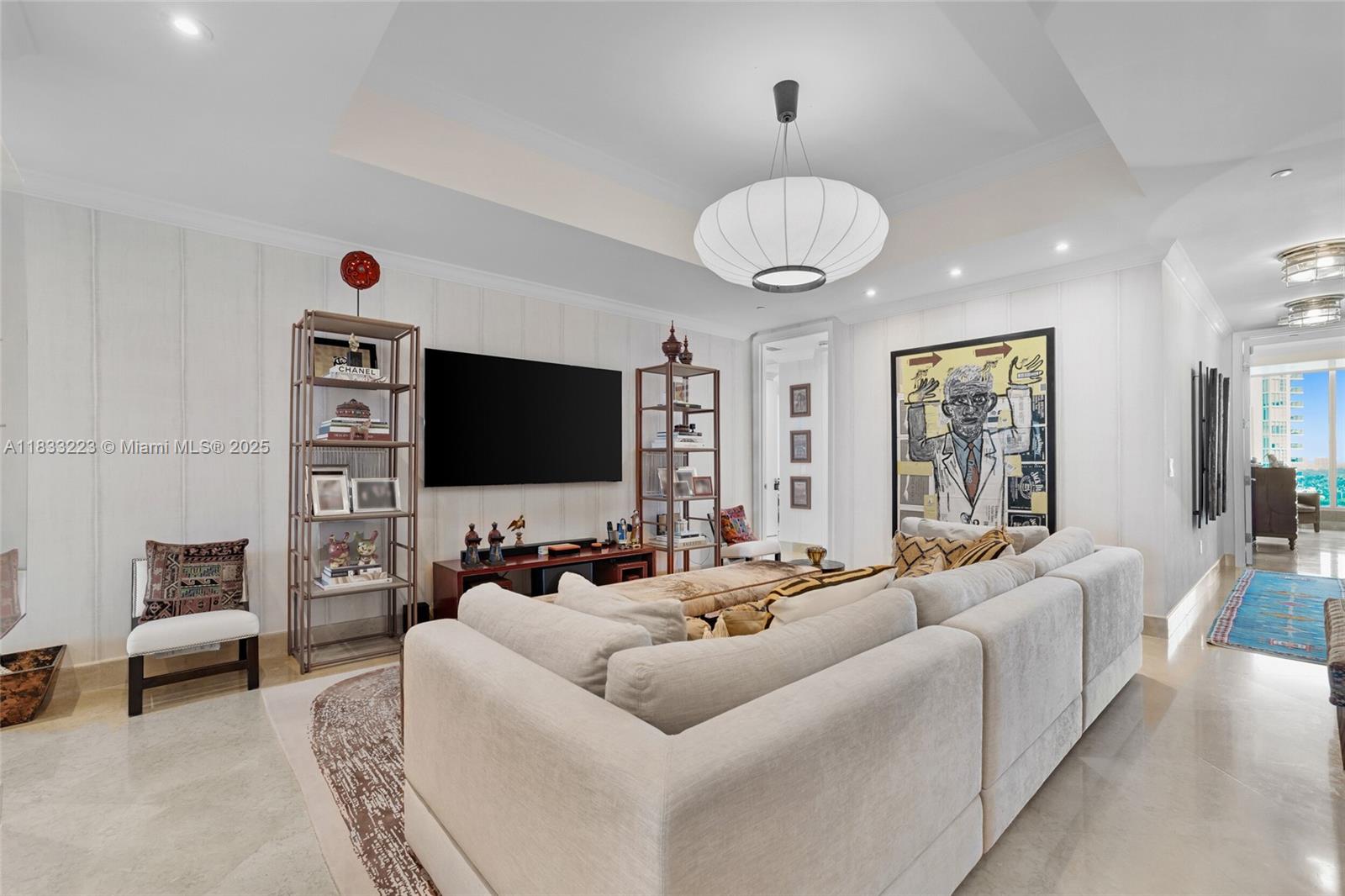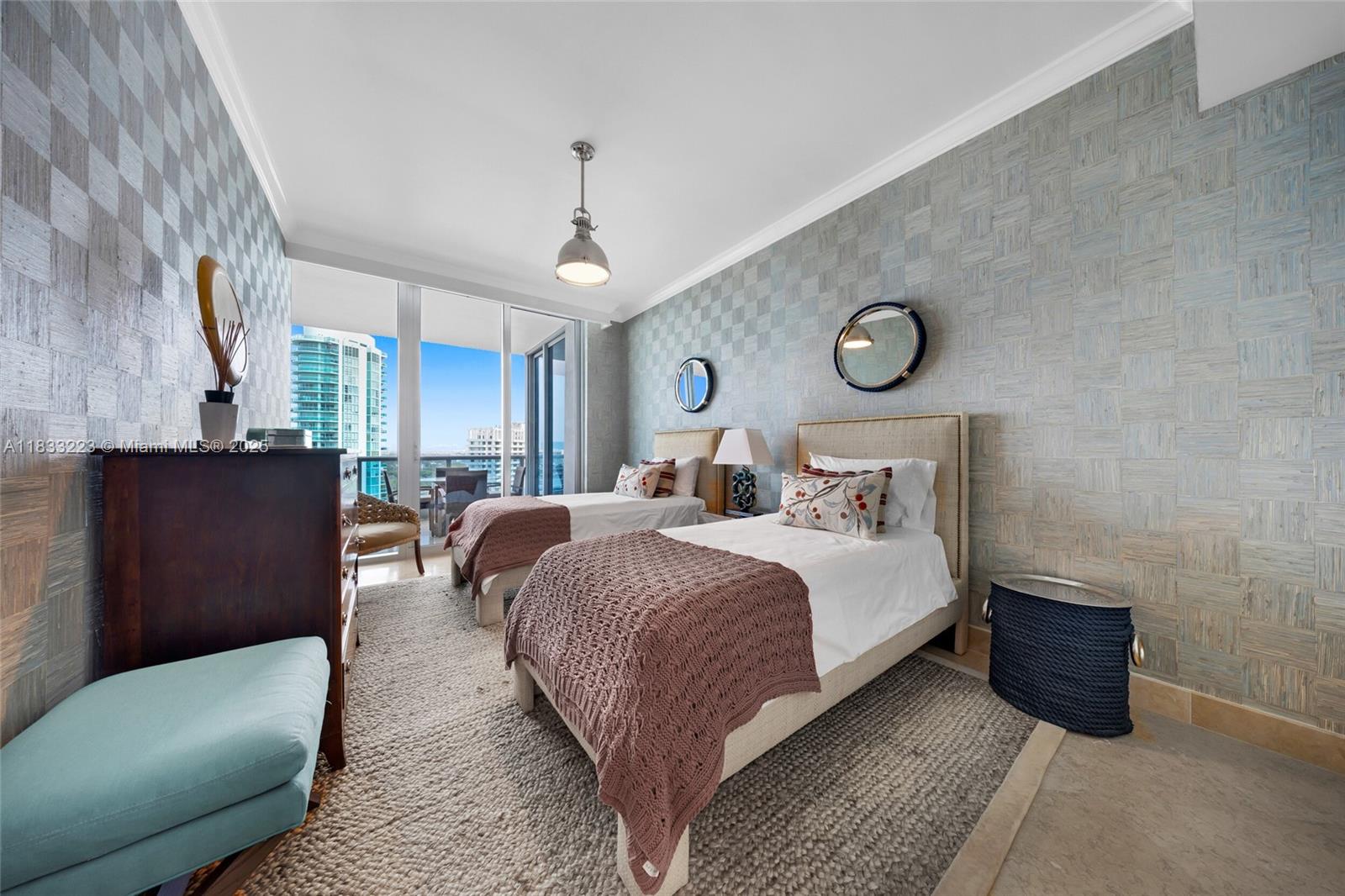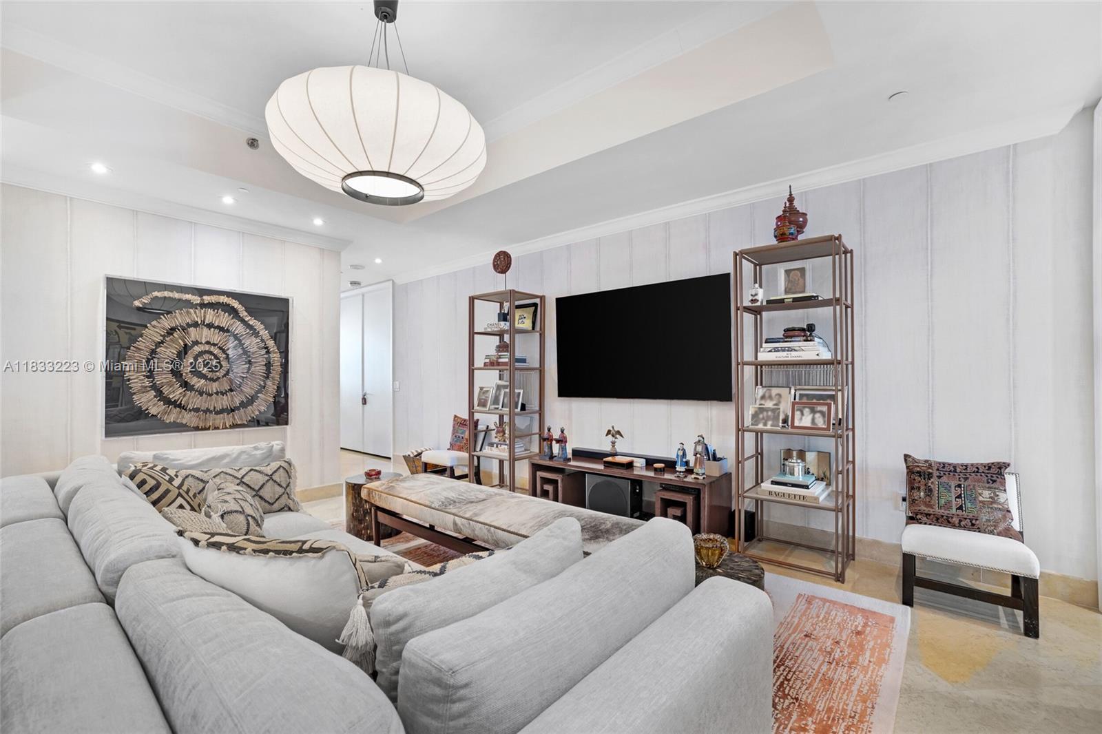 Experience Luxury Living at the Prestigious Bath Club in this Beautiful 4 Beds/3.5 bath residence. Enjoy breathtaking, unobstructed views of the ocean and bay with 3,982 square feet of interior space and over 500 sqft of Private Terraces. This Refined home features 10-foot ceilings, a private elevator entrance, 3 Parking Spaces, and custom Designer finishes. The European-style kitchen is equipped with top-tier Sub-Zero and Miele appliances. The expansive principal suite includes two walk-in closets, and a spa bathroom, Residents enjoy five-star amenities: 570 feet of beachfront, a lap pool and outdoor spa, private cabanas, two clay tennis courts, valet service, a state-of-the-art gym, 24-hour security, and fine in-house dining in a private club setting.