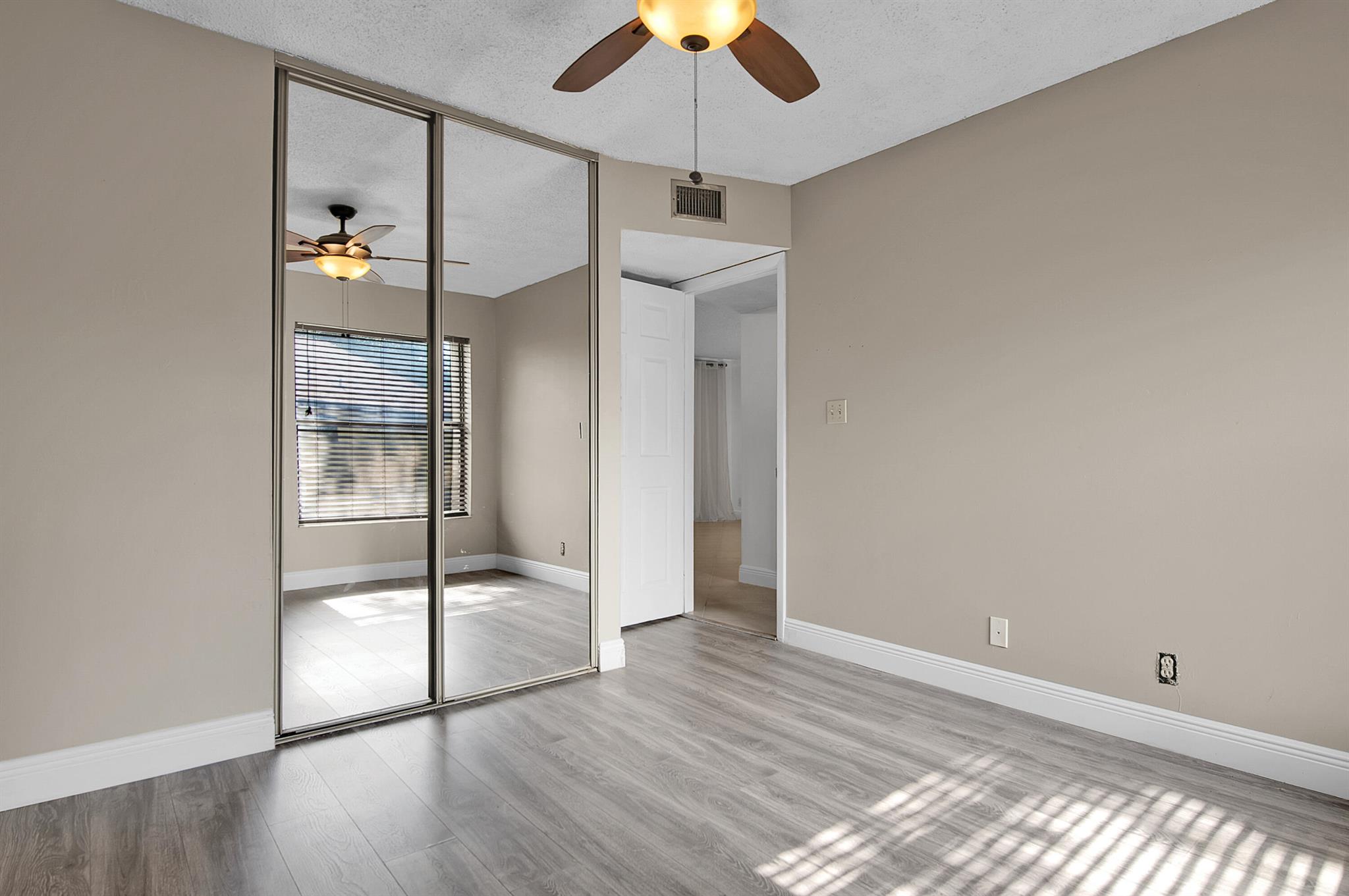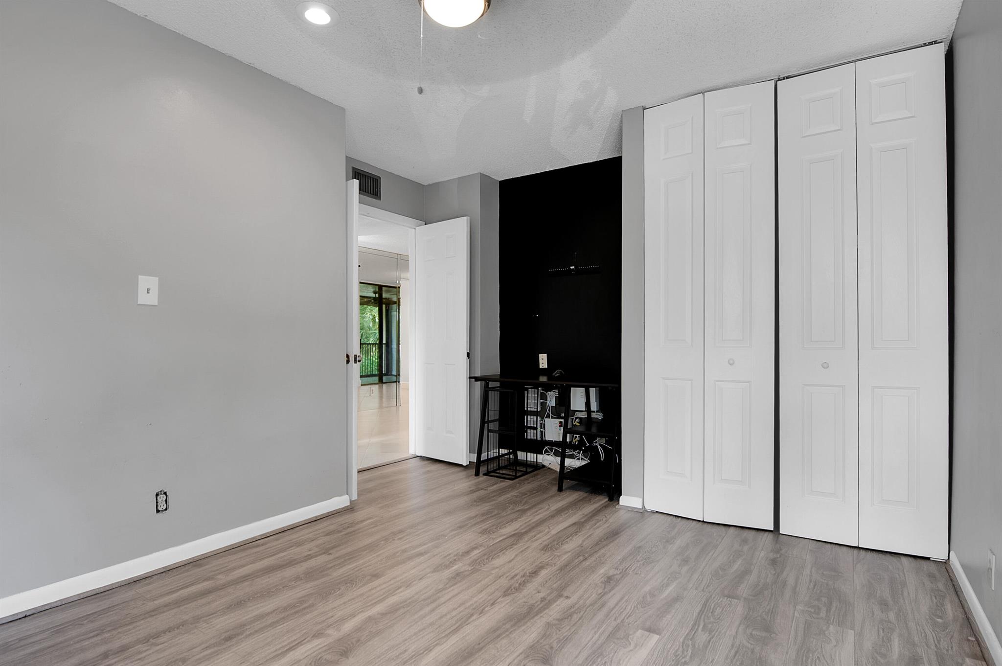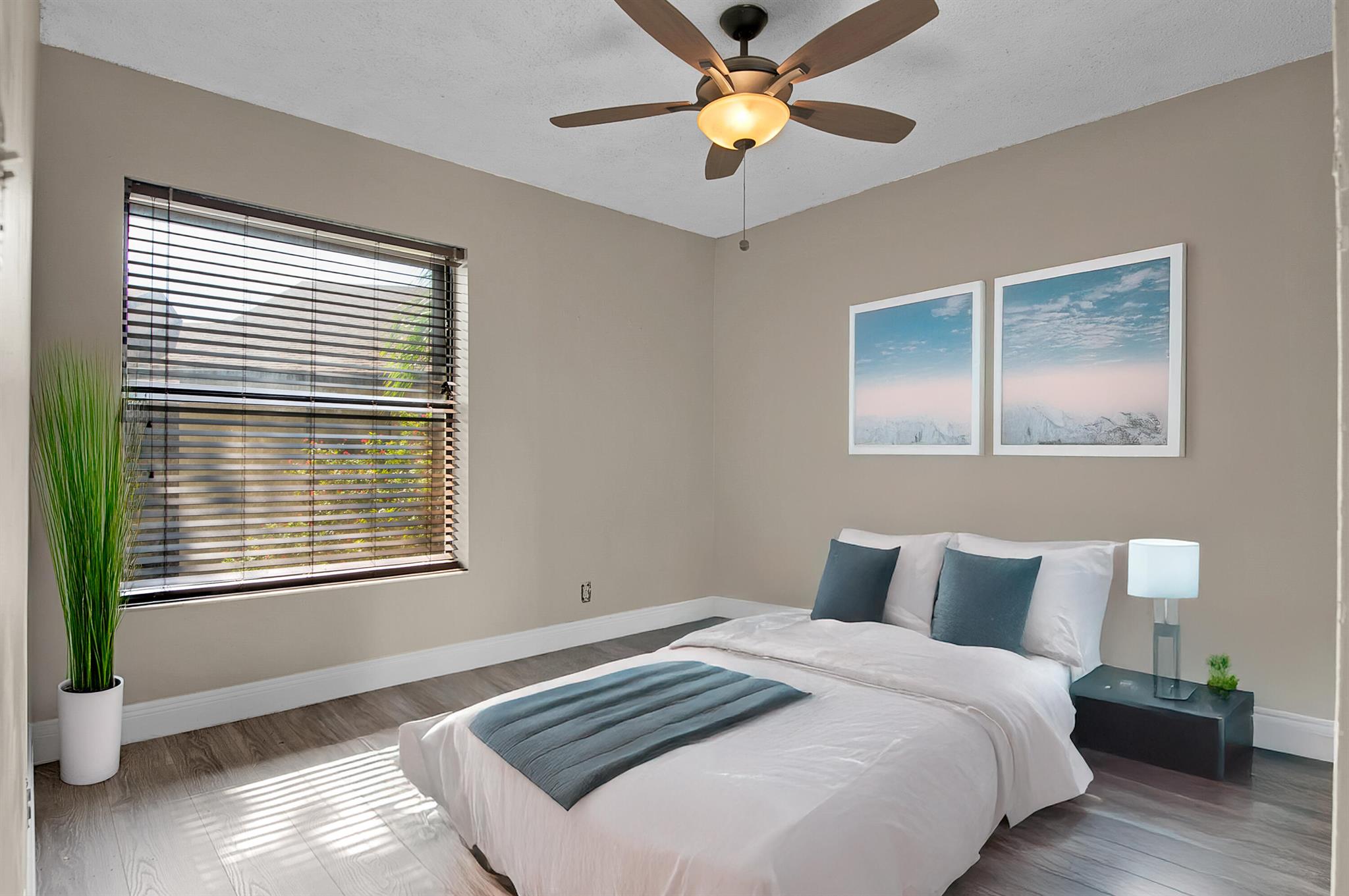 Welcome to this spacious 3 bedroom, 2 bathroom condo located in a quiet, gated community. The open concept living and dining area is filled with natural light and flows seamlessly onto a huge screened balcony - perfect for relaxing or entertaining while overlooking the lush garden. The home features accordion hurricane shutters on all windows and balcony for year-round protection. The primary suite includes a walk-in closet and a private en-suite bathroom while the two additional bedrooms offer flexibility for family, guest, or a home office. Enjoy the convenience of in-unit laundry and dedicated parking in front of the building. Community amenities include 2 pools, fitness room, clubhouse, tennis courts and walking trails, all within the safety and privacy of a secure environment.