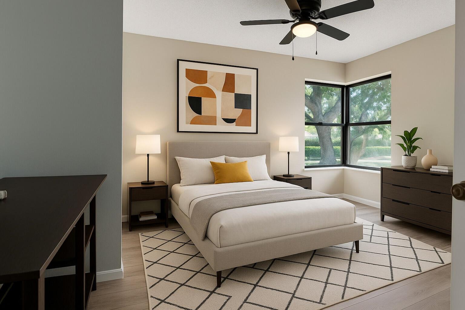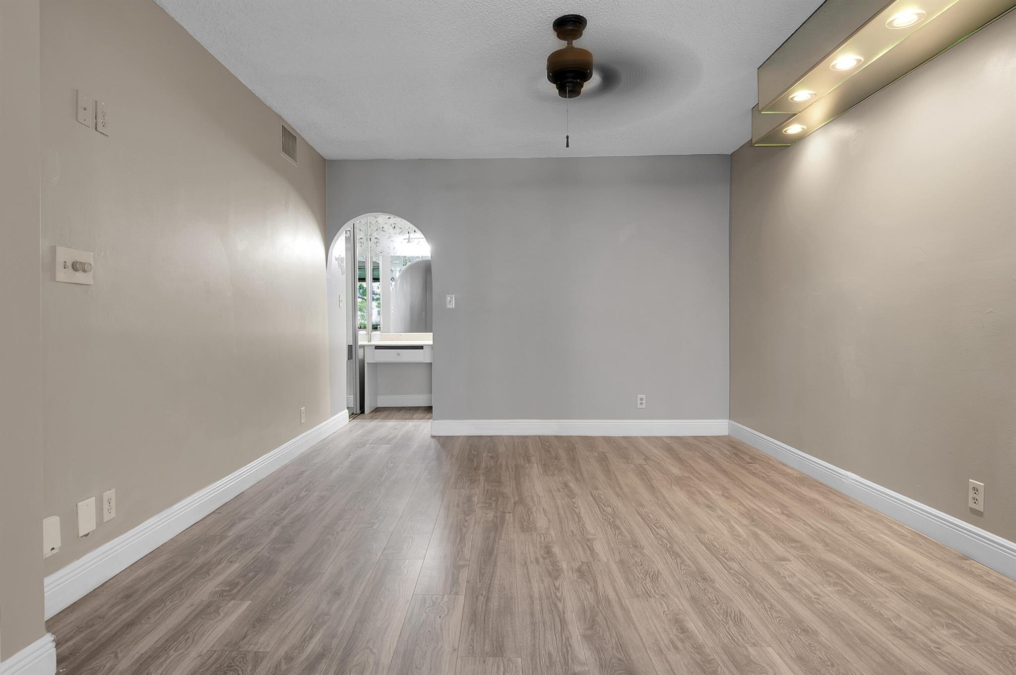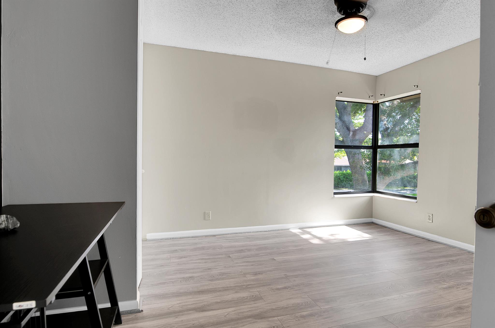 Welcome to this spacious 3 bedroom, 2 bathroom condo located in a quiet, gated community. The open concept living and dining area is filled with natural light and flows seamlessly onto a huge screened balcony - perfect for relaxing or entertaining while overlooking the lush garden. The home features accordion hurricane shutters on all windows and balcony for year-round protection. The primary suite includes a walk-in closet and a private en-suite bathroom while the two additional bedrooms offer flexibility for family, guest, or a home office. Enjoy the convenience of in-unit laundry and dedicated parking in front of the building. Community amenities include 2 pools, fitness room, clubhouse, tennis courts and walking trails, all within the safety and privacy of a secure environment.