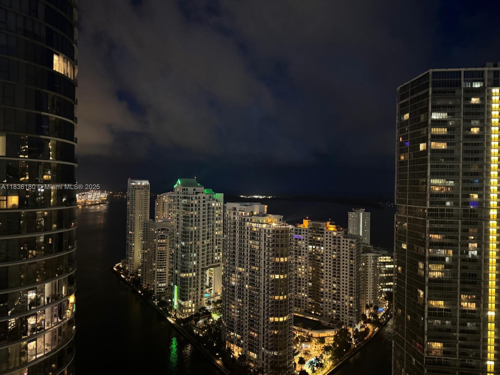 Spectacular view from this almost never used condo in the 46 floor. Experience upscale living in this stunning 2 bed / 2.5 bath unit plus den plus office, 2 ASSIGNED PARKING and storage, featuring soaring 11-foot ceilings. The split floor plan offers spacious bedrooms and a luxurious master bath. Enjoy breathtaking views of the Miami River, Fisher Island, Brickell Key, and South of Fifth from this high-rise haven. Gourmet kitchen equipped with premium Sub-Zero and Miele appliances. Indulge in on-site fine dining at Zuma, relax by multiple resort-style pools, or unwind at the spa located on the 16th floor. Professionally furniture.