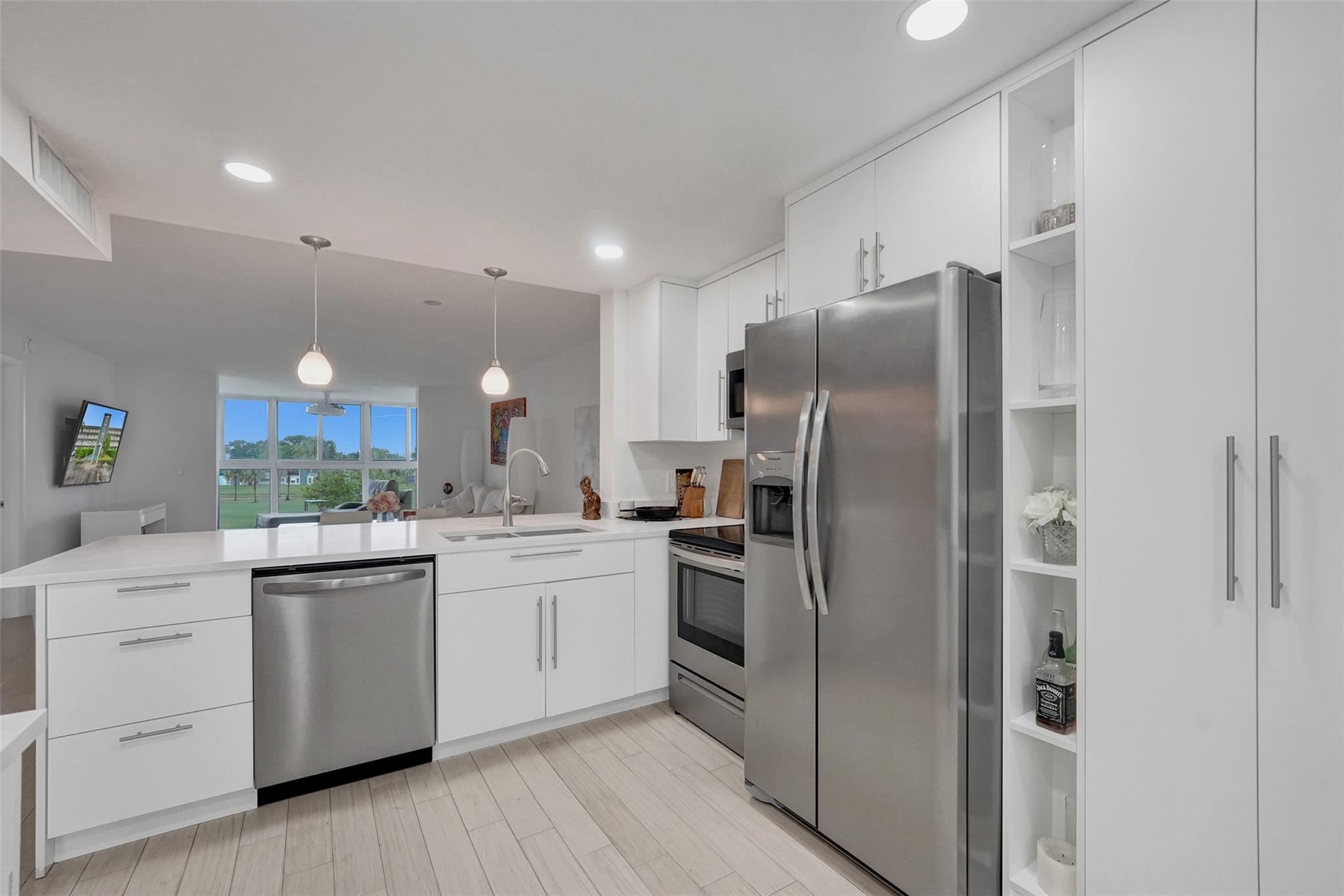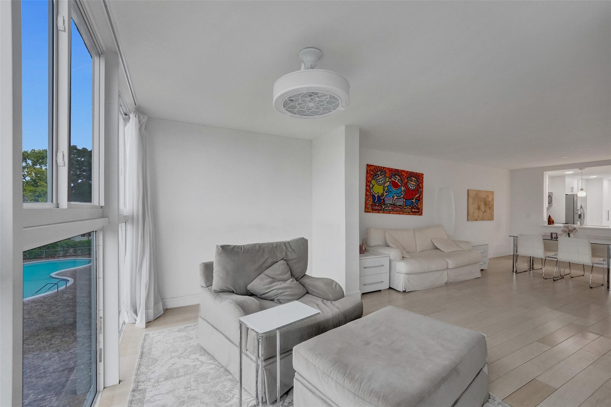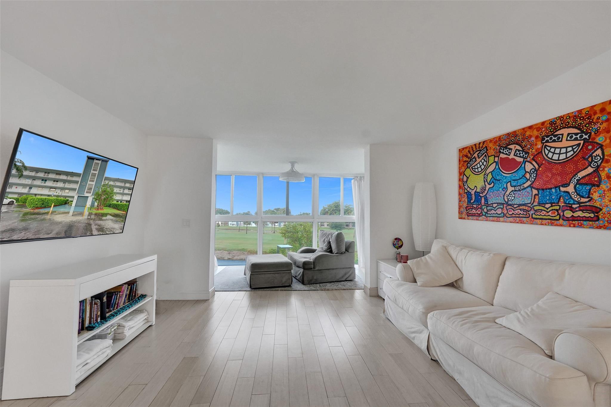 Bright and upgraded 2-bedroom 2-bath condo in a 55+ community, ideally located in the same building as the pool. Enjoy a renovated kitchen, tile flooring, updated baths, enclosed sunroom with golf, lake and pool views, and in-unit washer and dryer. Assigned storage included and rentals permitted. Residents enjoy access to a gym, sauna, library, game room, shuffleboard, and more.