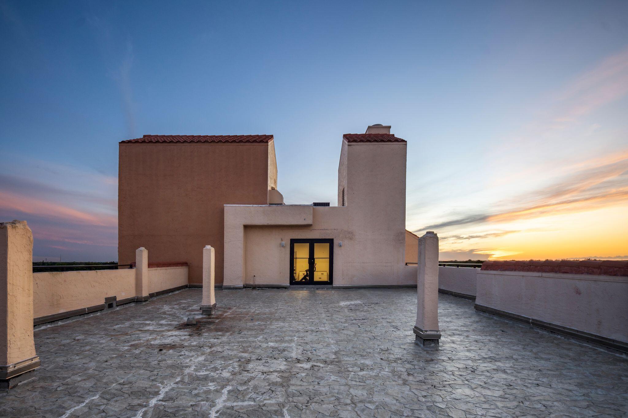 Penthouse perfection in the heart of Boca Raton. This one-of-a-kind 3-bedroom, 2-bath residence occupies the entire floor, offering total privacy and panoramic views in every direction. With no shared walls and direct elevator access, this exclusive unit includes an expansive 1,800+/- square foot private rooftop terrace -- ideal for entertaining, sunbathing, or enjoying the sunrise and sunset with unobstructed views to the east, north, south, and west. Inside, the home is rich with character and elevated finishes, including elegant custom built-ins, curved architectural walls, and a classic built-in bar. Hardwood, marble, and laminate flooring flow throughout the living spaces, blending warmth and sophistication. The updated kitchen features a brand-new refrigerator and modern touches,