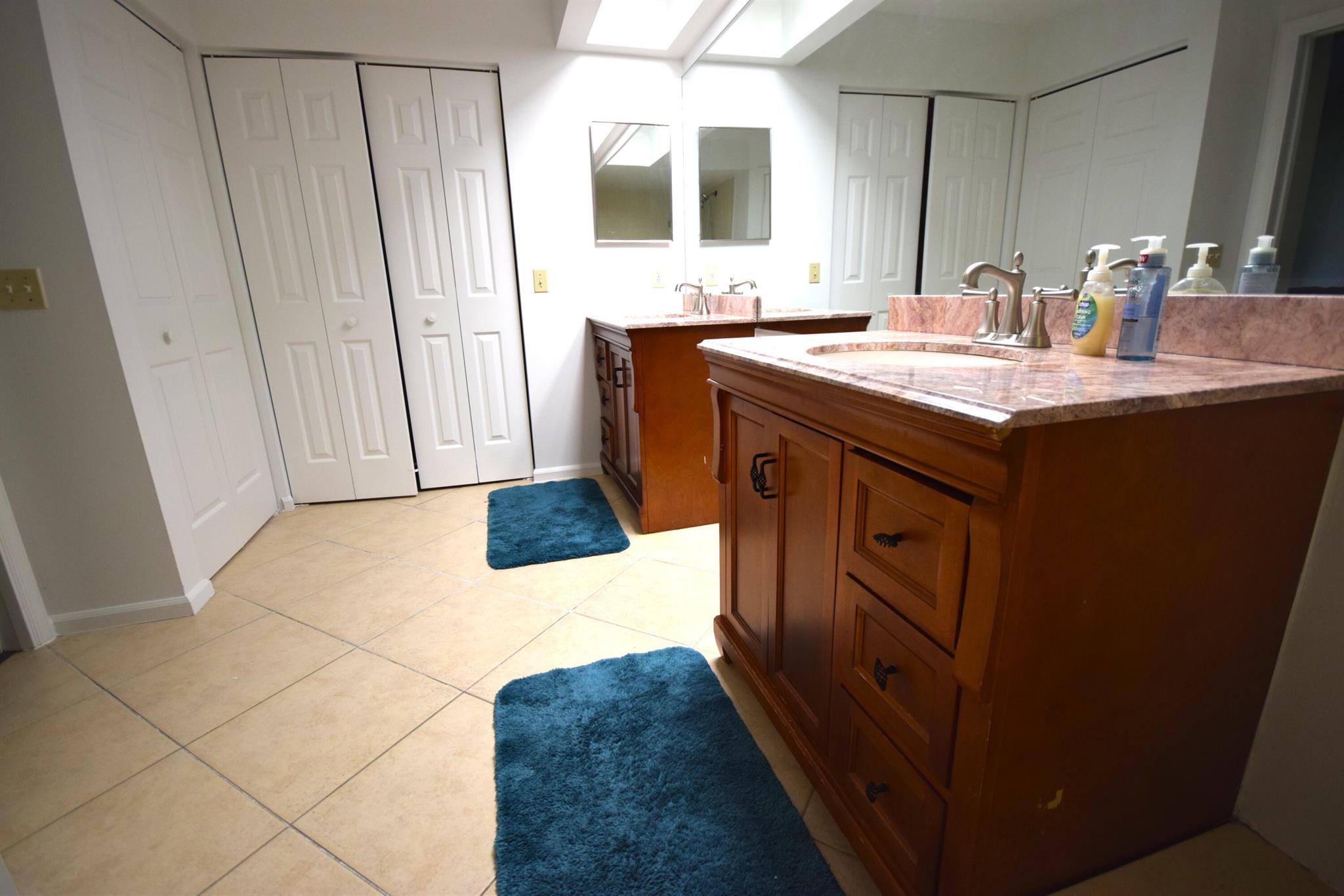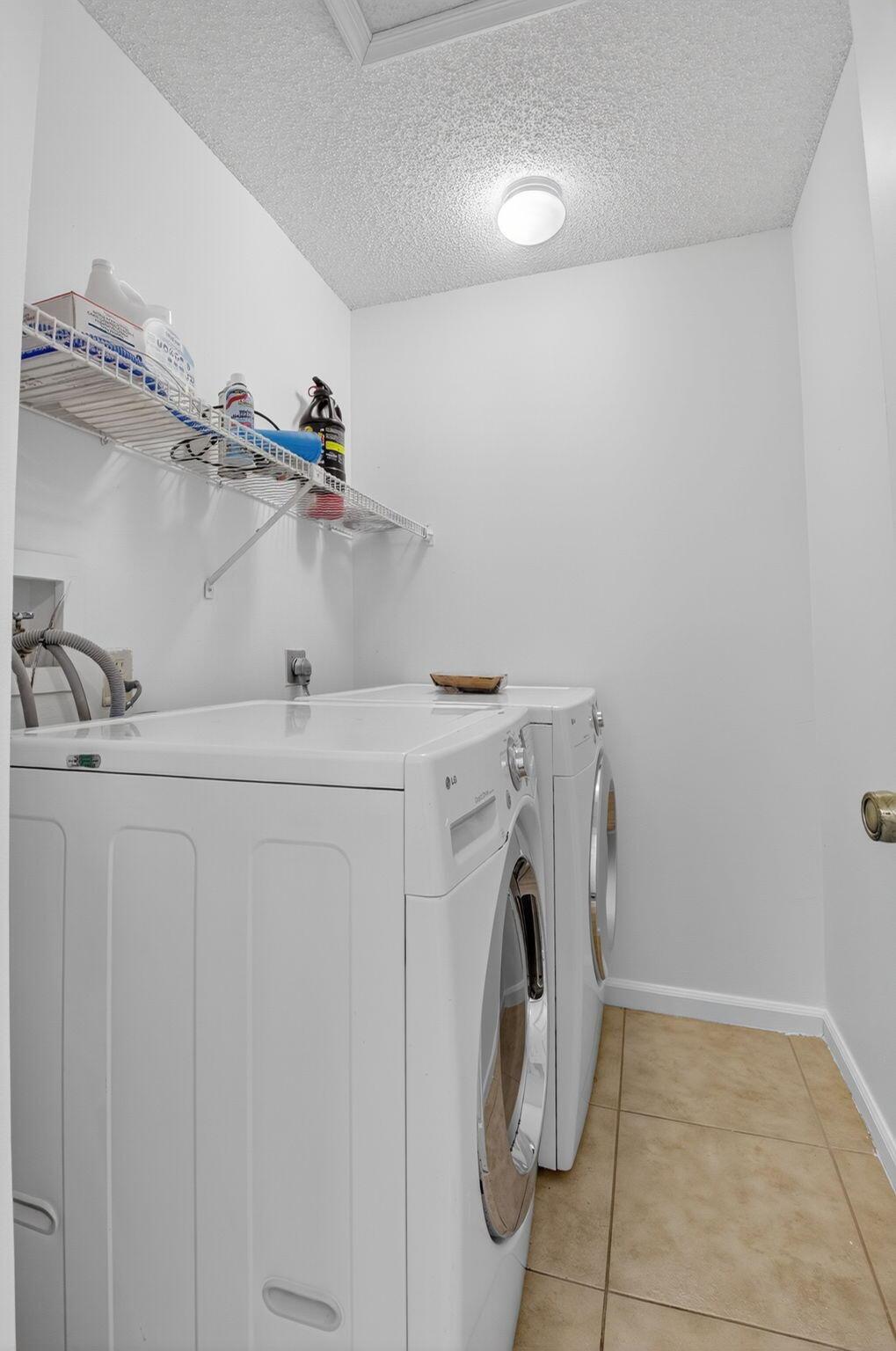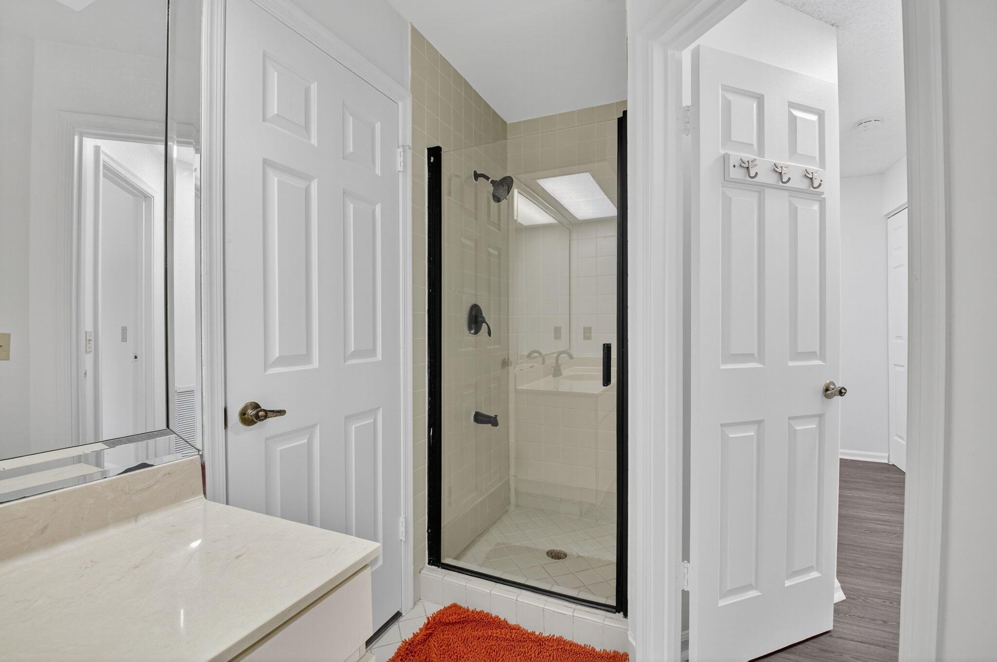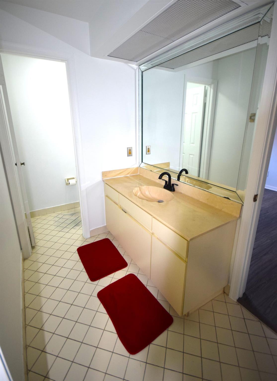 Tucked away on a quiet cul-de-sac in the all-ages Coach Houses of Town Place community, this spacious 3-bedroom, 2-bath home with a 1-car garage offers peace, privacy, and convenience. This is a highly desirable corner unit offering abundant natural light and a private front door entrance. The freshly painted interior features wood-look laminate flooring and vaulted ceilings, creating an open and airy feel throughout. Enjoy a large eat-in kitchen, separate dining area, and a comfortable living room - perfect for entertaining. Step out onto the expansive screened-in balcony and take in views of a lush green area shaded by a mature banyan tree. The stacked bedroom floor plan includes a primary suite with a walk-in closet and an ensuite bathroom featuring dual sinks and a sunken tub. Two