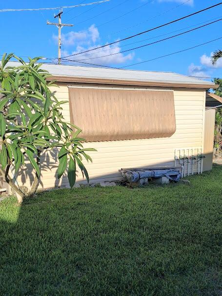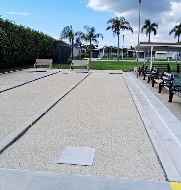 Corner lot sought after, well maintained manufactured home in a very friendly, active age 55+ community that's resident owned. NO lot fees! 1 time land share fee $750 refundable at resale. Turnkey all furniture and appliances included, full size washer/dryer in home, newer central A/C & water heater, Aluminum roof coated every few years, nice bright sunroom entry with wall A/C unit, kitchen island for entertaining, complex heated pool just refinished & clubhouse with many free concerts, BBQ's, games day, holiday parties, shuffleboard, bocce, petanque courts, golf driving cage, motorcycles & golf carts allowed, close to I95 and Turnpike, WPB & Ft Laud airports, 5 miles to beach, oversized shed 160 s.f. half bathroom & A/C unit, can be guest house or shelter, Sun shade patio, Hurry!