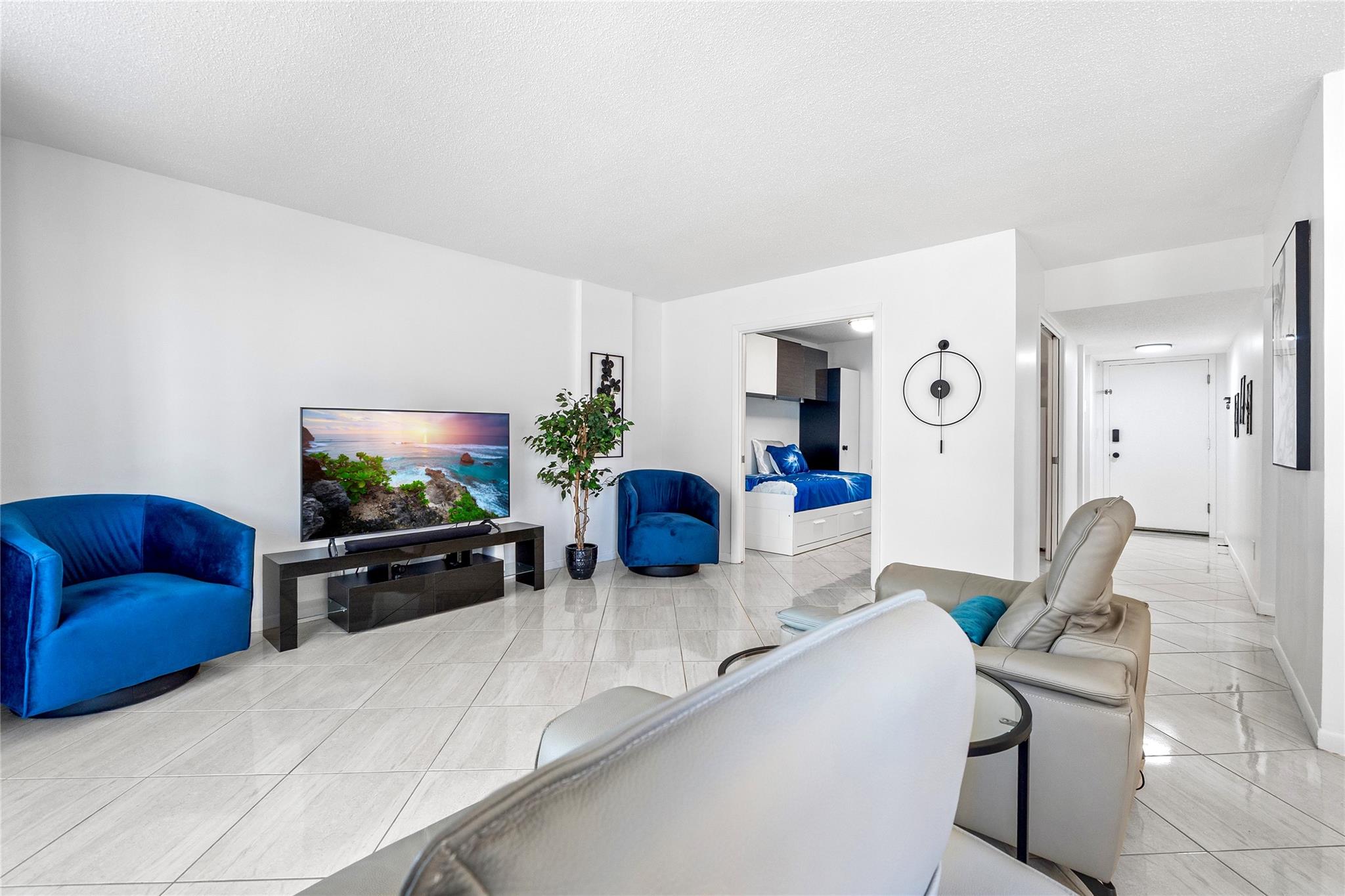 50 YEAR INSPECTION DONE AND NO ASSESSMENTS. Call this home or for a future investment. Steps from the beach, this fully renovated unit has a South-facing living space with partial ocean views and a functional layout. The unit features modern finishes, a fully updated kitchen, stylish bathrooms, ceramic tile flooring, and ample storage. This is a 1-bedroom and a den, which can be used as a second bedroom because it has a second king bed. Located in the well-maintained Plaza Towers South, residents have access to security, a gym, and a heated pool on the intercoastal. You are also steps from the beach and all the convenience stores. Enjoy low maintenance fees at $742/month. Comes fully furnished. Move-in ready! Bring your personal belongings, South Florida living has never been easier.