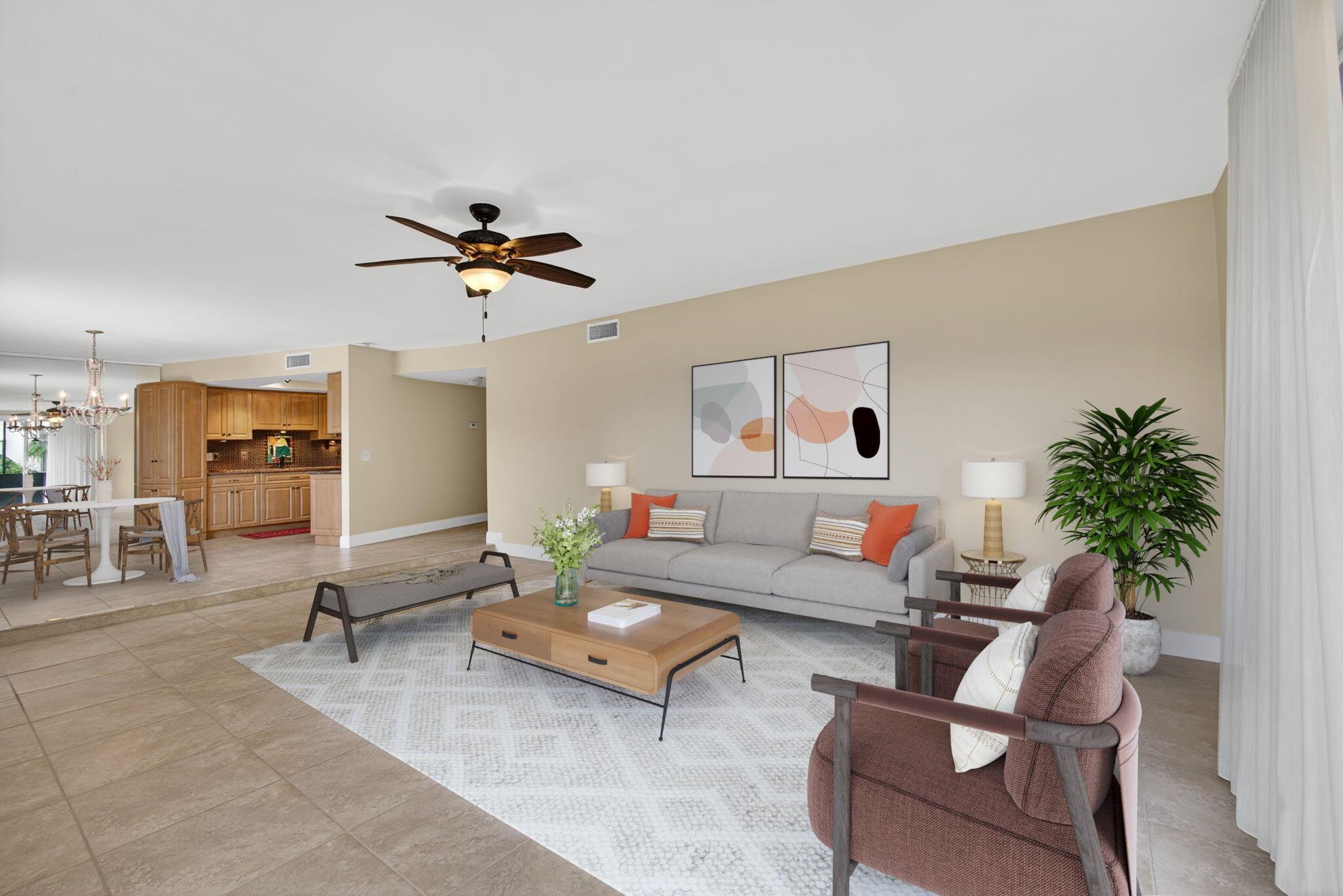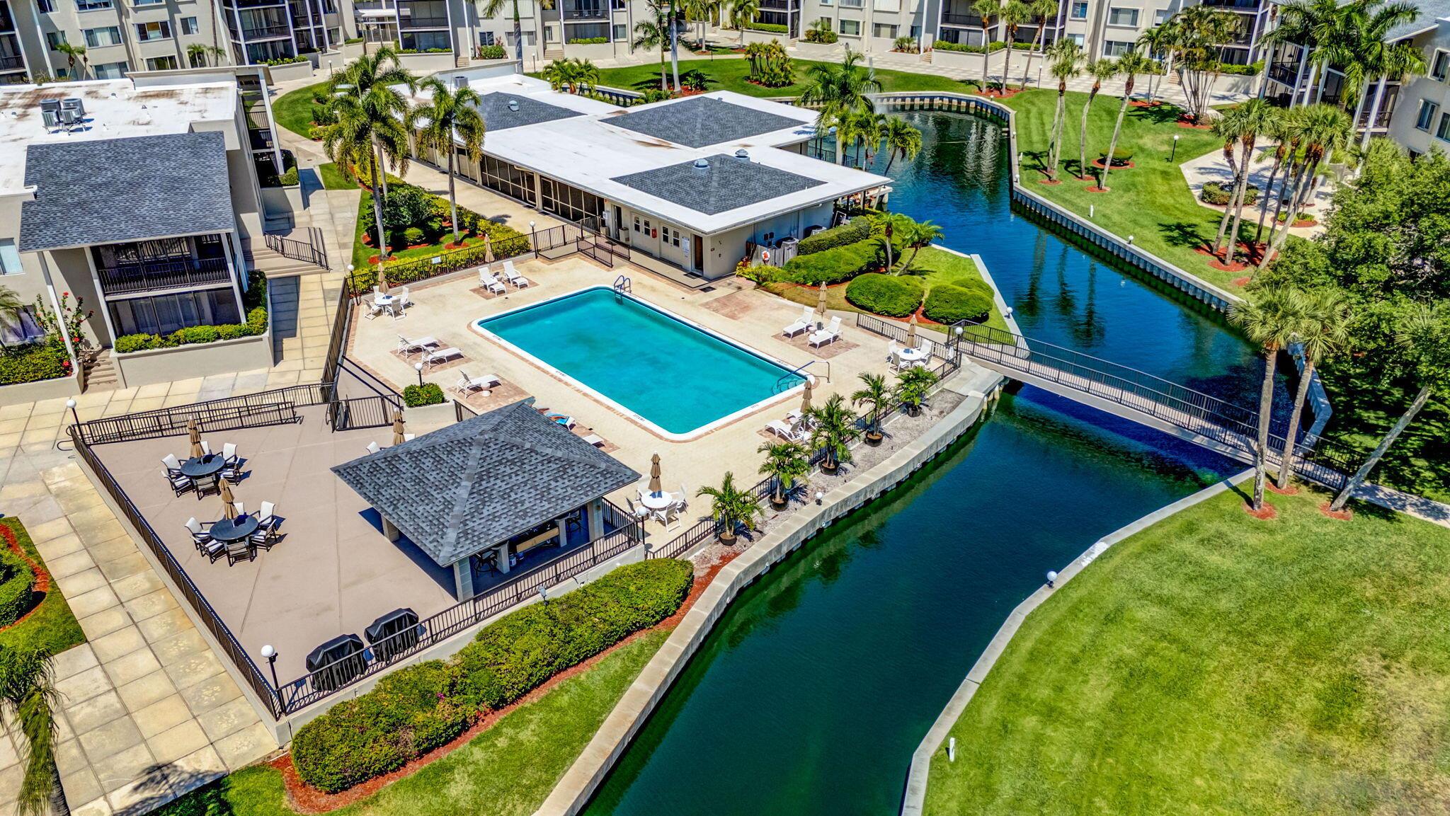LIGHT AND SPACIOUS, FIRST FLOOR CORNER UNIT IN POPULAR 55+ COMMUNITY OF LONGWOOD. COVERED AND SCREENED WRAP AROUND PATIO WITH VIEWS OF POOL AND LAGOON. UPDATED KITCHEN WITH HIGH END STAINLESS STEEL APPLIANCES, INCLUDING CONVECTION OVEN, OPEN TO DINING AND EXPANSIVE LIVING ROOM. NEUTRAL TILE FLOORS THROUGHOUT. WASHER AND DRYER INSIDE UNIT. BLINDS ON REMOTE AND BEAUTIFUL CUSTOM DRAPES. JETTED TUB IN PRIMARY BATH. A/C & WH 2017. LARGE STORAGE UNIT, COVERED DEEDED PARKING #24. LONGWOOD HAS BEEN COMPLETELY RENOVATED WITH NEW ROOFS. FRESHLY PAINTED. PERFECT LOCATION JUST OFF PGA BOULEVARD. GREAT DINING, SOME WITHIN WALKING DISTANCE AND CLOSE TO GOLF, MARINAS, BEACHES AND SHOPPING, INCLUDING THE GARDENS MALL. MINUTES TO PBI OR THE KRAVIS CENTER AND DOWNTOWN WEST PALM BEACH.
