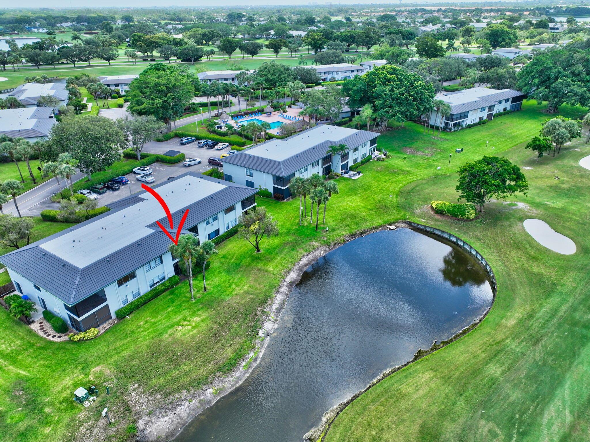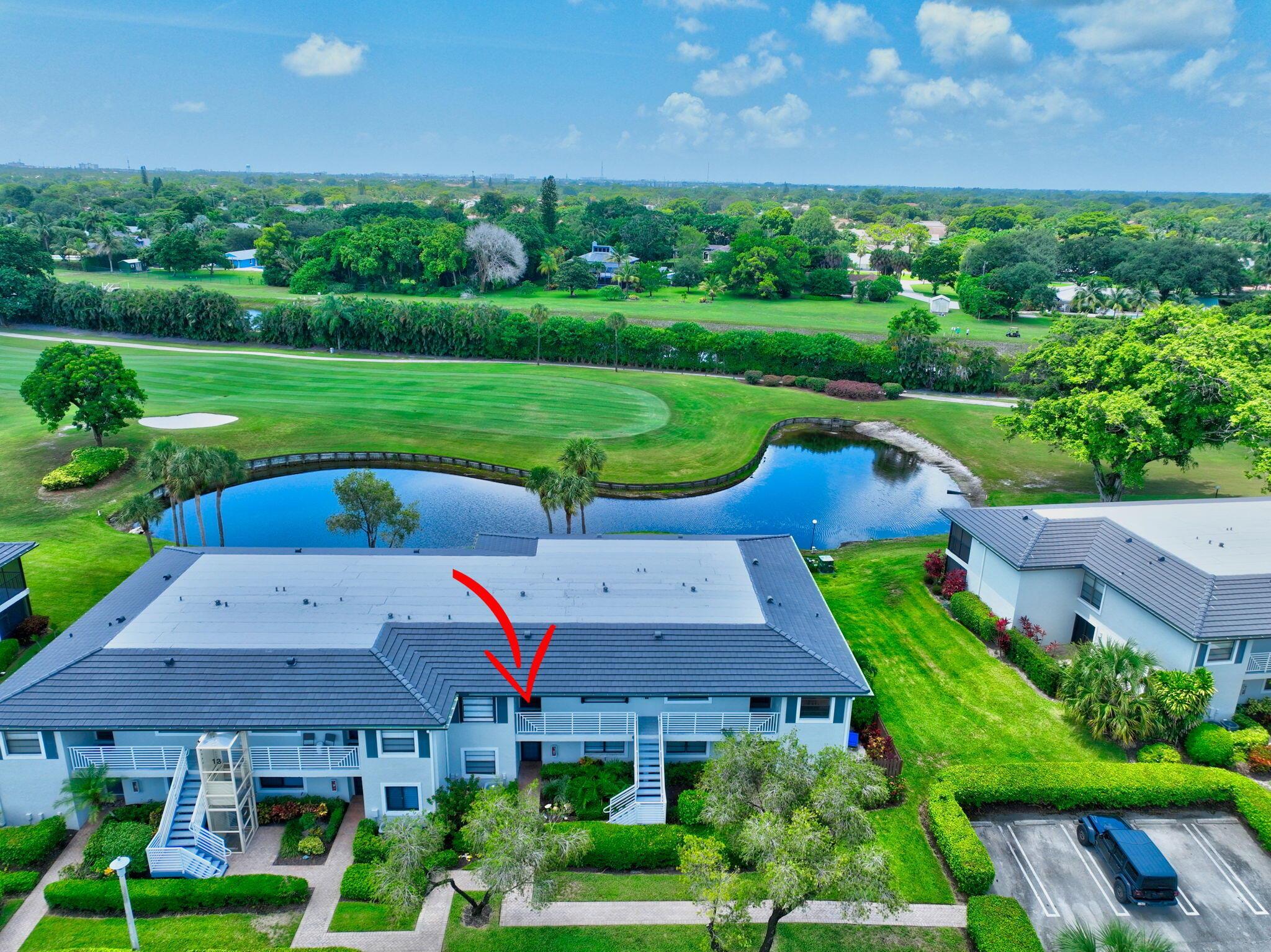 This is IT !! A beautifully maintained condo located in the highly sought-after Hunters Run Country Club. This spacious second-floor unit offers 2 bedrooms, 2 bathrooms, and an open-concept layout filled with natural light. The updated kitchen features large pass though ,stunning backsplash, granite countertops, stainless steel appliances, and ample cabinetry--perfect for cooking and entertaining. Primary En Suite boasts a new shower with River Rock Floor & Frameless shower door. Enjoy serene golf course and lake views from the screened-in lanai. BRAND NEW A/C.. AND YES.... YOU CAN OWN YOUR OWN GOLF CART ;-)