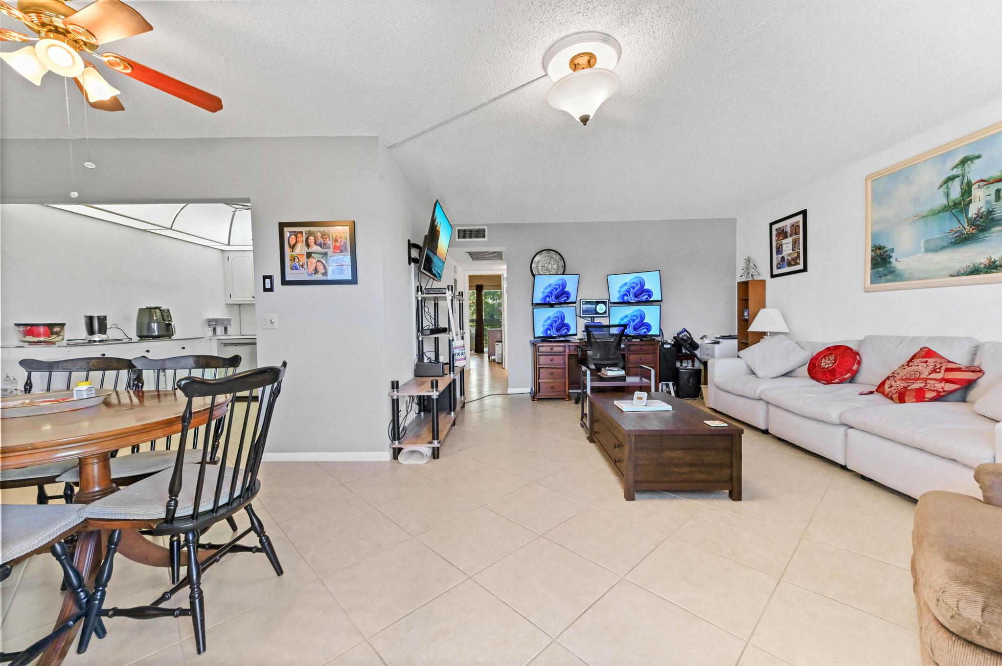 Beautiful 4th-Floor 2 Bedroom, 2 Bath Condo in Prime Location!Nestled in the heart of the Century Village East, this spacious condo offers peace and quiet, set away from road noise and just a short walk to the pool and clubhouse. The unit features large diagonal-set ceramic tile throughout, creating a bright and open feel from front to back.Offered fully furnished and move-in ready, the home includes a guest bathroom with a walk-in shower and glass doors. Step onto the enclosed patio with sliding glass windows and enjoy your morning coffee while taking in the tranquil garden views. A convenient community picnic area is located just outside, perfect for relaxing or entertaining guests.