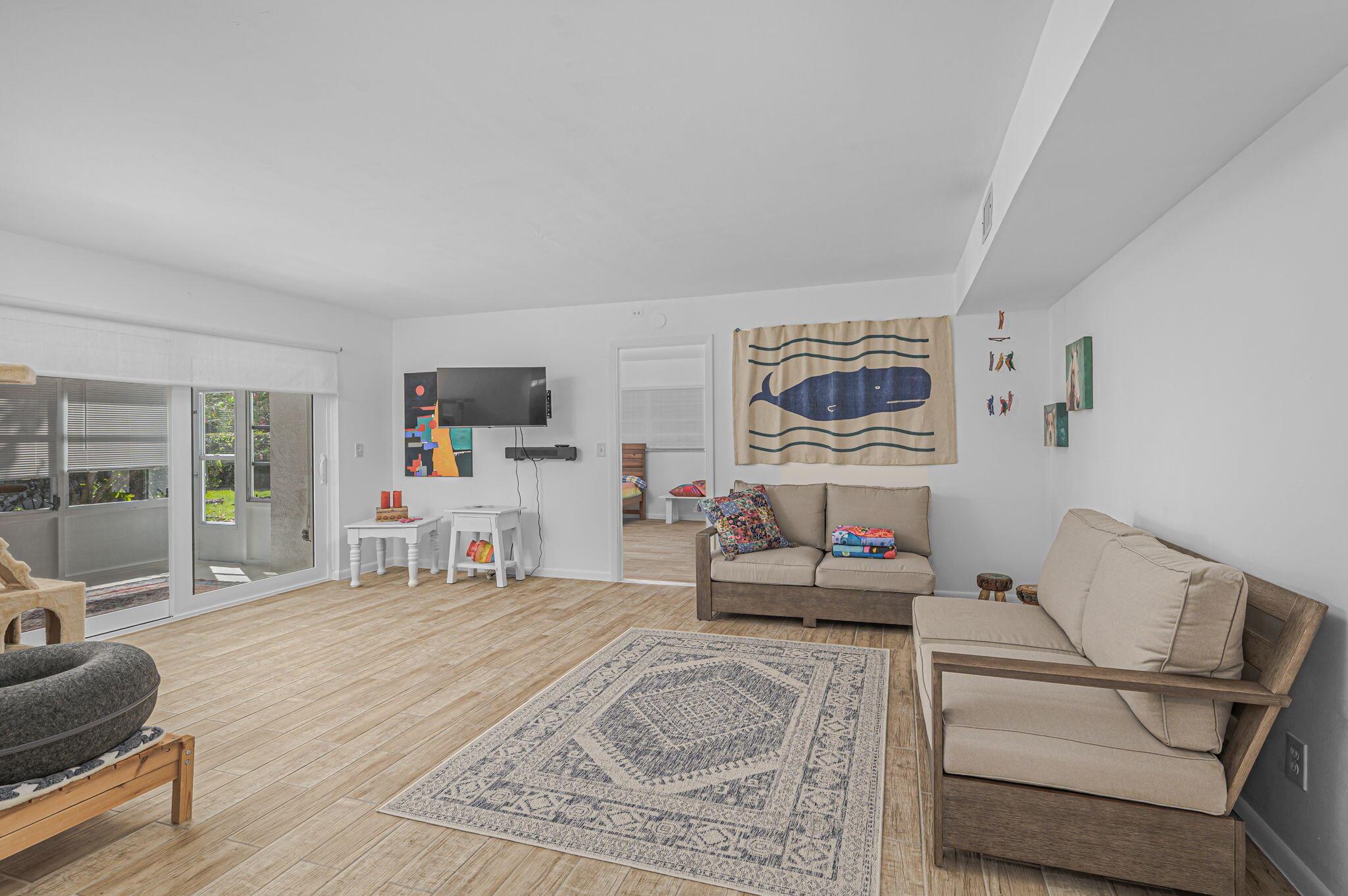 This first floor corner unit has been masterfully redesigned with style and utility in mind. This light and bright condo features an open floor plan with new flooring, kitchen and baths. Sliding glass doors, kitchen and bathrooms have impact windows. Knock-down ceiling texture, new appliances, new hot water heater and new roof.High Point is an active 55 plus community that offers tennis, pools, shuffleboard, clubhouse, classes, groups and beautifully maintained grounds. Water, sewer, cable and internet are included in maintenance fee.