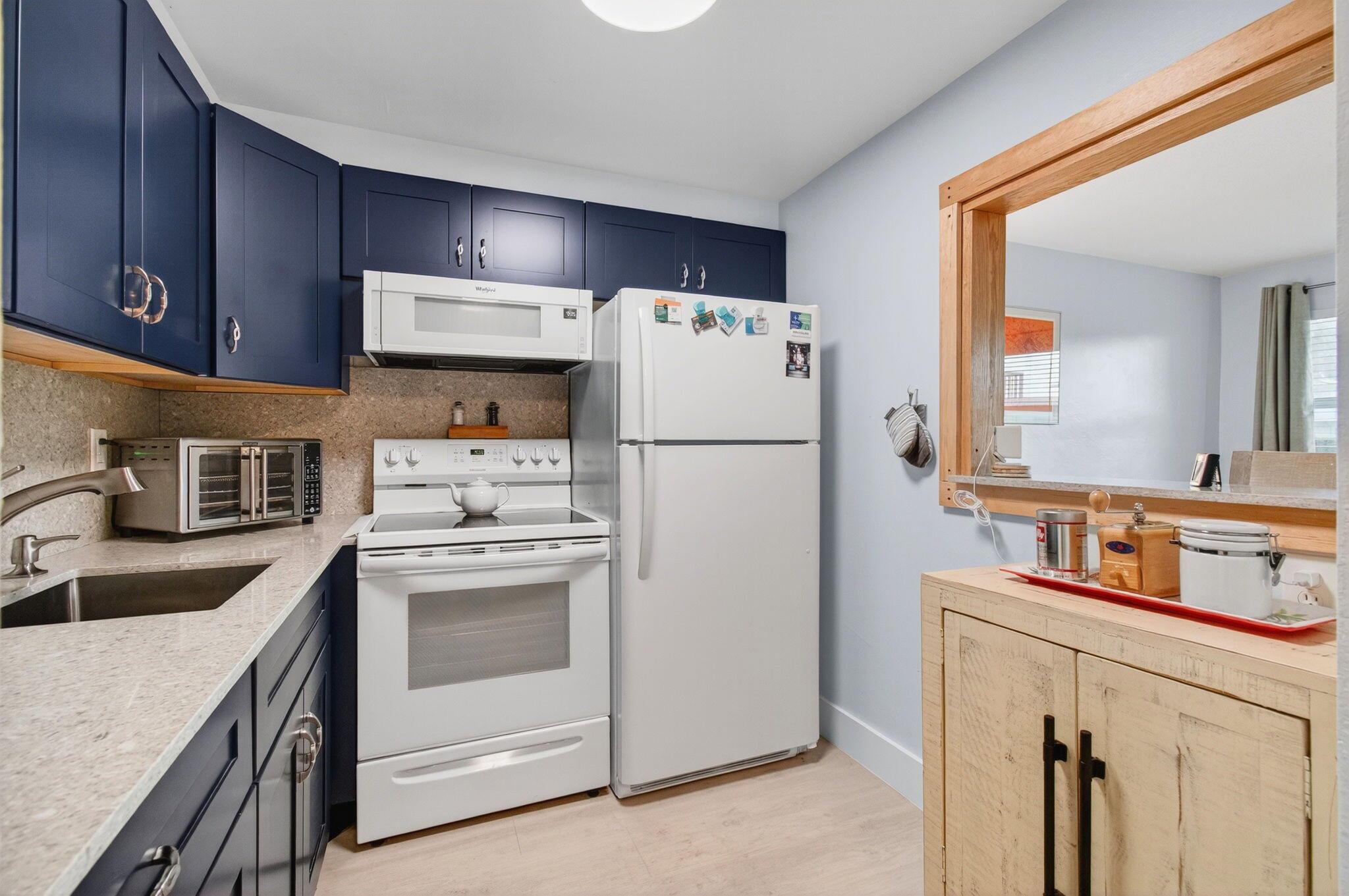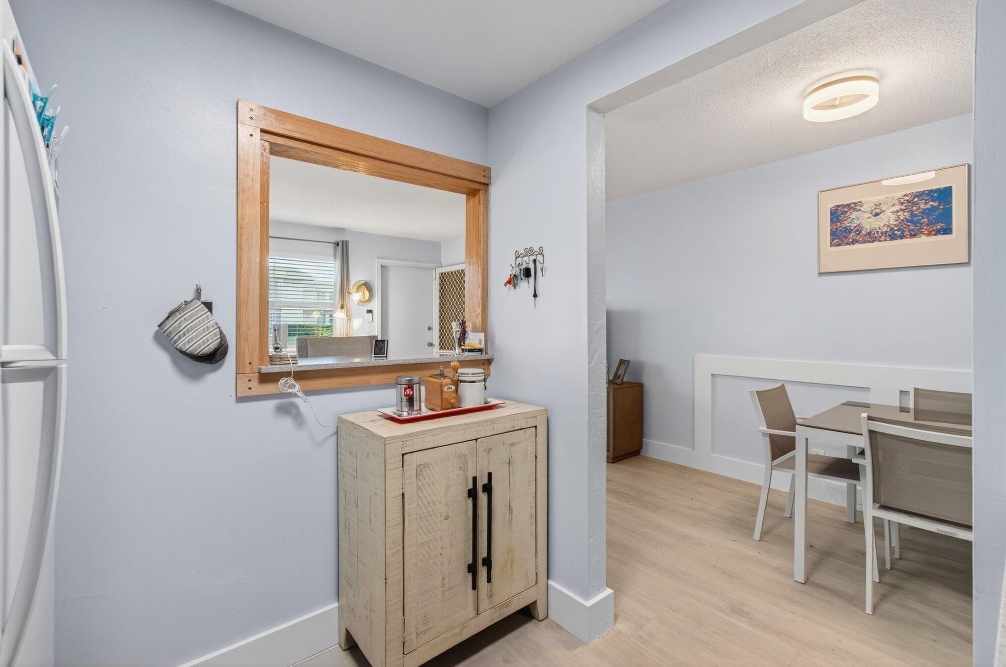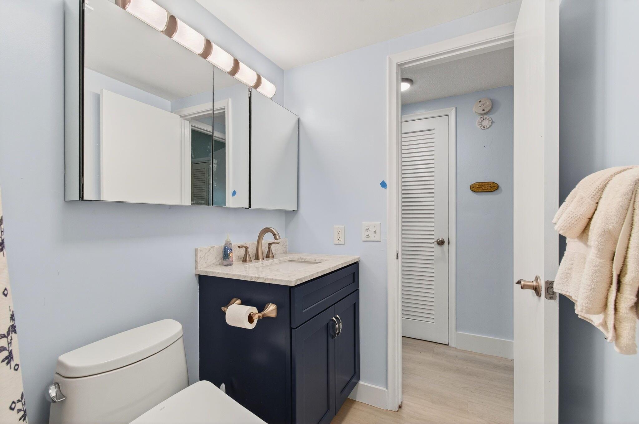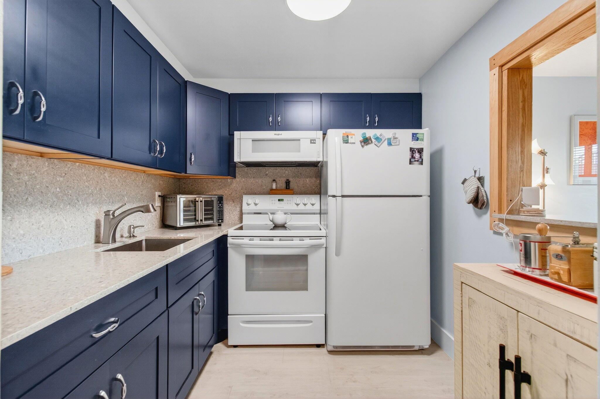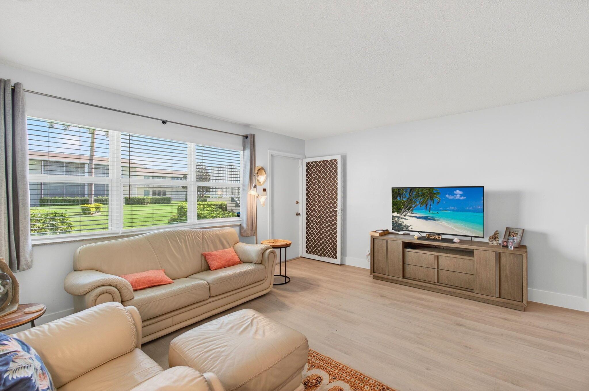 This condo has the most upgrades included for the newly reduced price! Experience everyday beauty in this turnkey, ground-floor condo, available fully furnished or unfurnished. Fully renovated, it boasts luxury vinyl flooring, quartz countertops, soft close drawers and cabinets, and the security of 2022 impact windows and sliding glass doors. The updated bathroom features an age-in-place shower for added convenience. Enjoy a spacious screened patio, perfect for dining and entertaining, with a serene garden view and a short stroll to the Intracoastal Waterway. Stay comfortable with two efficient 2023 mini-split A/C units. Sterling Village offers a newly renovated clubhouse, a secure gated entrance, a pool, putting green, bocce, and pickleball courts, and diverse recreational areas.