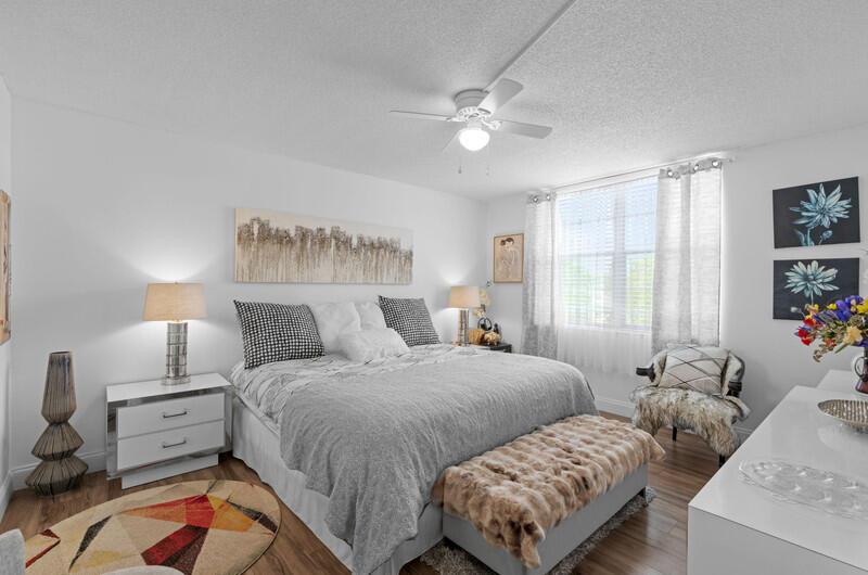 Discover this pristine, move-in ready 2/2 situated on the fourth floor of the highly desirable 55+ community of Cypress Chase -- offering peace of mind with no neighbors above and the most serene balcony view in the neighborhood. Gaze out over lush gardens, a sparkling pool, a peaceful canal, and a charming bridge from your private balcony, with sliding glass doors that fill the space with natural light.Inside, you'll find a spacious, bright layout featuring a generous dining and living area that is perfect for both relaxing and entertaining. The simple yet beautiful kitchen shines with white cabinetry, matching white appliances, a custom white backsplash, and rich, dark brown countertops that add a touch of warmth and sophistication. The master includes an en suite bathroom and...