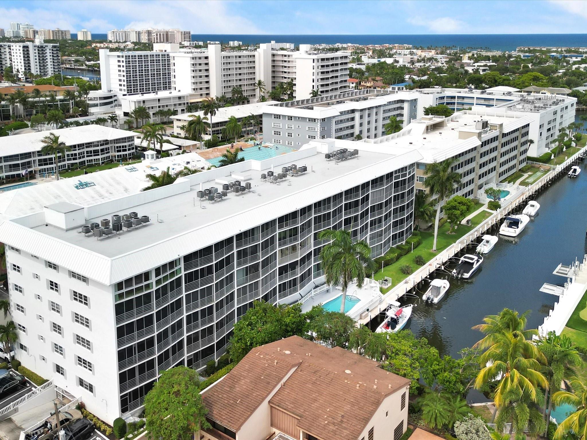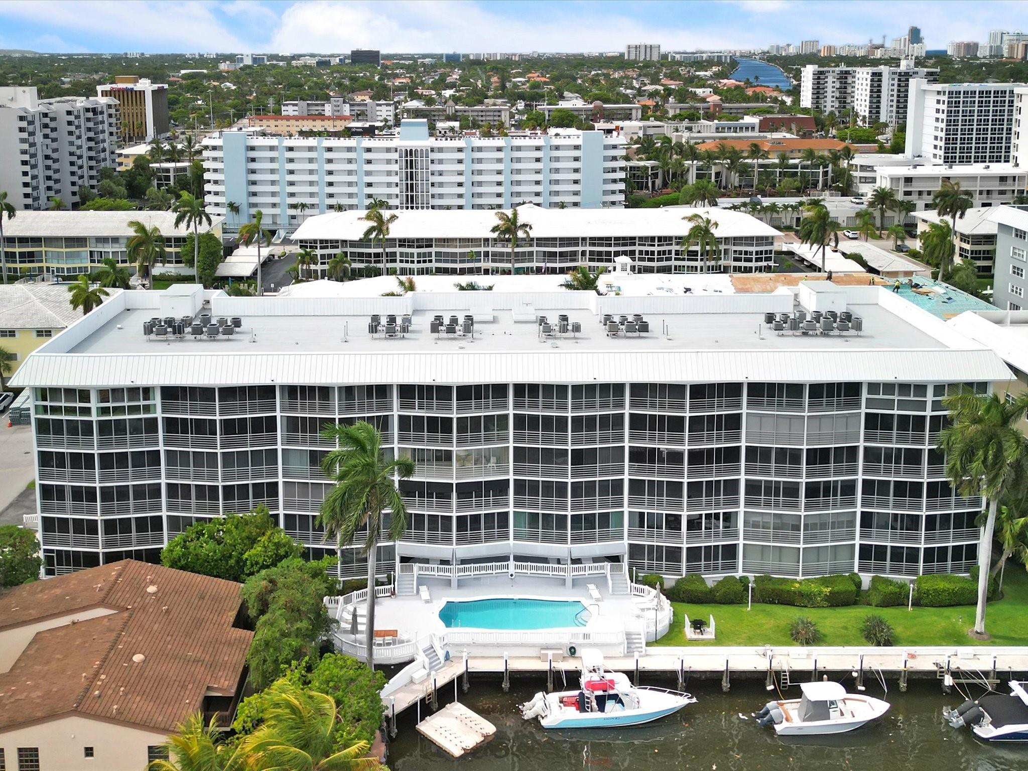 Enjoy the Ultimate in South Florida Resort-Style Living in this beautifully maintained 2BD / 2BTH waterfront condo. Featuring dual Primary Suites and stunning Southern water views, Winston House is just minutes from the beach, popular restaurants & shopping! This open concept home offers a bright, spacious layout w/ large impact windows that bathe the space in natural light. 1,481 sq. ft. of home seamlessly flows into your expansive patio, overlooking pool & water views. Your Primary Bedroom boasts an en-suite Bathroom, jacuzzi tub & walk-in closet. The 2nd Bedroom also has an en-suite bathroom. Winston House has healthy financials & a 2024 Roof. And after a great day on the water, boat to your amazing home & settle into your Dock Space (Spaces Available).