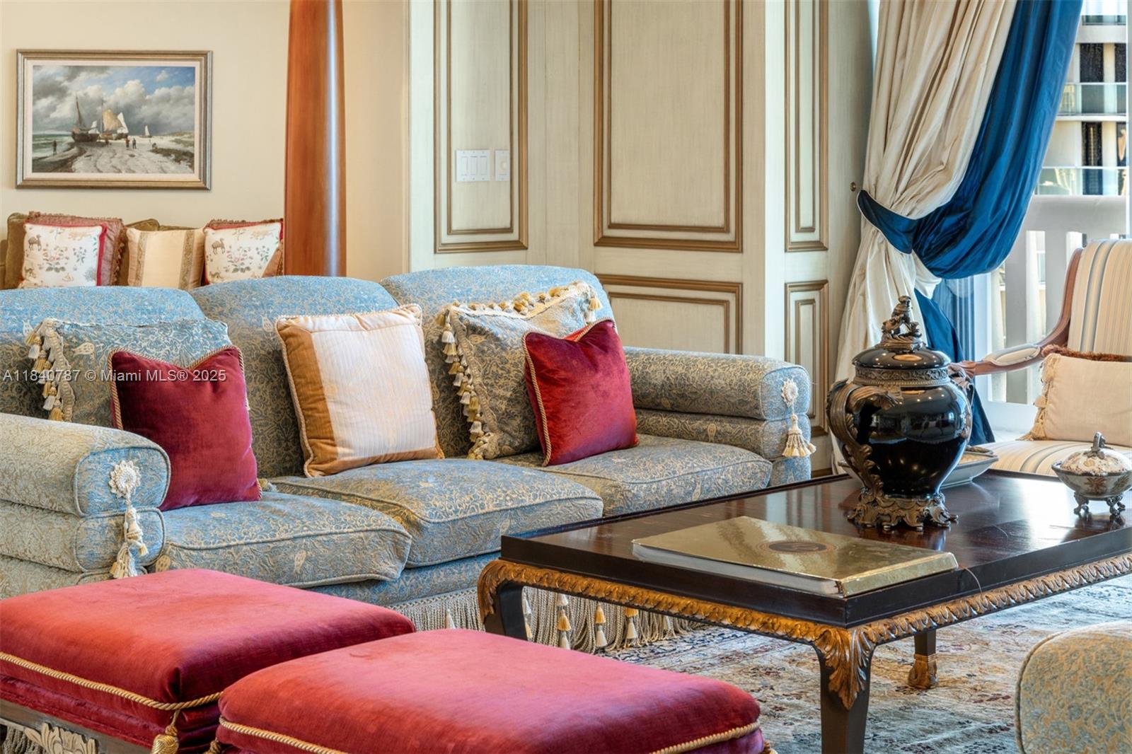 Residence 2902 at Williams Island. A fragment of Buckingham Palace rising above Miami — order, proportion, and tranquility. Everything here is handcrafted; nothing is generic or improvised. The entrance opens into a classical sequence of spaces: reception hall, formal dining room, music or reading lounge, private study, and an intimate kitchen designed for conversation. The wine cellar preserves memory and ritual. The primary suite, regal in scale, ensures silence and privacy; the remaining areas flow with balanced continuity, creating an atmosphere ideal for both living and entertaining. By day, the residence is bright and precise; by night, it becomes ceremonial and serene. A panoramic view of roughly 180° accompanies rather than competes — the focus remains on craftsmanship and the harmony of a grand home elevated in the sky. 2902 makes no display: it quietly asserts class in every detail and is ready to live in, flawlessly complete. Fully furnish price of $4,450,000