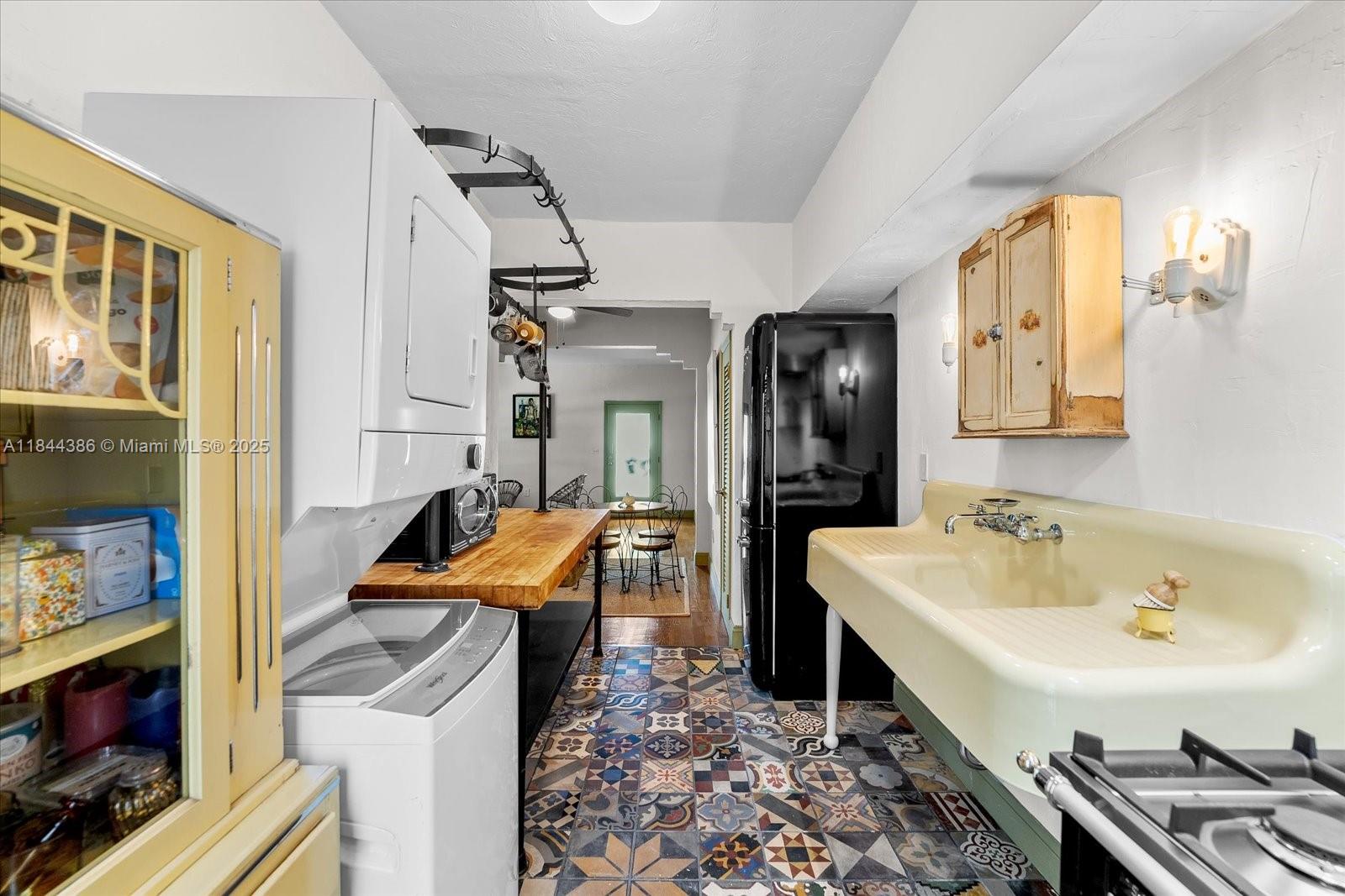 Step into vintage charm with modern flair in this SoBe Art Deco unit that looks straight out of a Hollywood film! The chef’s kitchen is a masterpiece with an Italian ILVE 5-burner stove, SMEG fridge, farmhouse porcelain sink and a butcher block workbench for the ultimate culinary experience. Relax in clawfoot tub with luxe chrome fixtures, surrounded by rare antique bath pieces sourced from the Berkshire Mountains. Some upgrades include new wood floors, door fixtures, new washer and dryer and fresh paint throughout. Best of all, it comes with one dedicated parking space. Located on the most beautiful, tree-lined block in SoBe, right across from the newly revamped multi-million dollar Flamingo Park and within walking distance to Lincoln Rd, shops, restaurants and beaches.