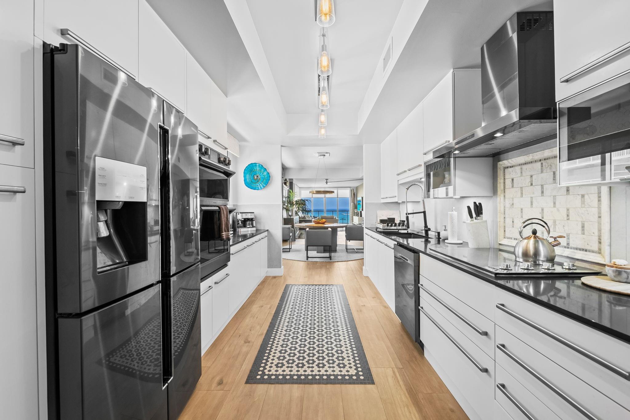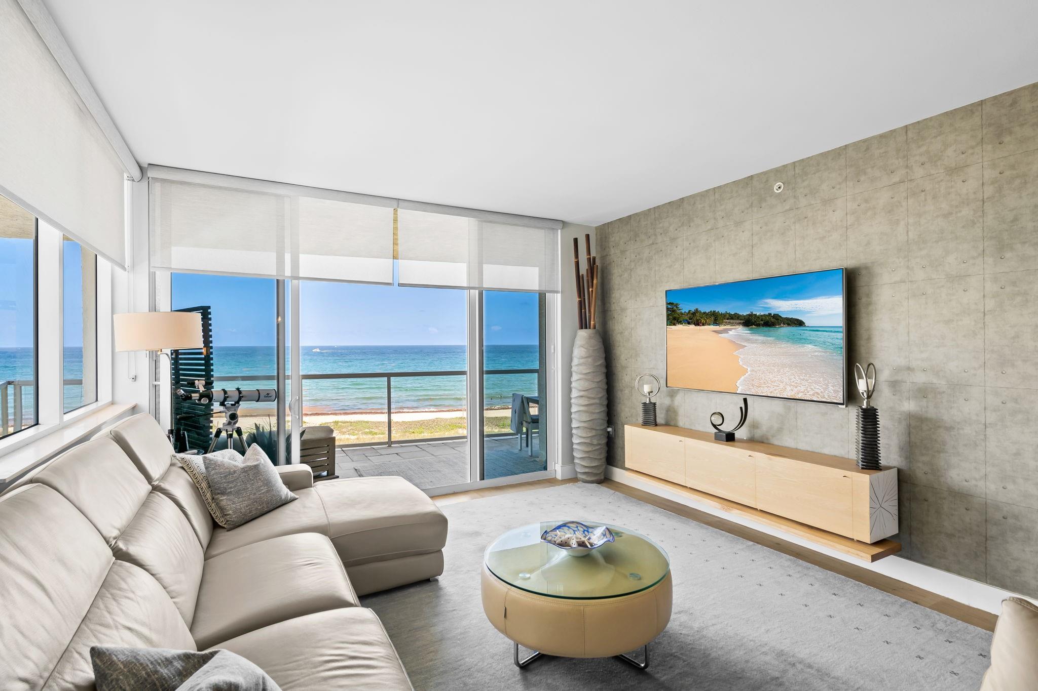 Unique private boutique oceanfront 32 unit Condominium. Quiet and highly secure building offering valet services, gym, pool, jacuzzi. This residence is a rare find with private elevator into your private foyer. This designer 2600 sq ft 3 bedroom 2.5 bath corner unit is situated on the Atlantic Ocean with expansive balconies offering a spectacular direct ocean and city views. Split floor plan with 2 master bedrooms the 3rd a designated office. Spa like feel with many designer touches including private foyer with fountains upon entering, soaking bathtub with ocean views, Viking stove and high end appliance package, remote window treatments, whole condo water filtration system. Location, location, location! Walking distance to oceanfront restaurants, pier and more!