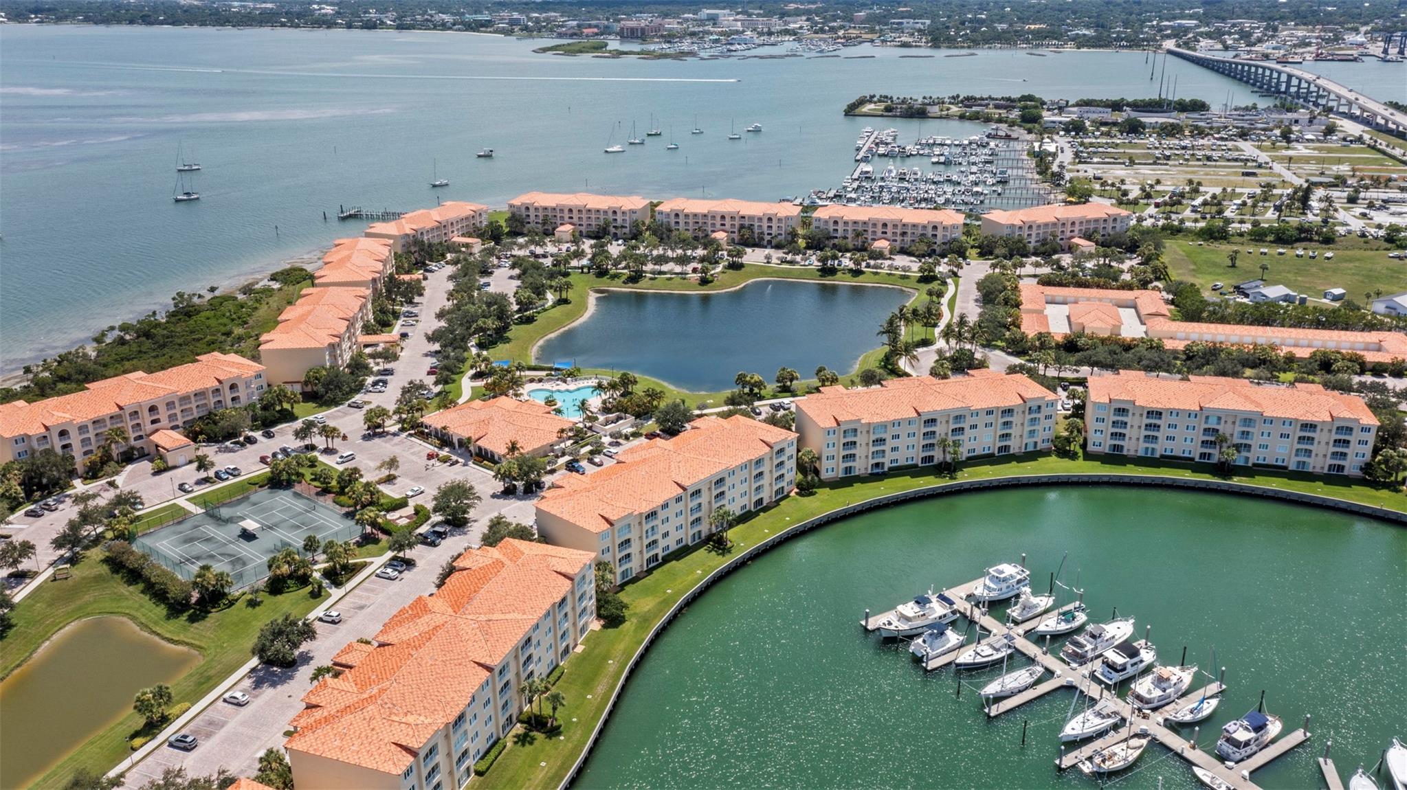 Experience contemporary coastal design in this corner penthouse condo w/ the best marina view in Harbour Isle. Not only do you see the marina, you also see the inlet & ships coming in from sea. This home blends sophistication w/ comfort & modern enthusiasts will love the brand new furnishings along w/ the pristine light carpet. Location doesn't get better as bldg 14 is directly across from the clubhouse/pool/gym & extra guest parking. Harbour isle is constructed w/ poured concrete walls, hurricane rated windows/doors, high ceilings, open floorplans, flex room off laundry room for office/add'l sleeping, 24-hour security guard, & outstanding amenities including b'ful pool, gym, walking paths, clubroom, etc. Enjoy walking to fun restaurants, farmers market, & the inlet. Furry friends welcome!