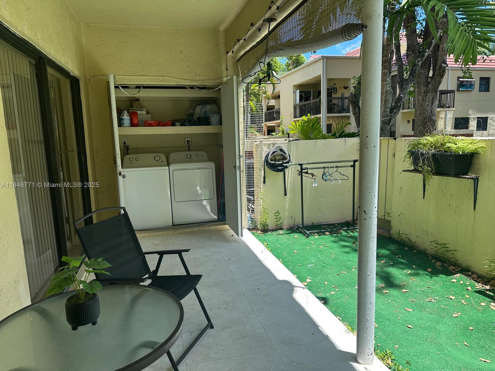 Beautiful and spacious 3-bed, 2-bath ground-floor villa featuring a private front and rear patio, ideal for outdoor enjoyment. The modern kitchen offers stainless steel appliances, granite counters, and ample cabinet space. Enjoy an open dining area with high ceilings and natural light. The primary suite includes a large vanity area, walk-in closet, and updated bath with a spa-style tub and rainfall showerhead. The second bathroom is tastefully remodeled. Full-size washer and dryer conveniently located in the covered rear patio. Tile flooring throughout. Gated entry, well-maintained community. Move-in ready and perfect for comfortable living!