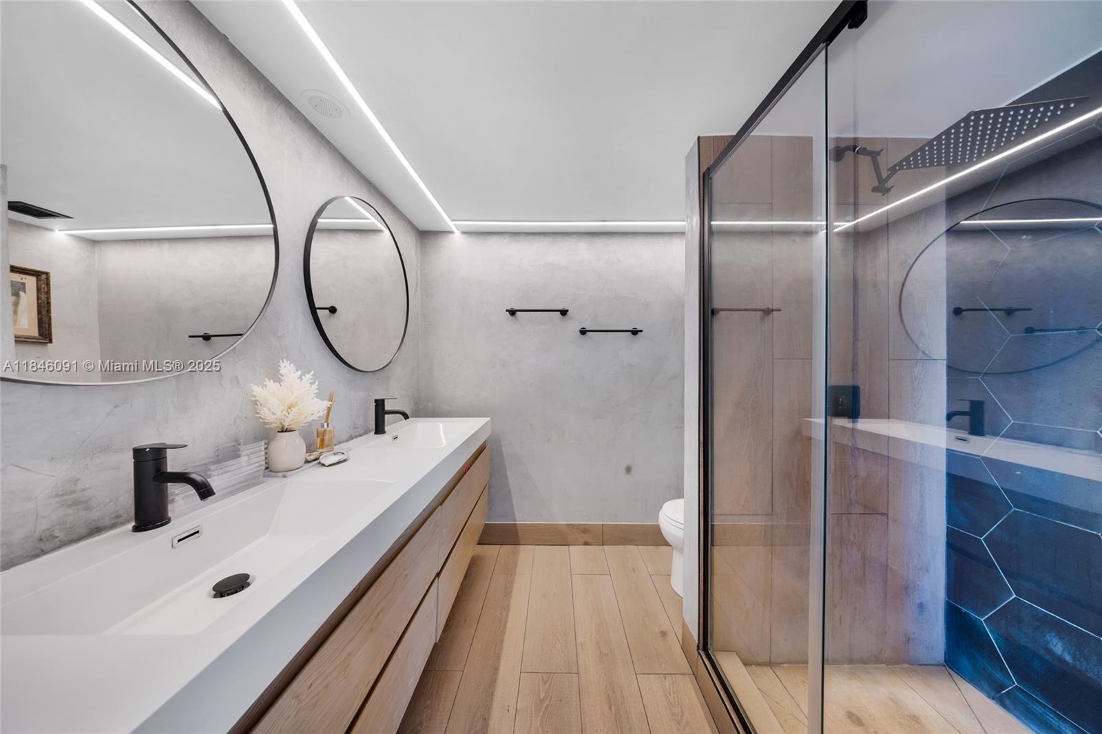 Experience breathtaking southeast water views from every window in this beautifully updated 2 bedroom, 2 bathroom condo with an office. Situated on the 15th floor, this corner unit showcases sweeping views of Bal Harbour, Surfside, Miami Beach & Downtown Miami. Recently renovated, it is move-in ready with a sleek open-concept kitchen featuring brand-new cabinets, waterfall countertops & high-end appliances. Every space has been re-modeled including the kitchen, flooring, bathrooms & balcony. Offered fully furnished with custom-designed pieces, this home is enhanced with smart LED lighting, a smart AC system & state-of-the-art appliances. Unwind on your spacious balcony while admiring the luxury estates of Keystone Islands and the scenic coastline of Bal Harbour, Surfside & Miami Beach.