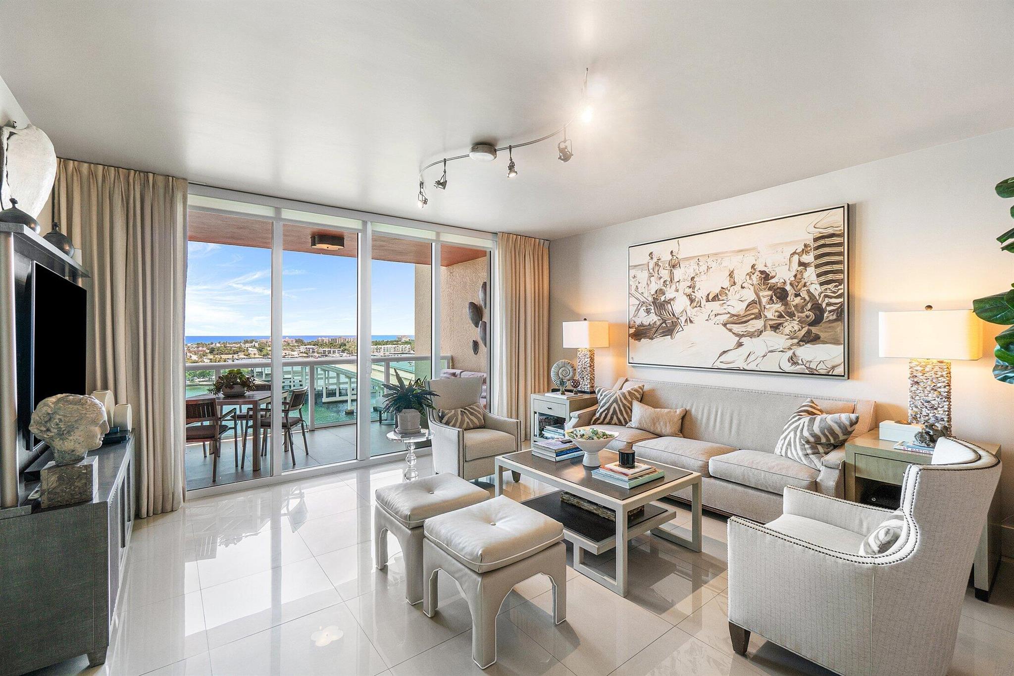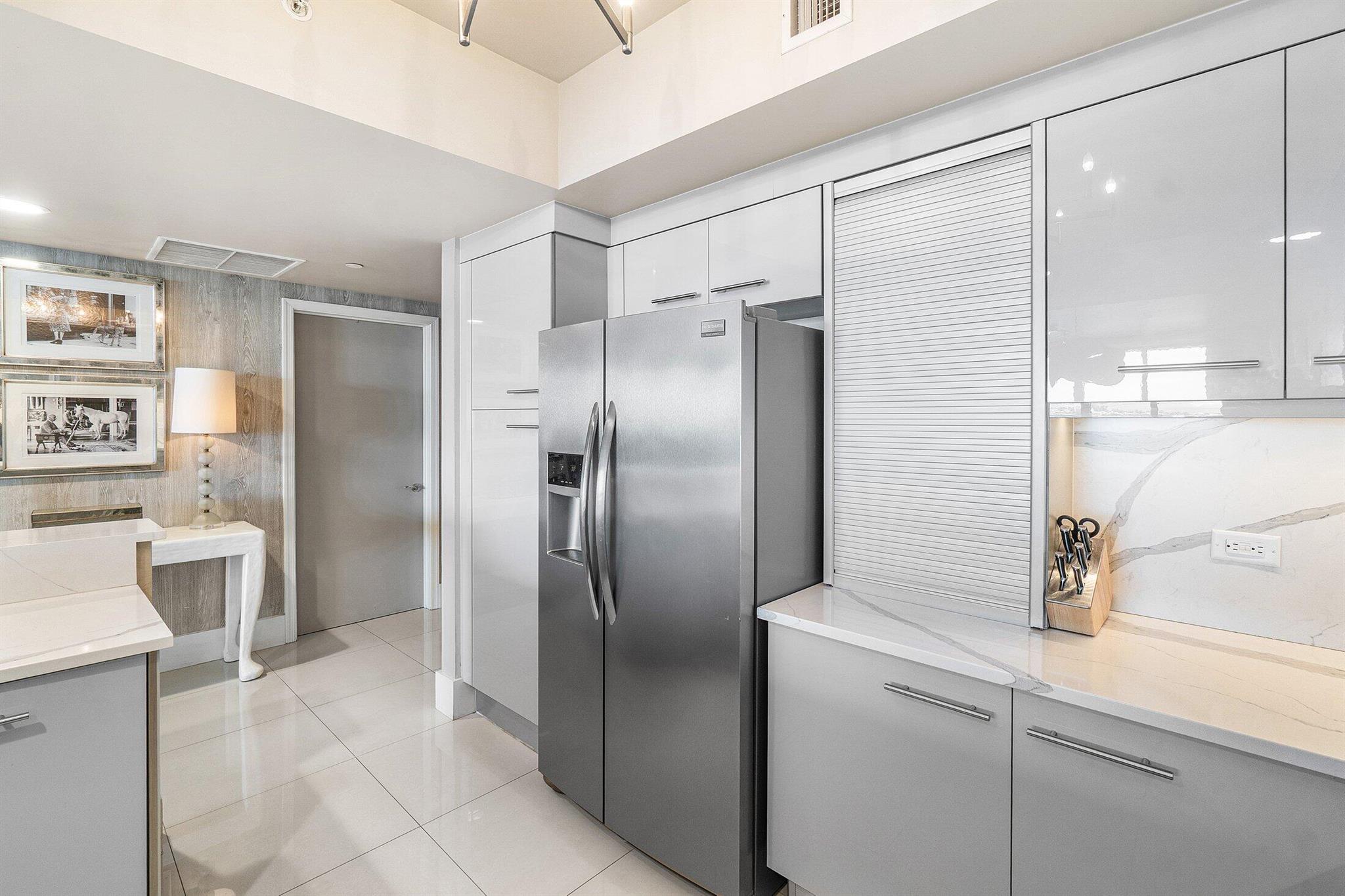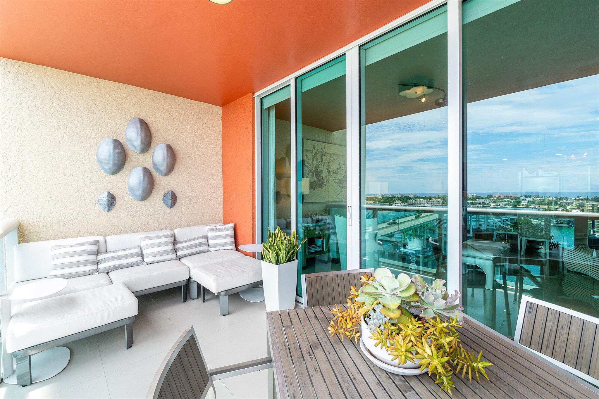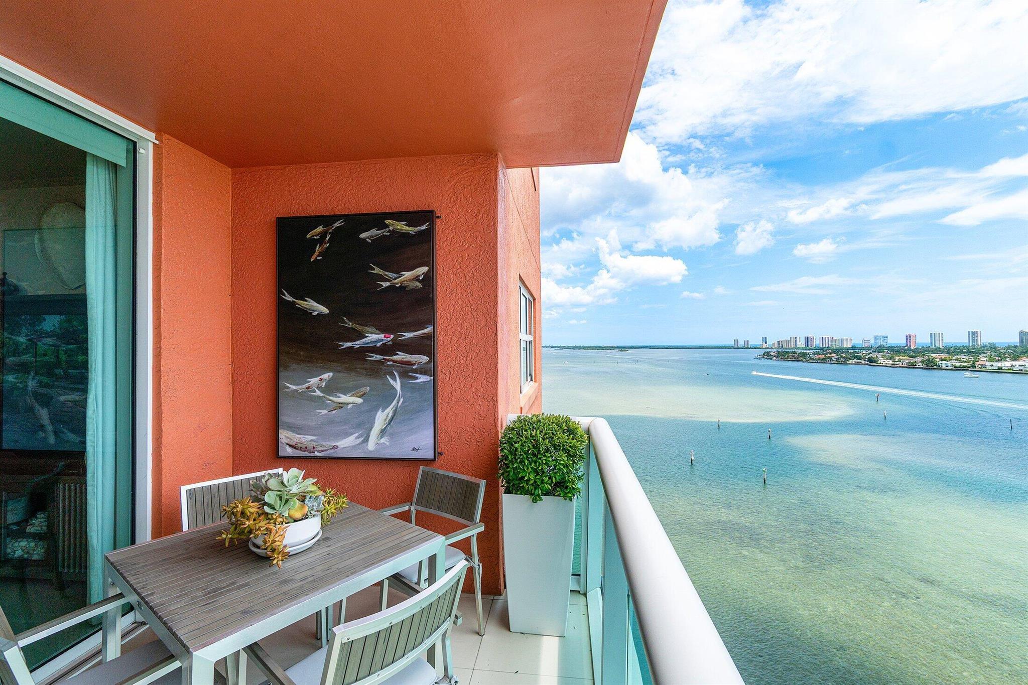 Amazing panoramic views from 14th floor, direct east facing Intracoastal & ocean view! Extensive remodel w/ high end finishes ... imported wallpaper, quartz kitchen, porcelain tile floors throughout living areas, fabulous redesigned primary bath w custom linen closet. Split floor plan, 2BR, 2.5BA, oversized showers, wool carpet in bedrooms, California closets, stacked new full size LG washer & dryer. Assigned parking, temperature controlled storage, 24/7 manned gate, valet, tennis, pickleball, Bocce, waterfront walking path w/gazebo, rooftop oasis w/pool, spa, BBQ areas, clubhouse, billiard room & fitness center. Adjacent marina w/dry docks, nearby ocean access, no fixed bridges! Minutes to the Beach, Airport, Restaurants & Shop