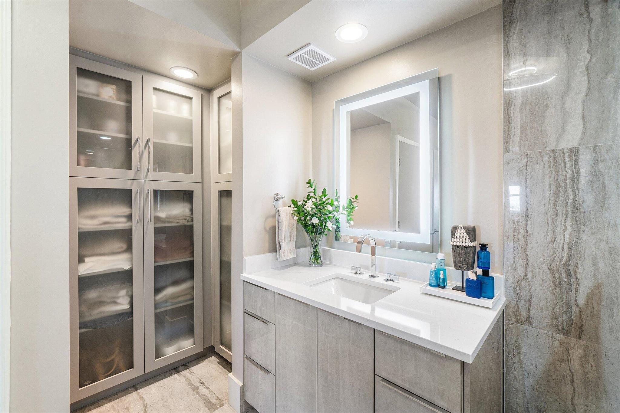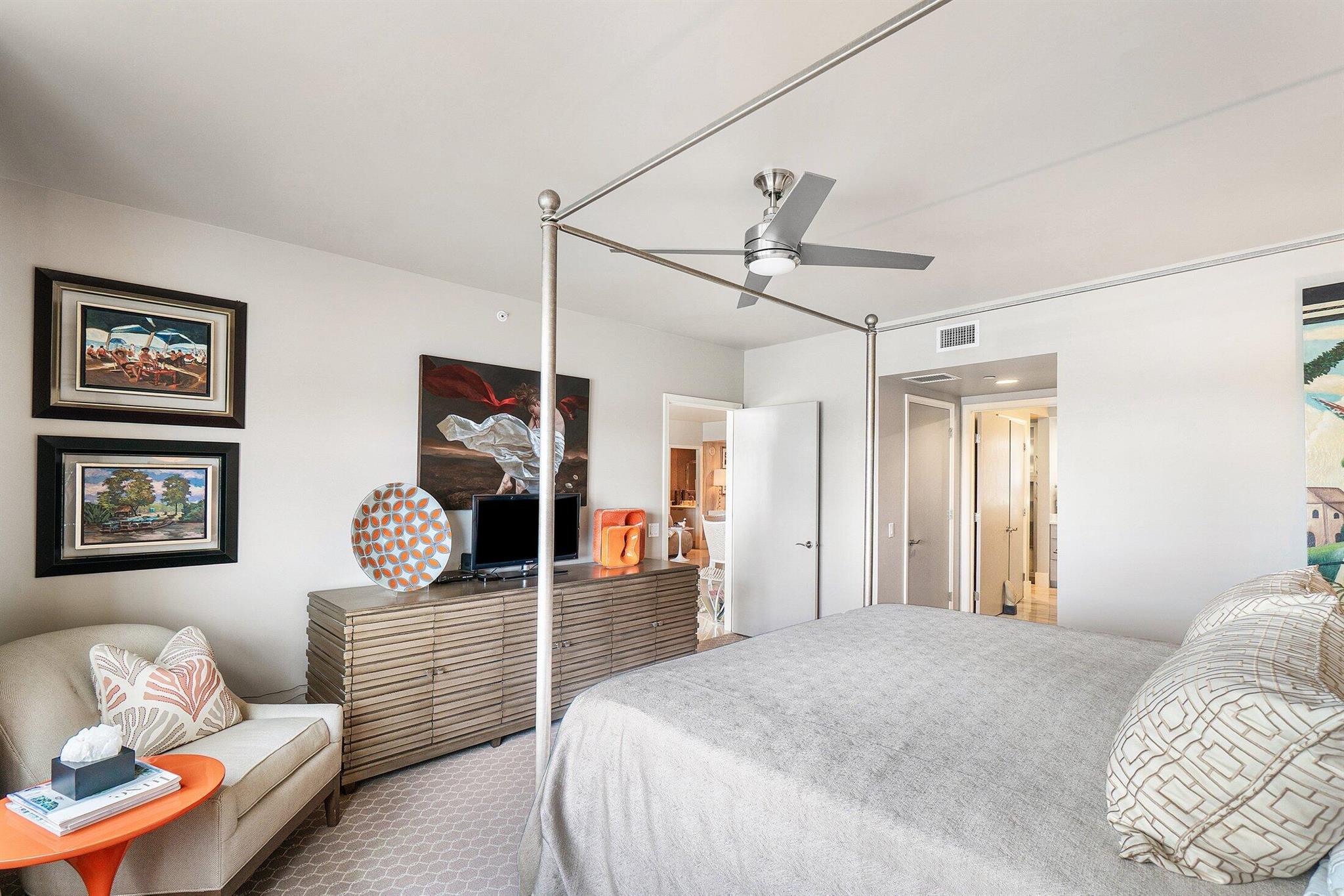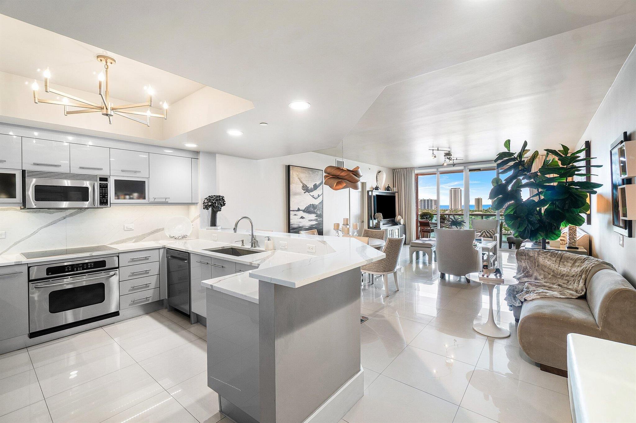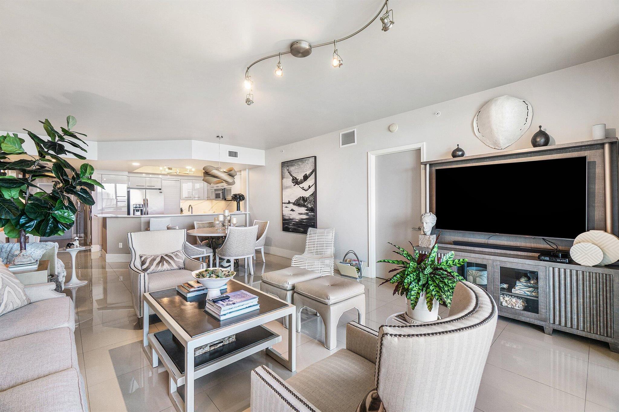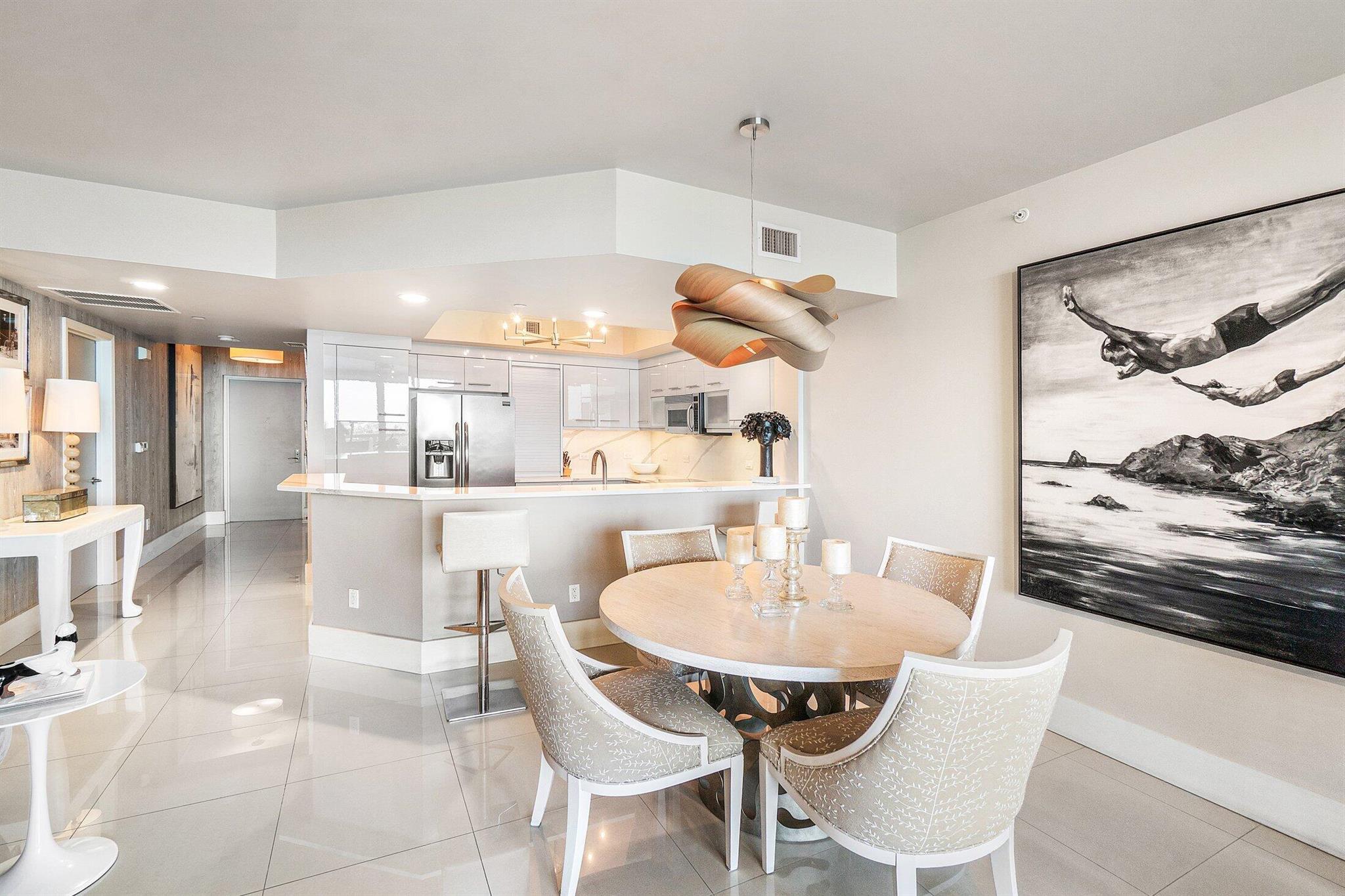 Amazing panoramic views from 14th floor, direct east facing Intracoastal & ocean view! Extensive remodel w/ high end finishes ... imported wallpaper, quartz kitchen, porcelain tile floors throughout living areas, fabulous redesigned primary bath w custom linen closet. Split floor plan, 2BR, 2.5BA, oversized showers, wool carpet in bedrooms, California closets, stacked new full size LG washer & dryer. Assigned parking, temperature controlled storage, 24/7 manned gate, valet, tennis, pickleball, Bocce, waterfront walking path w/gazebo, rooftop oasis w/pool, spa, BBQ areas, clubhouse, billiard room & fitness center. Adjacent marina w/dry docks, nearby ocean access, no fixed bridges! Minutes to the Beach, Airport, Restaurants & Shop