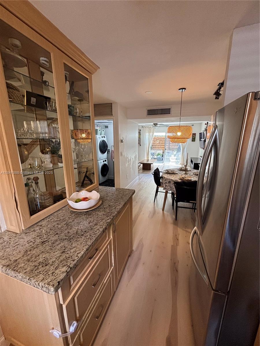 Move-in ready paradise! Spacious, and beautifully updated 2 story ,2 oversized bedrooms/1,5 bath corner unit. Bright and spacious layout on the main floor with private fenced patio. In-unit new washer and dryer. On the second floor, two generously sized, sunlit bedrooms await, each with ample closet space. Desirable gated community of Racquet Club offers pool, tennis courts, gym, game room, convenient parking. Just minutes from the beaches, downtown Fort Lauderdale, shops and restaurants in Wilton Manors. Water, sewer, garbage removal and pest control included in the maintenance. The Milestone Reports, Structural Integrity Reserve Study(SIRS )and Certification are completed and Incorporated into the 2025 Budget. No special assessments!