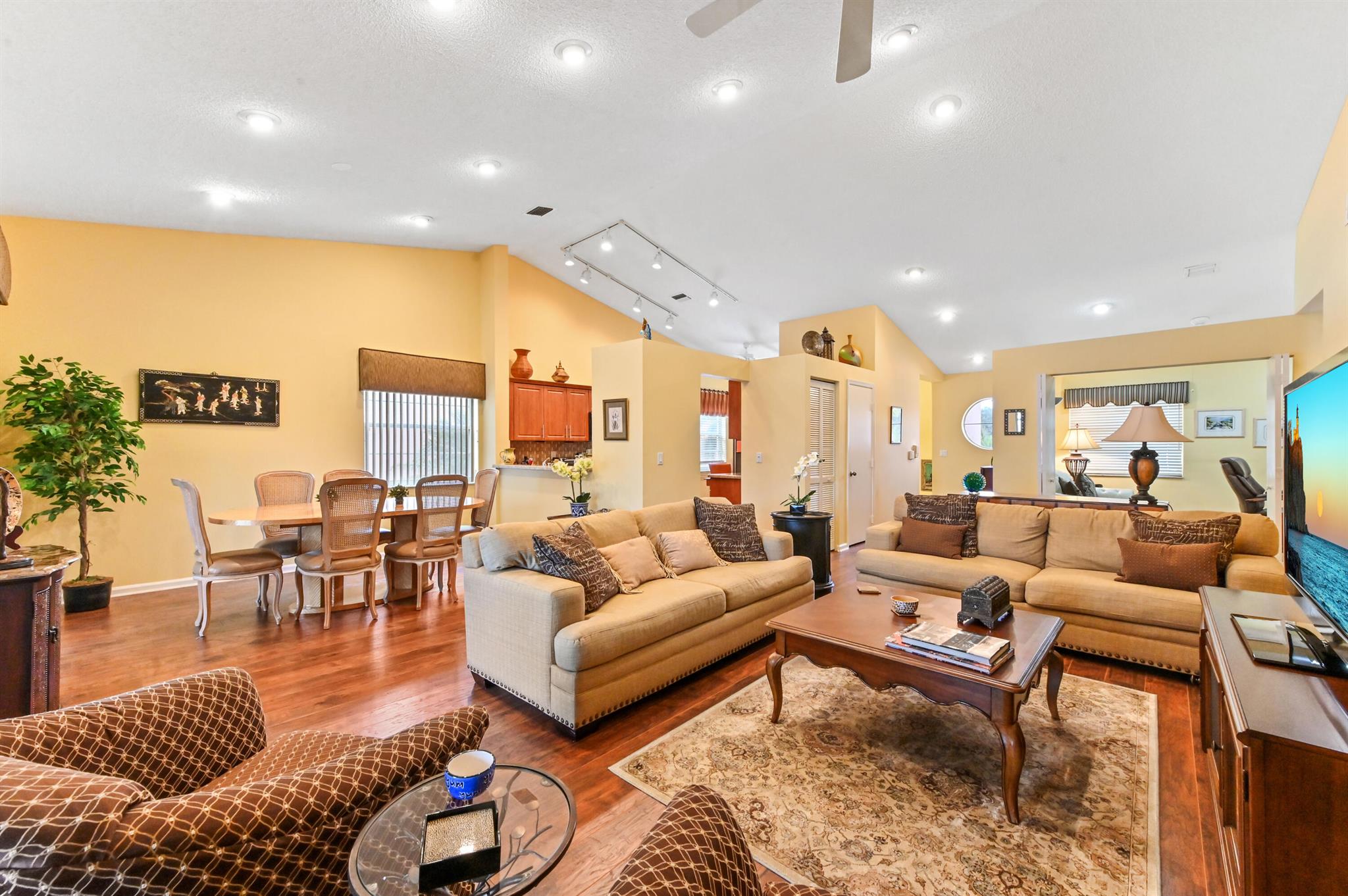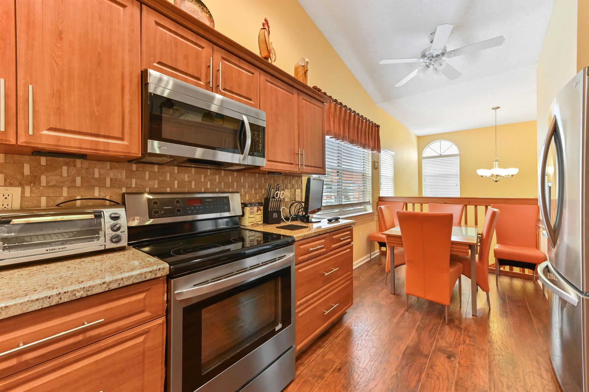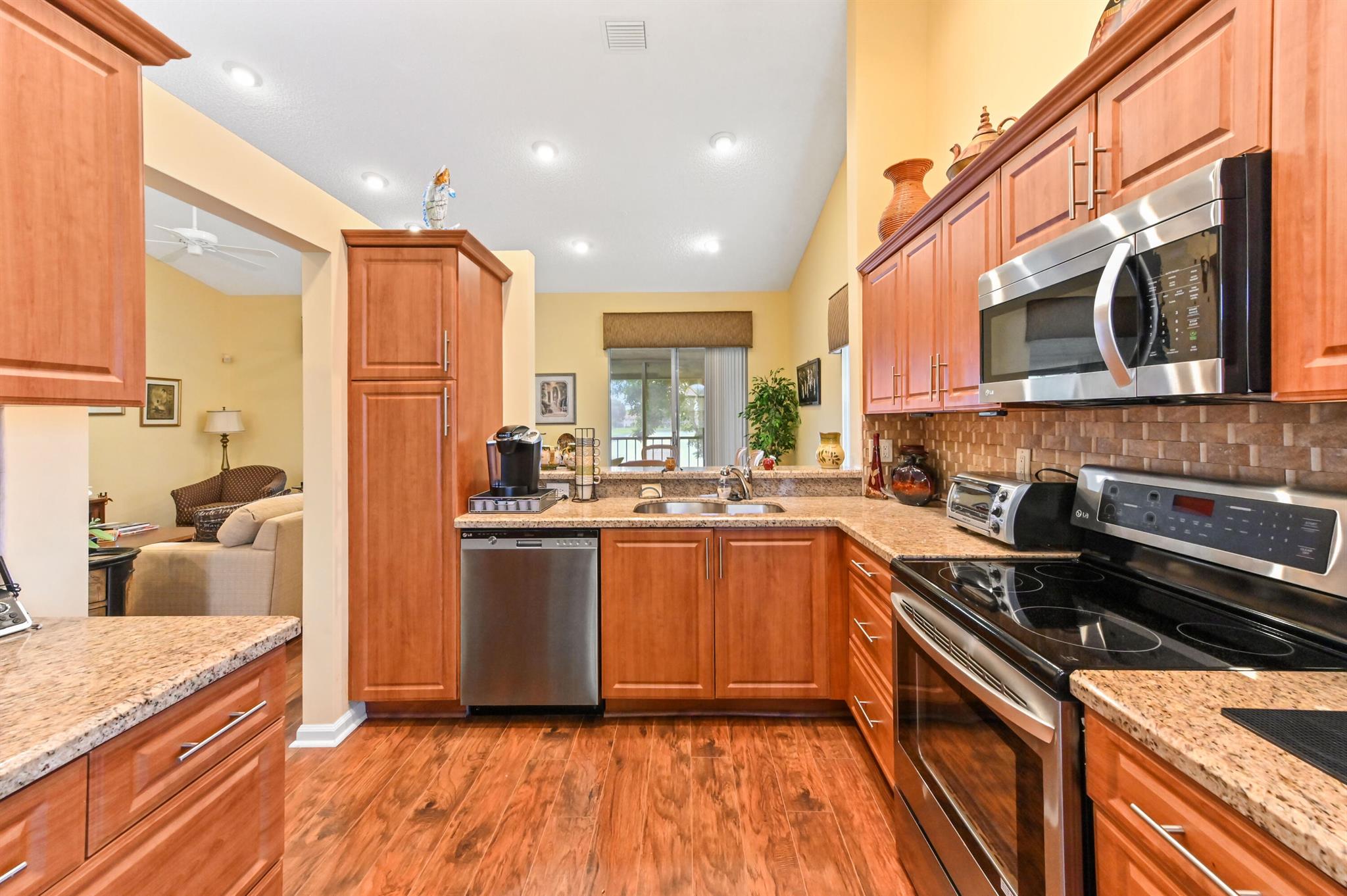 Welcome to serene, easy living at 9553 Shadybrook Drive, a beautifully appointed coach home situated in the active adult community of Palm Isles, Boynton Beach, FL. Experience the allure of a lifestyle marked by a tranquil ambiance combined with the vibrancy of Palm Isles. As you step into the second-floor home, captivating vaulted ceilings greet you. The space is uplifting, with an expressive openness that invites natural light in, fills the surroundings with supreme brightness. Adding to your comfort and convenience, a dedicated laundry section streamlines your daily chores. A splendid revelation inside this home is its chef's dream kitchen. Designed in an elegant open-concept layout, the gourmet kitchen boasts stainless steel appliances that enhance culinary creativity.
