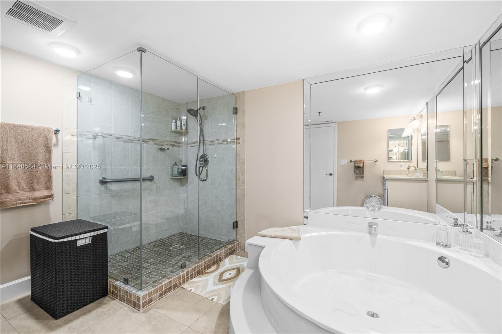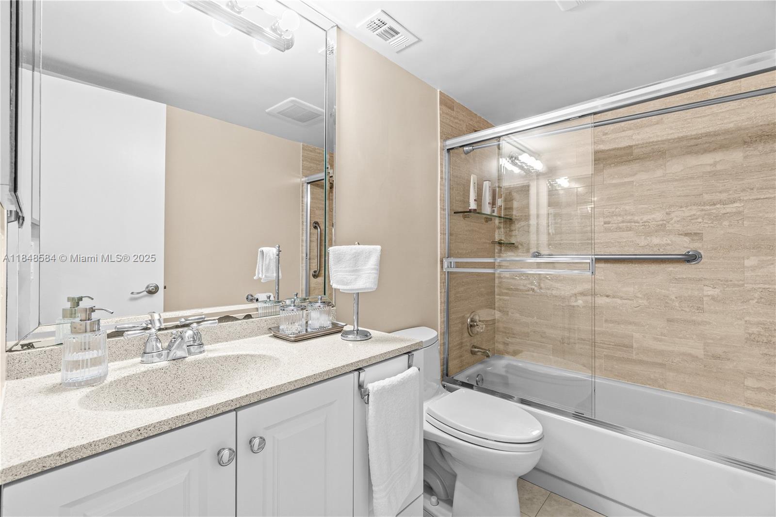 A rare opportunity to purchase a pristine, Brittany designed condo in Boca Pointe with porcelain tiles floors throughout the unit. It has 3 bedrooms and 2 ½ baths, lovely kitchen and sizeable living and dining rooms. Patio was enclosed in 2014 (added 100+sqft). Spacious Master suite with large bathroom and a fabulous closet space. The second room is also a suite. The third bedroom has barn doors; it can be used as an office or a den. Gorgeous views of the golf course. The unit is storm protected by impact windows, impact doors at the patio and shutters at the balcony. Covered parking space is very close to the front door. Condominium pool, card rooms and Boca Pointe Golf Course and Club within walking distance.