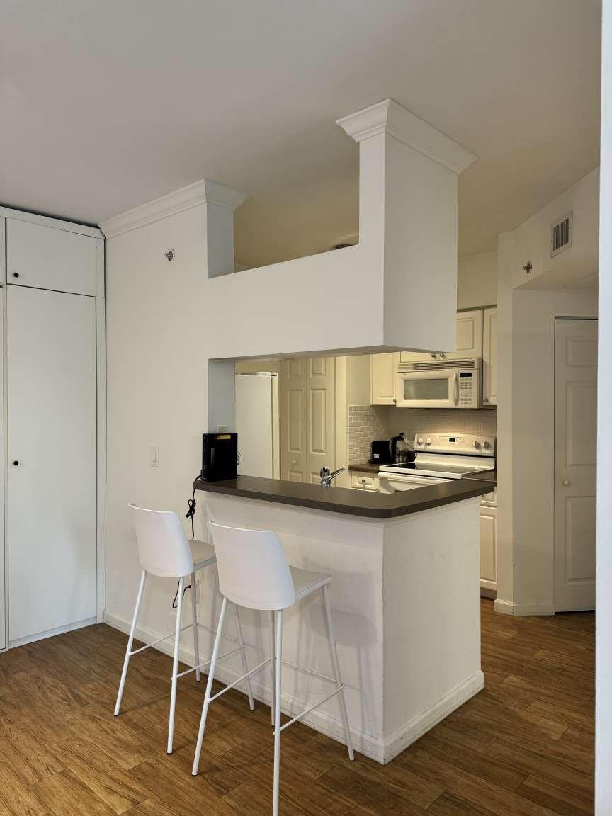 Pet-Friendly (No size restrictions)! Spacious 1 bed / 1 bath ground-floor condo with a beautiful courtyard entrance and serene garden views, offering the charm of a townhouse and the privacy of your own yard. Includes one designated parking space. Enjoy resort-style living with two pools featuring stunning Intracoastal views. Recent 2024 upgrades to the community include new gym equipment, BBQ areas, and pool furniture. The unit is tiled throughout and in excellent condition. A built-in Murphy bed in the living room provides extra sleeping space for guests. Prime Sunny Isles location—no car needed! Close to schools, dining, shopping, the beach, and more.