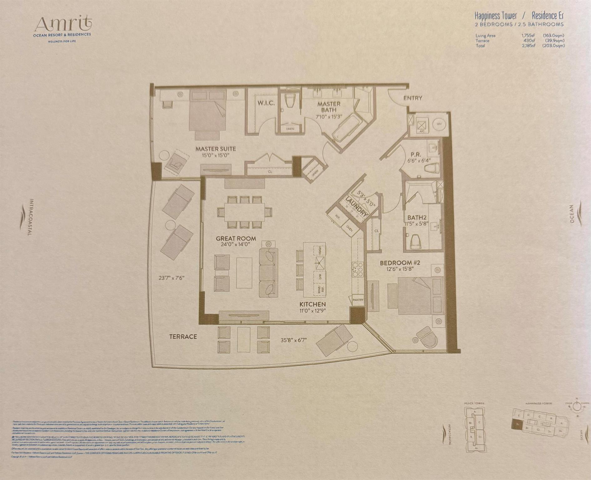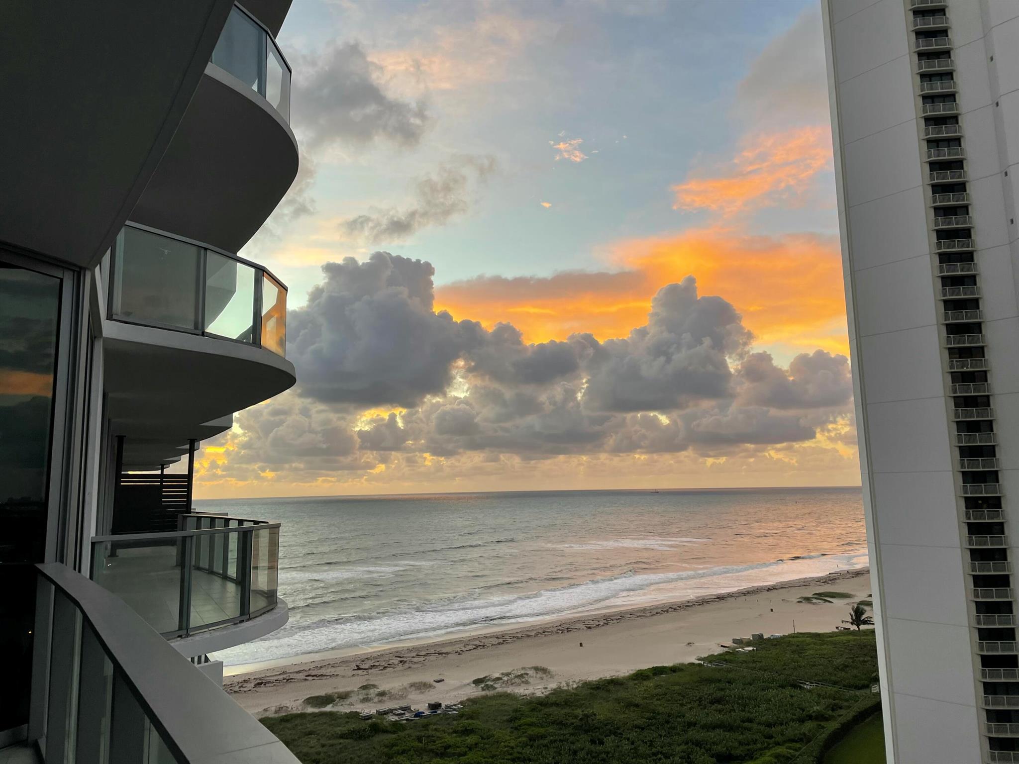 Live the ultimate oceanfront lifestyle in this FULLY Furnished, 2-bedroom, 2.5-bath luxury residence at Amrit Ocean Resort & Residences. Perfectly positioned high above the shoreline this 14th fl unit offers stunning panoramic views of both the Atlantic and Intracoastal waters from a wrap-around balcony, a rare opportunity to take in both sunrise and sunset each day. Inside, the contemporary layout features floor-to-ceiling impact glass, clean modern design, and a chef's kitchen with top-of-the-line Miele appliances. This residence also features premium enhancements that set it apart from most comparables, including custom electric shades, built-in closet systems, and a whole-home water purification system. Offered completely turnkey, it comes with everything - fine crystal and dinnerware
