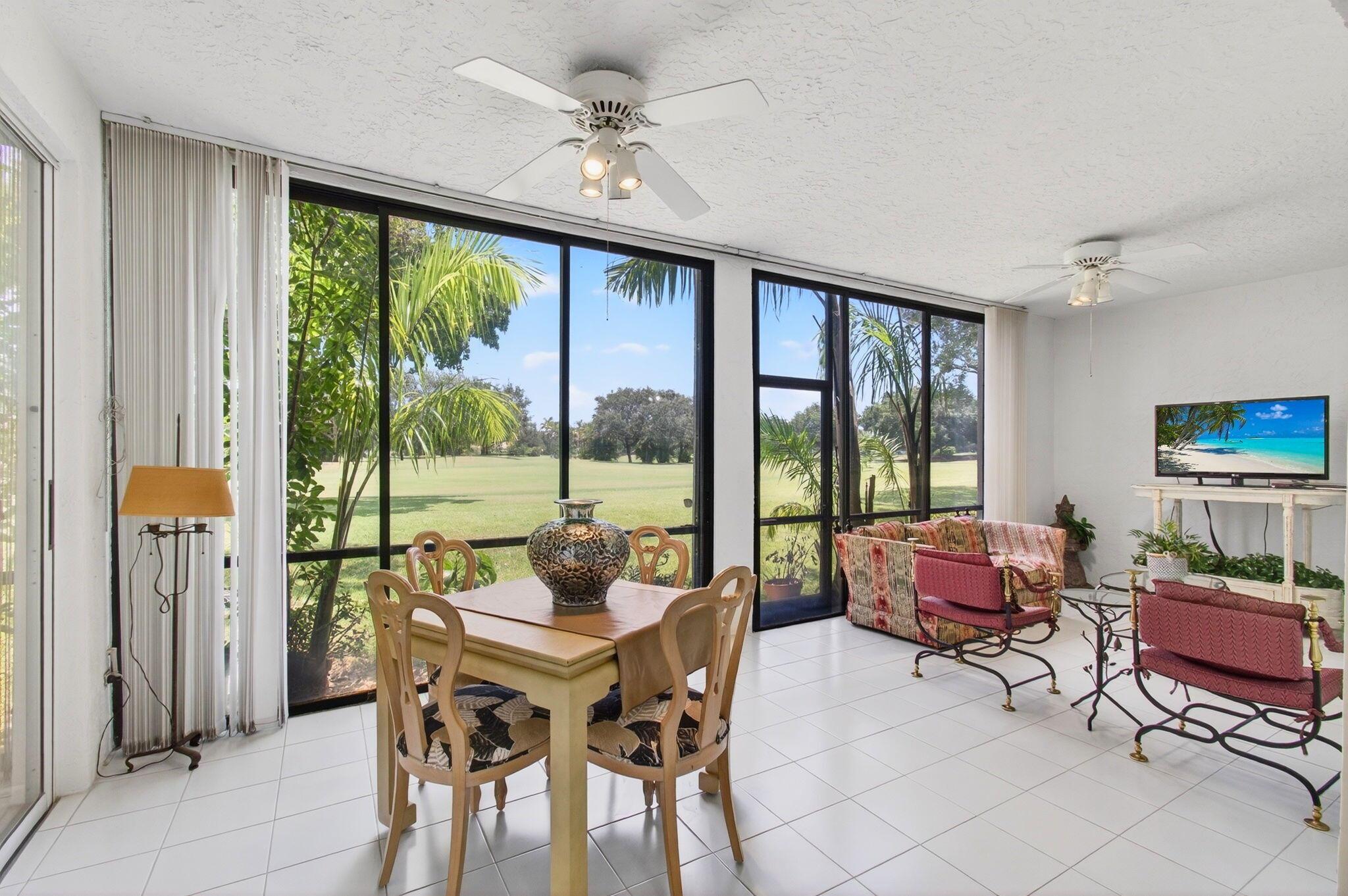 Beautiful 1st floor corner condo with a golf course view. Open and spacious. Very open Living room, dining area, den and Florida room Tiled living areas and brand new carpet in both bedrooms. Kitchen has beautiful cabinets and granite counter tops with a breakfast bar, eating area and sliders to a side patio. The Primary bedroom is spacious and has a large walk in closet. Master bath has a separate tub and shower. Briarwood is part of the Indian Spring country club community. Membership is optional