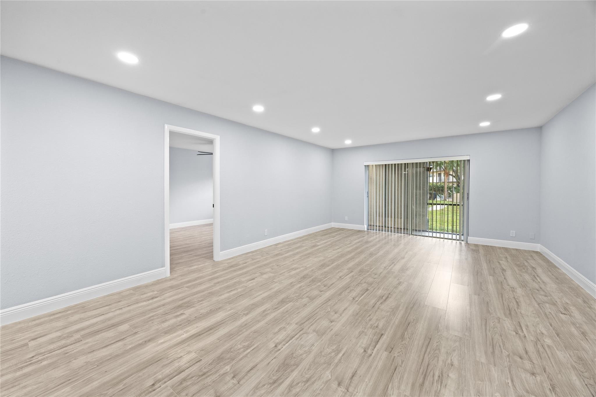 Beautifully Remodeled 1-Bedroom in Active Gated Community Welcome to this stunning ground-floor 1-bedroom, 1.5-bathroom unit, fully remodeled w/ brand-new laminate flooring throughout, a sleek white kitchen w/ quartz countertop, stainless steel appliances, & recessed lighting under smooth ceilings. The open living space flows seamlessly to a screened-in patio overlooking the sparkling community pool. The spacious primary suite features a large walk-in closet and an elegantly updated en-suite bathroom with modern fixtures. Additional highlights include a stylish powder room for guests and plenty of storage. Set in an active, gated community offering scenic walking trails, peaceful lakes, and a vibrant social scene, this turnkey unit blends comfort, style, and convenience.