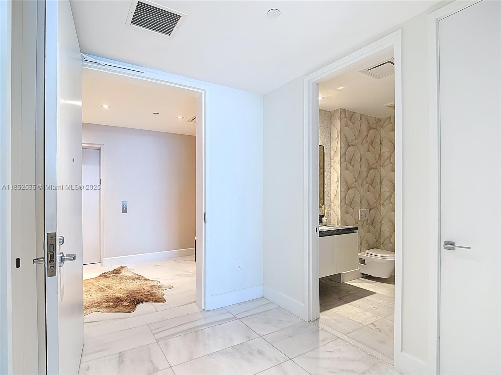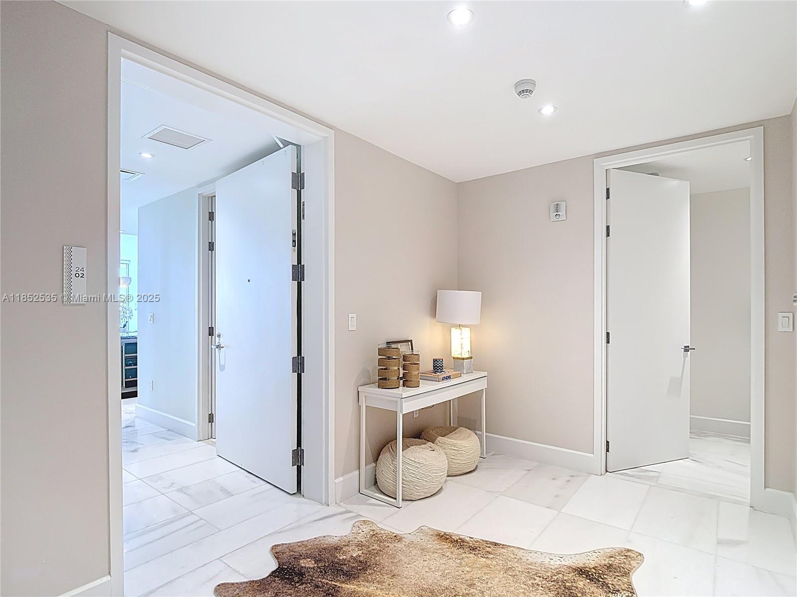 Own the views, the lifestyle, and the exclusivity at Missoni Baia! This 2-bed + den, 4-bath residence offers breathtaking, unobstructed bay and ocean views. Arrive through a private elevator that opens directly into your own foyer, setting the tone for an elevated lifestyle. The interiors have been elegantly refreshed with built-in closets, custom wallpaper accents, modern designer lighting, and a soft contemporary palette that compliments the natural light and clean architectural lines. The spacious open-concept layout features a gourmet kitchen with premium Wolf and Sub-Zero appliances. Enjoy resort-style amenities, incl. 3 pools, fitness center, yoga classes, a spa, tennis/pickleball courts, and private resident lounges—all curated with the artistic flair of Missoni’s iconic aesthetic.