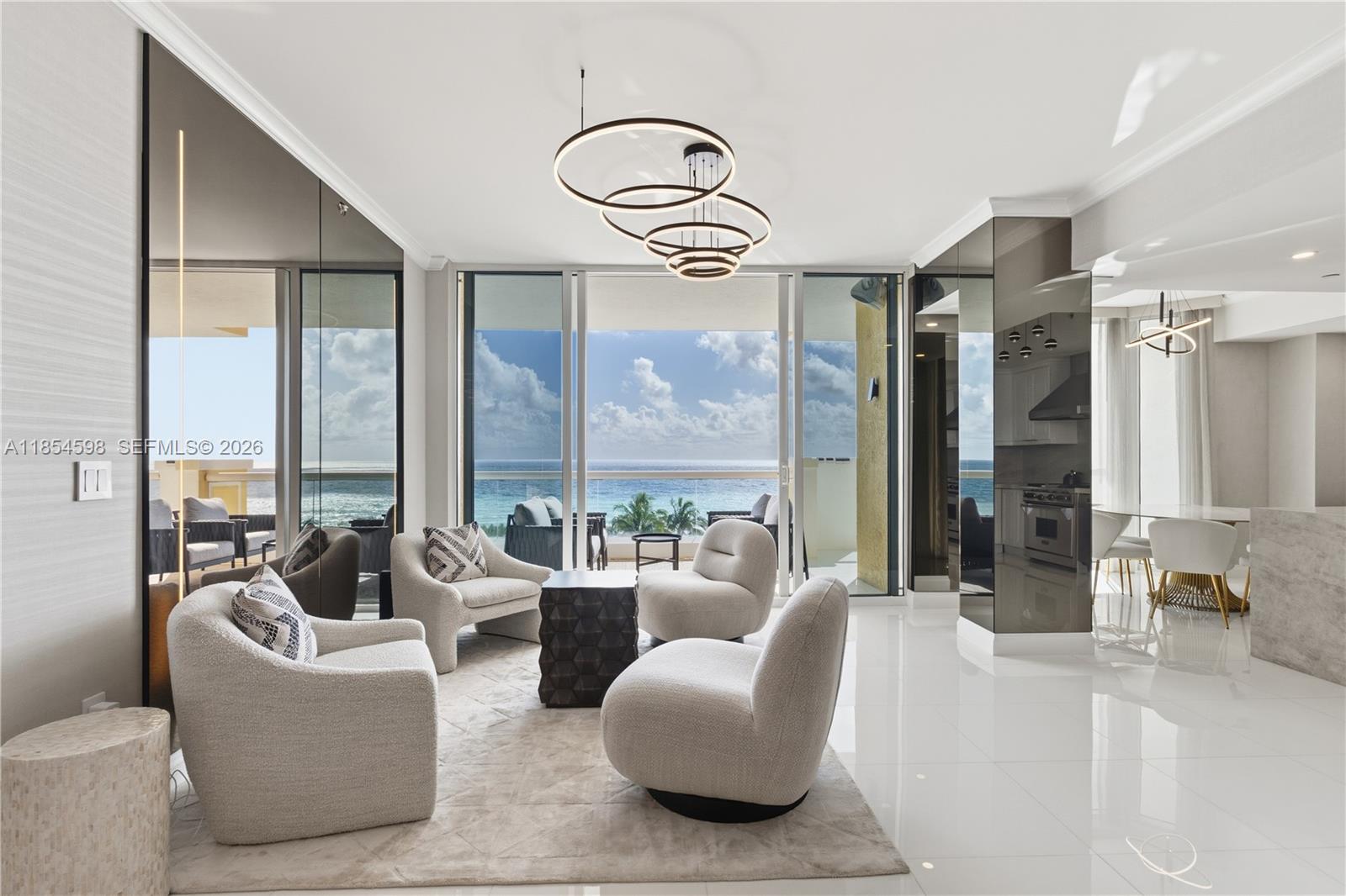 A masterfully reimagined 3 Bedroom 3 Baths oceanfront residence at Acqualina, designed for the most discerning buyer. Positioned on a coveted lower floor, this home offers a rare sensory connection to the Atlantic — where the sound of the waves and lush, landscaping become part of your daily living experience. Every inch of this residence has been meticulously renovated with uncompromising attention to detail. Taj Mahal quartzite surfaces elevate the kitchen and baths, while bespoke millwork, designer wall coverings, curated lighting, and integrated Sonos surround sound create a seamless blend of sophistication and comfort. Spa-inspired bathrooms feature premium new fixtures and state-of-the-art electronic bidet systems. Updated modern A/C detailing, freshly painted interiors, and brand-new designer furnishings complete this flawless offering. This is not simply move-in ready — it is entirely perfected. A rare opportunity to own a fully curated residence within one of South Florida’s most prestigious addresses. ACQUALINA REALTY OFFICE ON SITE 24/7.