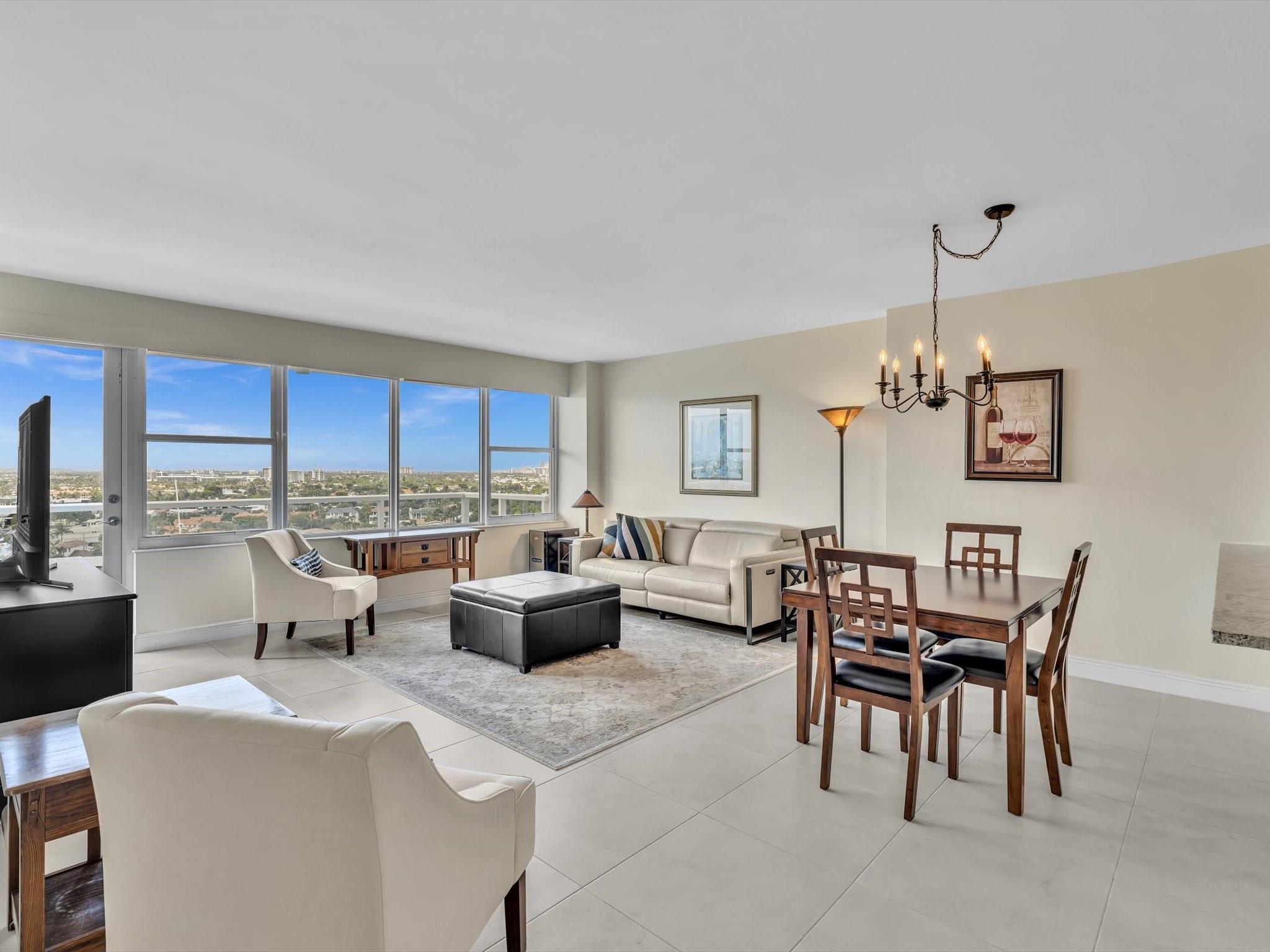 BEAUTIFUL MODERN RESIDENCE WITH OCEAN AND INTRACOASTAL VIEWS. Formal Entrance opens into casual elegance. Enjoy this newly designed chef's kitchen, perfect for entertaining or relaxing at home. Large porcelain tiles flow seamlessly from one room to the next. Watch the yachts go by below and experience the fireworks from your balcony without hearing the noise. Forget about fighting traffic because everything you need is right around the corner. ALL ASSESSMENTS PAID, FULLY FUNDING RESERVES. THIS BUILDING HAS AN EXCLUSIVE CLUBHOUSE ON THE INTRACOASTAL WITH A NEW DOCK AND RAISED SEAWALL. 55+ community on resort style 5+ acres. 24/7 security, heated pool, bocce ball court, fitness center. Concierge staff. Social activities