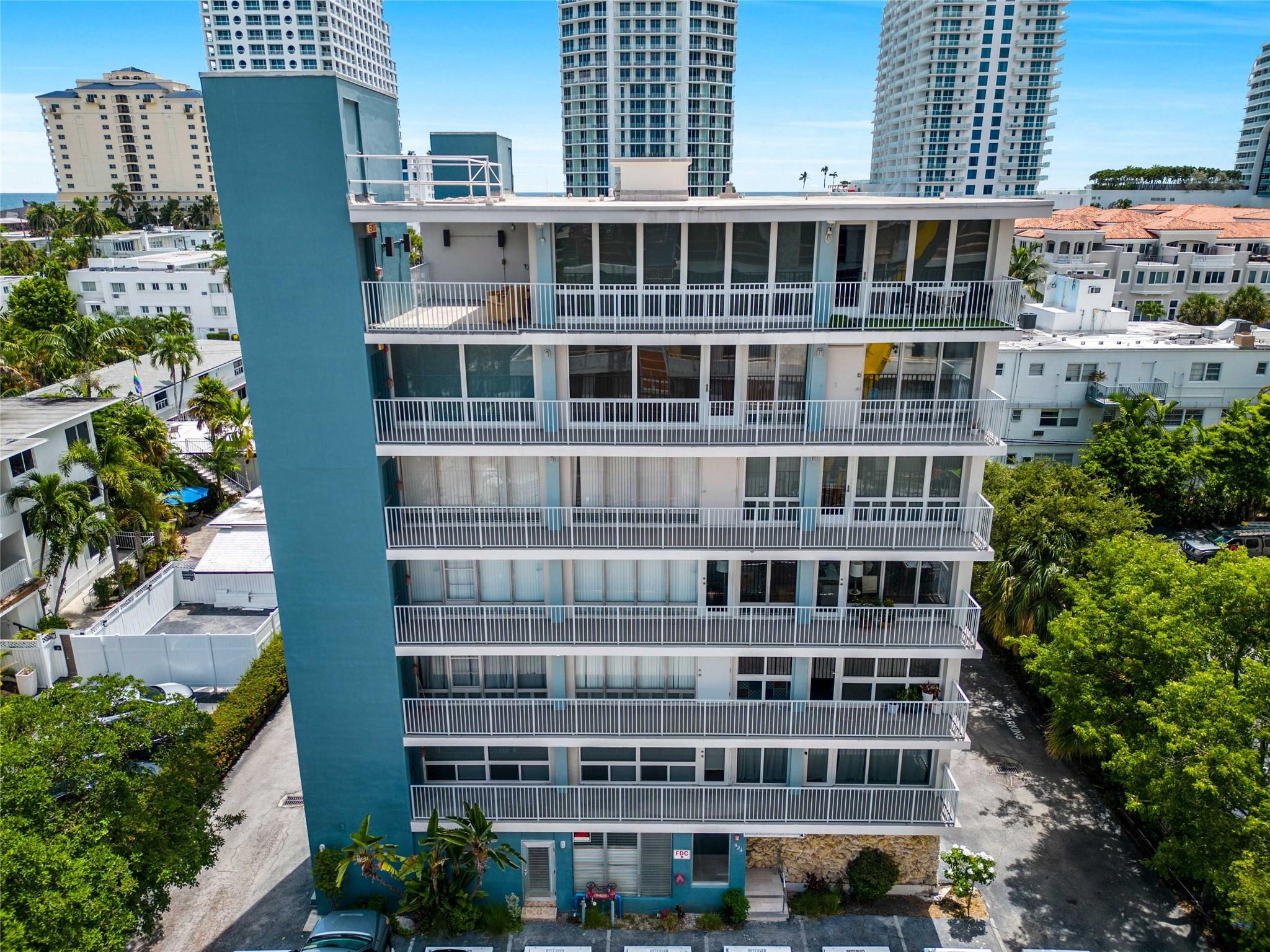 Live just two blocks from the beach in this bright and spacious 1 bed, 1 bath sixth-floor corner unit in the heart of Fort Lauderdale. Enjoy great natural light, skyline views, and an open layout with updated flooring, impact windows and doors, and a private balcony. The unit features a modern kitchen, in-unit washer/dryer, one covered parking space, and extra storage, as well as newer AC and water heater. The primary bedroom offers ocean views and access to your balcony. The unit can also be rented immediately for a minimum of 1 year. Located in a pet-friendly, secure building with a rooftop terrace, this well-maintained community is fully funded with strong reserves. Walk to the beach, restaurants, and Las Olas.