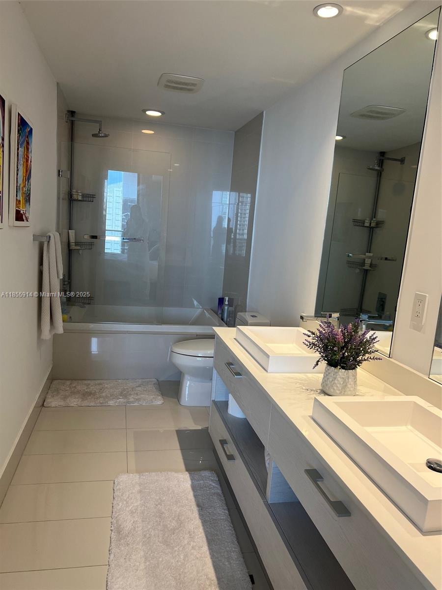 Luxury living at Brickell Heights! Immaculate 1 bed + den with 2 full baths and sweeping water and city views. Features high-end finishes, European cabinetry, premium appliances, custom walk-in closet, in-unit washer/dryer, spacious balcony, and upgraded lighting with dimmers. Den includes an electronic privacy blind; new washer/dryer installed. Prime Brickell location—steps from restaurants, bars, Brickell City Centre, and fitness studios. Amenities: rooftop pool with panoramic views, fitness center, jacuzzi, sauna, steam room, kids’ playroom, 3 club rooms, and on-site Equinox. Includes 1 valet parking, internet, and cable. Perfect for sophisticated urban living! Tenant occupied until May 2026.