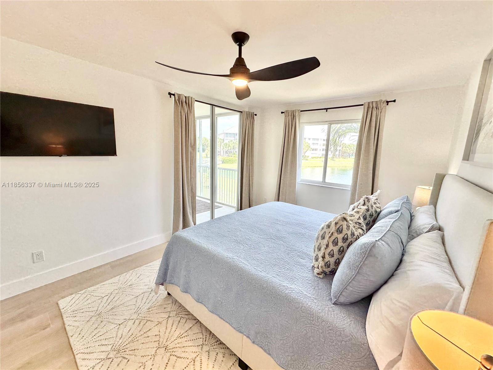NO RENTAL RESTRICTIONS! SELLER WILL TRANSFER EXISTING AIRBNB AND VRBO RESERVATIONS (UPON REQUEST) TO IMMEDIATELY YIELD INCOME! Fully renovated with designer finishes. Featuring a lovely lake view, brand new wood tile flooring throughout, custom Italian frameless cabinetry, brand new stainless steel appliances, and Taj Mahal Quartz countertop with a stylish waterfall accent on the peninsula. This unit BOASTS a sun-drenched, spacious open concept with ENCLOSED patio space (rare for Jupiter Bay!) Built-in oversized TV and electric fireplace, spa inspired bathroom tile, new toilets, vanities, LED mirrors, and more! The brand new furnishings, decor, kitchenware and more will be included in the sale. This unit accommodates 6 guests with a pull out sofa in the living room.